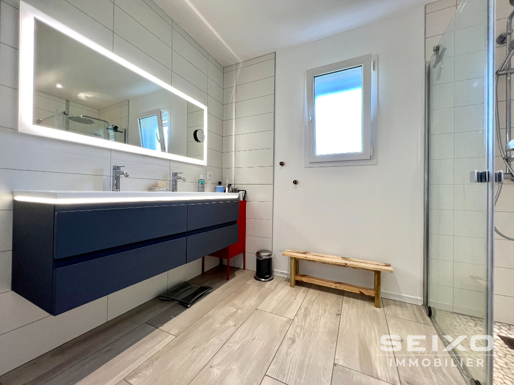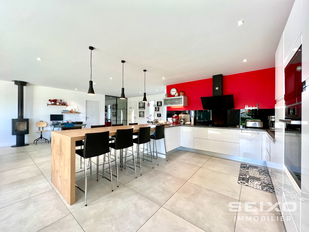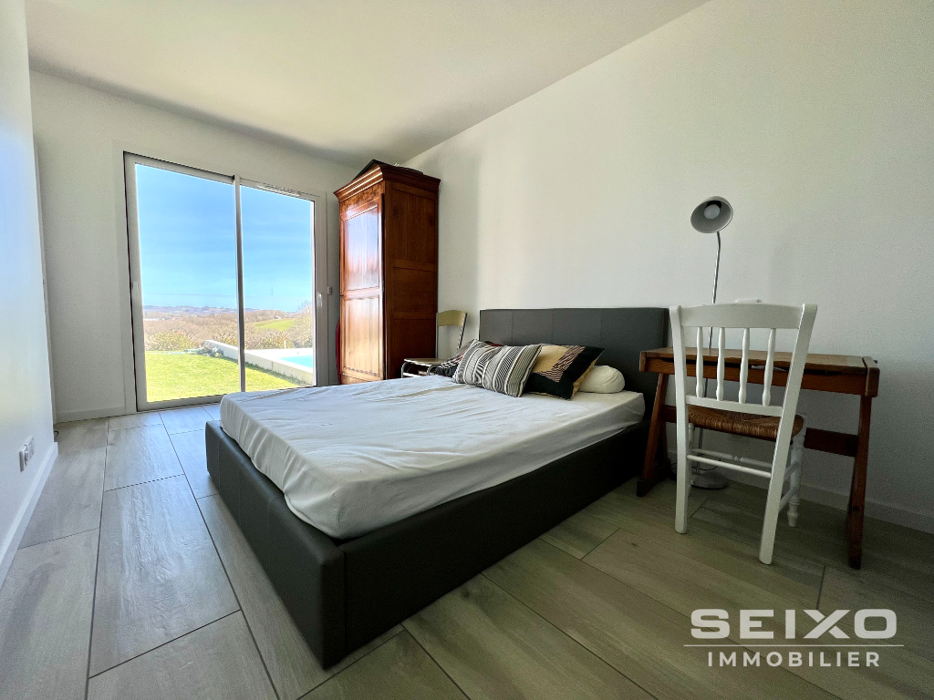 En exclusivité à Ustaritz - A 10 minutes d'Arcangues et 15 minutes des plages de Biarritz - Vue dégagée sur les Pyrénées - Environnement privilégié et au calme dans le quartier Arrauntz: Superbe villa contemporaine de 144m² habitable et de plain-pied construite en 2017. Le tout sur un terrain de 1500m² avec piscine chauffée 8 X 4: Séjour/ salon spacieux et lumineux de 65m² (avec poêle à bois), cuisine américaine avec cellier attenant, dans le prolongement une agréable terrasse couverte orientée plein sud surplombant la piscine, une suite parentale avec un grand dressing et salle d'eau/WC, 3 chambres avec placards, 2ème salle d'eau avec douche italienne, WC séparés. Un double garage déjà carrelé et isolé de 45m² avec deux portes électriques, et abri jardin. Pour aller plus loin: Toujours sous garantie décennale - Prestations de qualité: Aux normes RT2012, volets électriques, pompe à chaleur réversible, relié à la fibre optique. Le golf d'Arcangues est à 6 kilomètres - L'aéroport et les Docks de Biarritz sont à 10 kilomètres. Vous recherchez un emplacement à l'abri des regards pour y faire votre résidence principale ou secondaire? N'attendez plus cette villa est faite pour vous! Venez la visiter! Réf: 0044