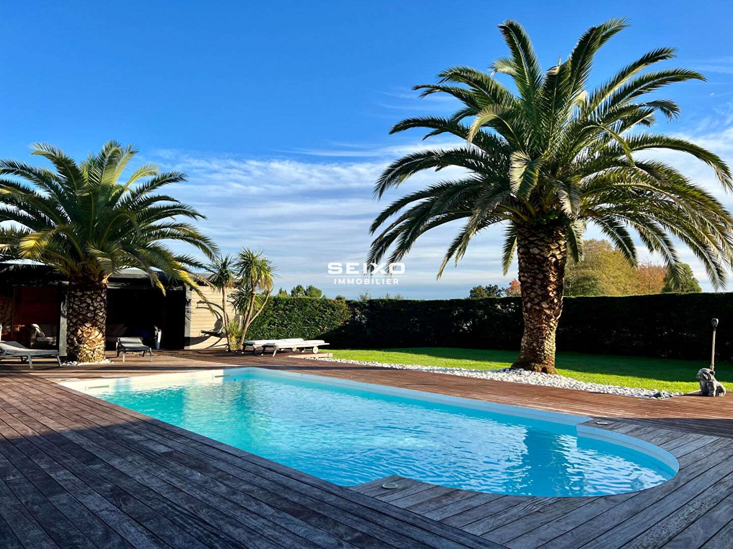 A Saubrigues - En situation dominante et au calme - L'agence Seixo immobilier vous présente son nouveau coup de coeur - La Villa "La Palmeraie" - A seulement 13 minutes des plages d'Hossegor et Capbreton: Villa 6 pièces de 231m² habitable rénovée avec goût, comprenant: Un hall d'entrée, un séjour/ salon de 63m² avec poêle à pellets, une cuisine indépendante de 23m² donnant sur la terrasse couverte, un studio avec douche/ WC et mezzanine, un cellier, un couloir desservant 3 chambres et une salle d'eau, WC. A l'étage une belle suite parentale avec un bureau, un dressing et une salle d'eau, WC. A l'extérieur vous serrez séduit par son jardin de plus de 2400m² agrémenté de palmiers et vous profiterez d'un bel aperçu sur la chaine des Pyrénées. Les plus: La piscine 8 x 4 entourée d'un pool house avec jacuzzi et sauna, ainsi qu'une bodega avec bar/ cuisine, salle d'eau, WC. Un terrain de pétanque. Portail d'entrée électrique, alarme, climatisation réversible, 2 garages et un carport. La maison est idéale pour vivre à l'année et recevoir de nombreux invités. Unique sur le secteur. A saisir!