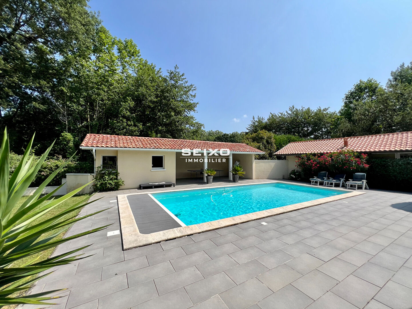 Nouveauté à Saubrigues à 700 mètres du centre - Les plages de Capbreton et d'Hossegor à moins de 15 minutes - Unique sur le secteur - Au calme et à l'abri des regards: L'agence Seixo immobilier vous présente cette superbe propriété de 273m² habitable au coeur d'un parc de 3300m² clos. Un grand carport, un garage de 35m² et un atelier de 150m² pouvant être aménagé en appartement séparé. Une piscine 10 X 5 avec pool house de 56m². Une grande pièce de vie de 80m² avec cheminée, une cuisine aménagée et équipée, 6 grandes chambres dont une suite parentale, spacieux dressing, 2 salles de bains, 2 WC. Prestations de qualités - Portail électrique - chauffage avec pompe à chaleur - très bien isolée. Un véritable havre de paix pour famille nombreuses. Coup de coeur assuré!