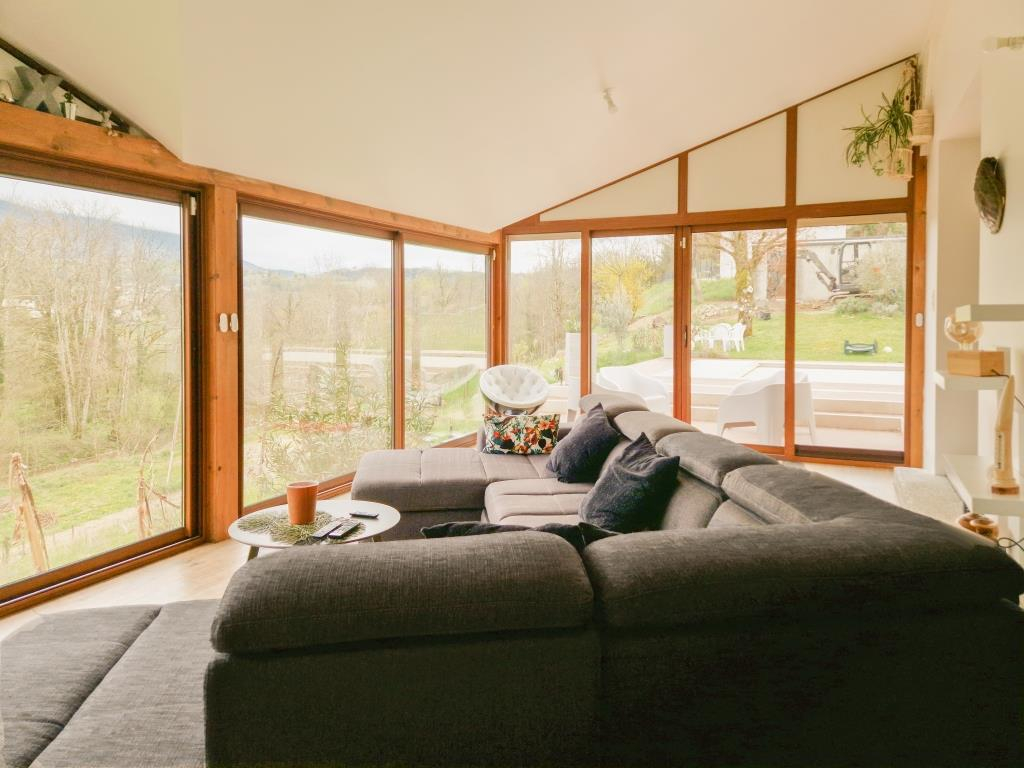 Gilles BUISSON vous présente en exclusivité sur YENNE à 25 mn de Chambéry et d'Aix-les-Bains, 15 minutes de Technolac, cette jolie maison achevée dans les années 80 offrant environ 245 m2 habitables agencés sur 2 niveaux + sous-sol complet. Vue panoramique sur la Dent du Chat !!! RDJ : entrée, salon/séjour/cuisine ouverte équipée, véranda (salon), 4 chambres, 1 wc séparé, 1 salle de bains. ÉTAGE : 4 chambres dont 2 avec salle d'eau, wc séparé. SOUS-SOL complet comprenant : 2 garages de 26 et 45 m2; une cave, une buanderie, un atelier et une pièce. Terrasse environ 100 m2 avec piscine Desjoyaux 10 x 4 m (2 ans) chauffée et sécurisée (volets roulants motorisé). Isolation par l'extérieur (2 ans) et par le toit, chauffage/clim par pompe à chaleur sur ventilo-convecteurs installés fin 2020, ballon thermodynamique, volets roulants motorisés, porte de garage motorisées, cheminée à foyer ouvert. Menuiseries ALU double vitrage 4/20/4 3 ans, tout à l'égout. Travaux à prévoir sur le RDJ : finitions peintures/décoration, sols, salle de bain. certaines fournitures déjà achetées sont comprises dans le prix de la maison. Terrain d'environ 3000 m2 plat sur une partie (environ 1200 m2) et en pente sur une autre (possibilité de diviser et de n'acheter que la partie plate si pas besoin du terrain en pente). Située au bout d'une impasse, au calme, dans un environnement bucolique, elle offre une très belle opportunité pour mettre à son goût la décoration du rez de jardin ! à 20 minutes de Chambéry et Aix-les-Bains, 1 heure de Lyon, Grenoble et Genève. Gilles BUISSON (EI) Agent Commercial - Numéro RSAC : 532190600 - BOURG EN BRESSE.