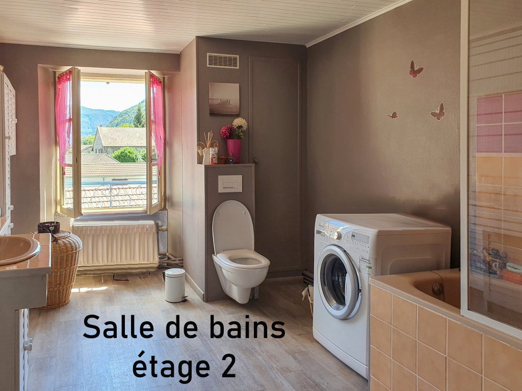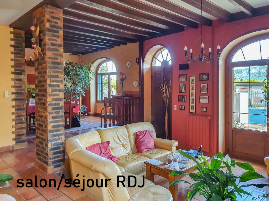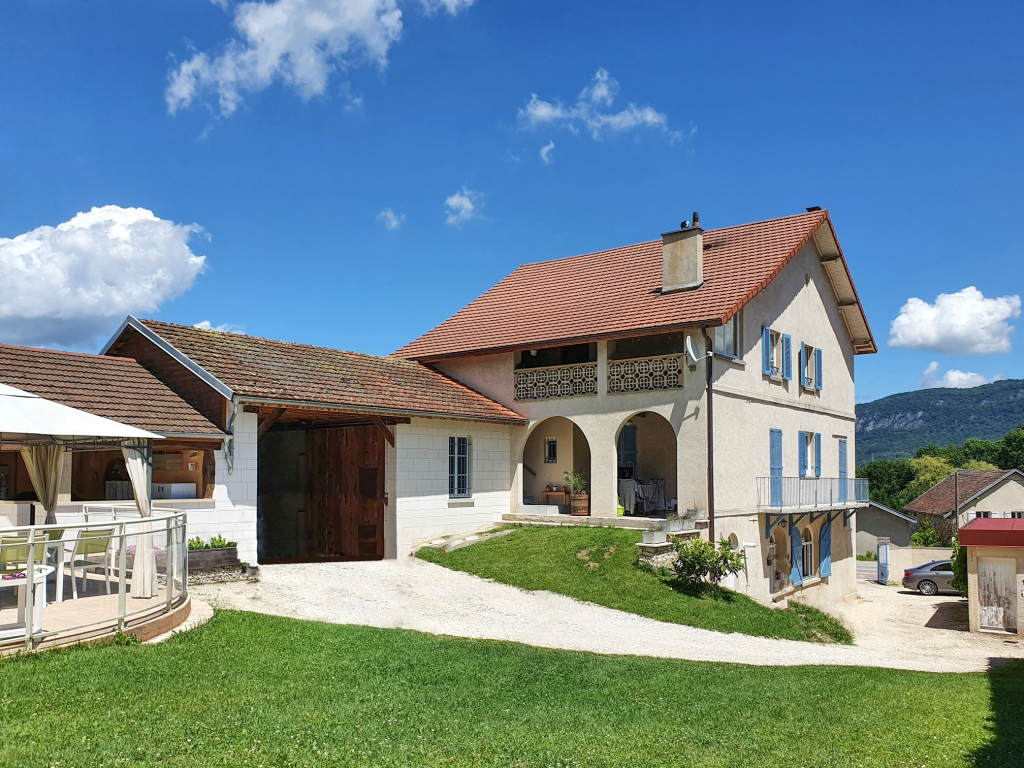 Gilles BUISSON vous propose en exclusivité : Très rare sur le secteur, à Peyrieu 01300 (35 mn de Chambéry) : très jolie maison bourgeoise comprenant 2 logements pour un total de 300 m2 habitables implantée sur 1200 m2 de terrain. En rez de jardin : salon/séjour, cuisine, buanderie, local, sde et wc séparé. 1er étage : 5 chambres, salle de bains avec douche italienne et wc. 2eme étage : entrée, séjour, cuisine, 3 chambres, salle de bains/wc. 2 garages, un atelier, une cave, un wc, une douche en extérieure et une cuisine d'été couverte sur une terrasse de 113 m2 complètent cet ensemble harmonieux. Chauffage central au fuel (chaudière changée en 2016) pour le rdc et le 1er étage, chaudière électrique pour le 2ème. Cheminée fonctionnelle. Points forts : - piscine 56 m2 double profondeur avec fontaine, douche, wc et cuisine d'été - parc clos et entretenu de 1200 m2 - grandes et volumineuses pièces - possibilité chambres d'hôte ou location à l'année (deux compteurs électriques indépendants installés) - portail motorisé, interphone - couverture toiture entièrement refaite en 2016 avec film pare-pluie - assainissement collectif aux normes Située à Peyrieu, village typique du Bas-Bugey, à quelques pas de l'école primaire avec cantine et garderie, 5 mn de Virignin et Belley, 10 minutes de Yenne, 15 mn de l'A43, 35 mn de Chambéry et Aix-les-Bains, 1 heure de Lyon, Genève et Grenoble Gilles BUISSON (EI) Agent Commercial - Numéro RSAC : 532190600 - BOURG EN BRESSE.
