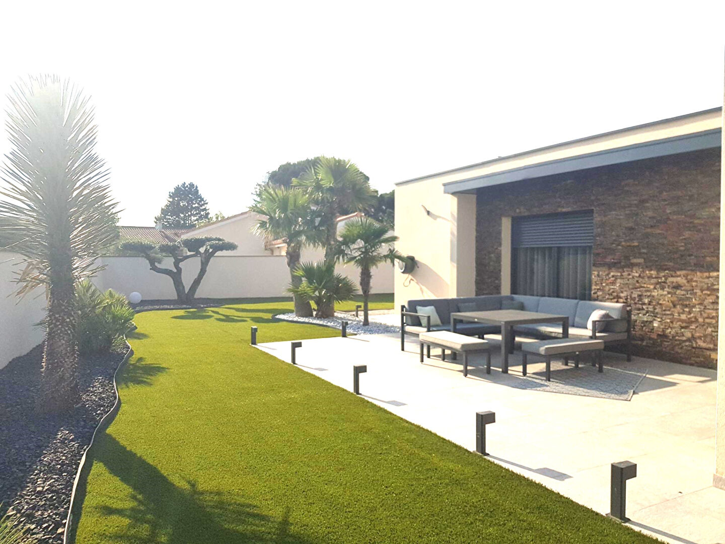 EN EXCLUSIVITE - Maison contemporaine plain pied avec des prestations haut de gamme de 135m2, élégante et raffinée avec des matériaux de qualité et une décoration de trés bon goût agrémentée d'un garage de 40m2 isolé et carrelé. Située dans un quartier résidentiel à proximité des commodités, à 18 mn de Vienne centre, à 45 mn de Lyon, sur un terrain de 675m2 entièrement paysagé avec un style exotique qui vous apportera un dépaysement total et une prestance certaine pour cette magnifique maison récente, une entrée en pavés de granit vous accueillera jusqu'à la porte d'entrée. Elle offre 3 chambres dont une suite parentale de 28m2 avec un dressing de luxe et une salle d'eau privée + 2 autres chambres de 12m2 avec placards et une salle de bain supplémentaire avec baignoire et douche. Une pièce à vivre d'environ 60m2 avec une belle hauteur de plafond afin d'apporter de la grandeur et de la luminosité avec une cuisine entièrement équipée haut de gamme pouvant se fermer avec une porte en verre fumée.. Coup de coeur assuré pour cette maison d'exception !!! (5.00 % honoraires TTC à la charge de l'acquéreur.) Evelyne LEVRA (EI) Agent Commercial - Numéro RSAC : 385098785 - GRENOBLE.