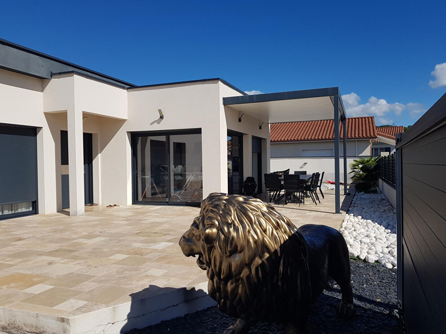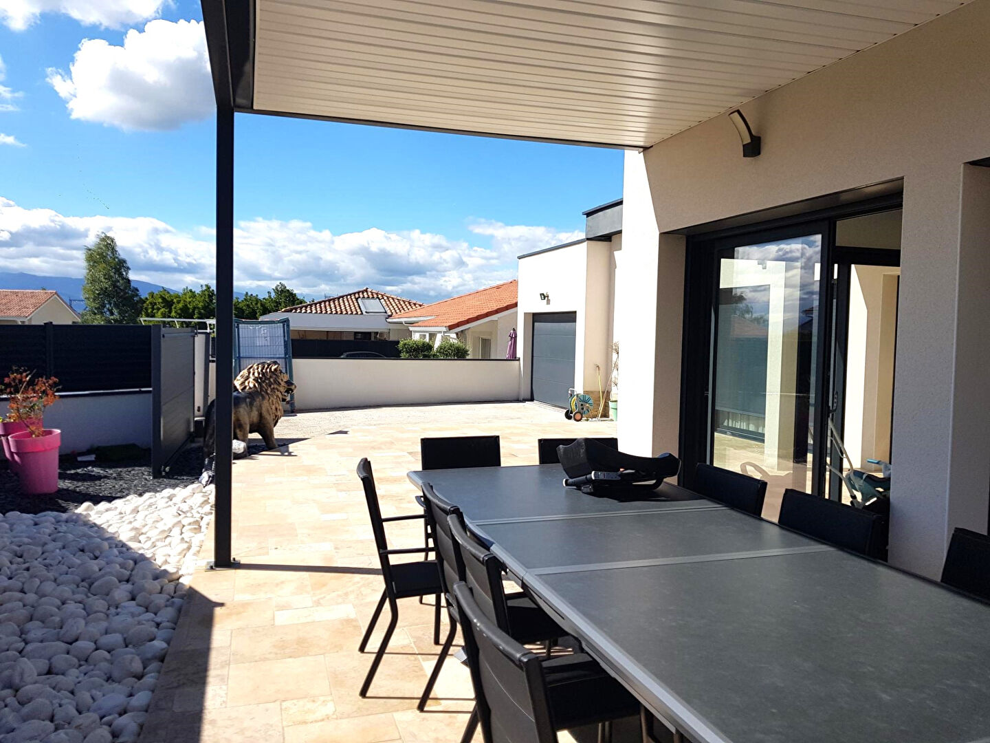EN EXCLUSIVITE - Maison contemporaine de 140 m2 plain pied + un garage de 20 m2 isolé et carrelé, sur un terrain de 605m2 paysagé de façon à avoir peu d'entretien, agrémenté d'une belle piscine avec rideau de sécurité, deux terrasses spacieuses et conviviales avec pergola. Située à 12 kms du centre de Vienne, dans le secteur des Côtes d'Arey dans un village avec toutes les commodités à 10 mn de Jardin et quelques minutes de Vernioz. Elle offre une pièce à vivre spacieuse et lumineuse de 63m2 avec cuisine américaine entièrement équipée, de grandes baies vitrées offrant de la luminosité et s'ouvrant sur 120 m2 de terrasse carrelée entièrement en travertin. 3 chambres dont une suite parentale de 26m2 avec dressing et salle d'eau privée + 2 chambres de 11m2 avec un salle de bain design. Des prestations haut de gamme pour cette superbe maison dans l'air du temps !! (4.44 % honoraires TTC à la charge de l'acquéreur.) Evelyne LEVRA (EI) Agent Commercial - Numéro RSAC : 385098785 - GRENOBLE.