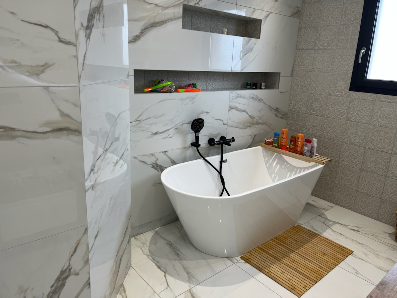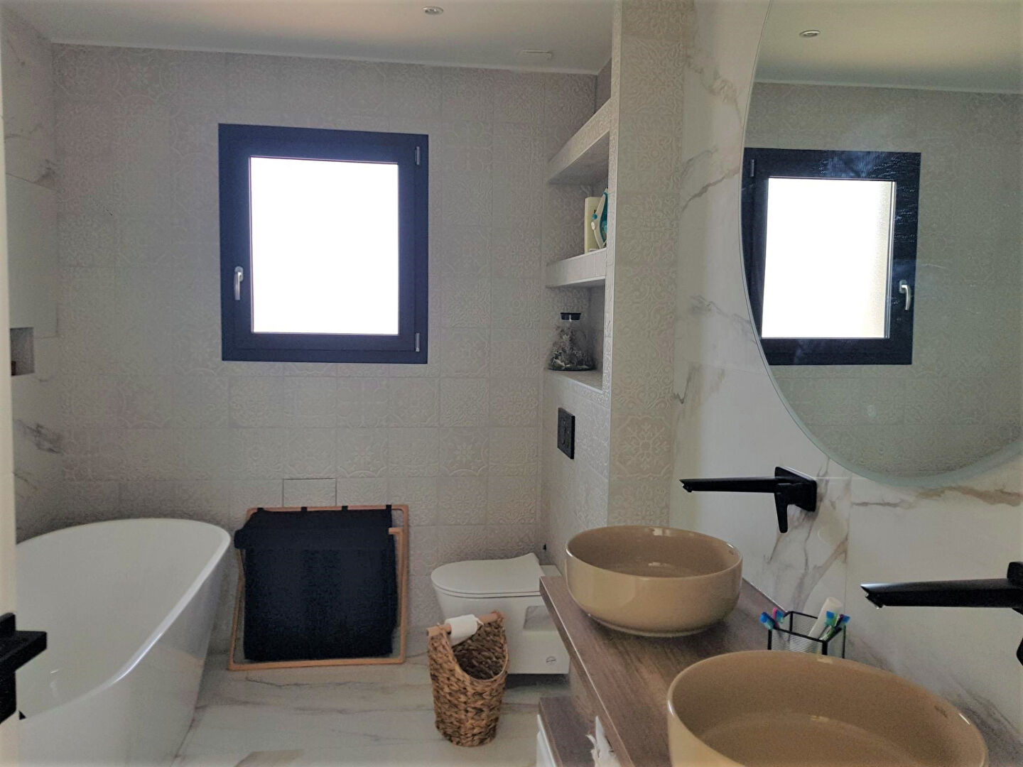 EN EXCLUSIVITE - Maison contemporaine élégante et raffinée de 157m2 récente , lumineuse avec des prestations haut de gamme, sur un terrain de 580m2 située sur le côteau de Roussillon à 18 mn de Vienne Sud et 45 mn de Lyon à proximité de toutes les commodités. Elle offre 4 chambres à l'étage dont une suite parentale avec salle d'eau et dressing privé + une salle de bain luxueuse. Une pièce à vivre avec une belle hauteur de plafond, beaucoup de charme, trés classe, agrémentée d'une cuisine américaine entièrement équipée haut de gamme, d'un salon avec de grandes baies vitrées 3 pans et volets roulants BSO. Piscine 8X4m plein sud à terminer. (4.26 % honoraires TTC à la charge de l'acquéreur.) Evelyne LEVRA (EI) Agent Commercial - Numéro RSAC : 385098785 - GRENOBLE.