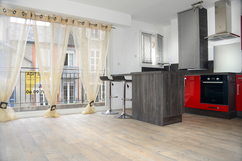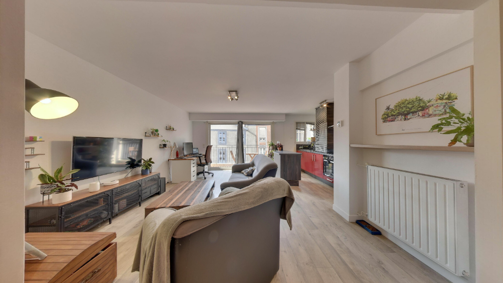 Au deuxième étage avec ascenseur d'une Résidence située entre les Halles et le Tribunal, vaste appartement deux pièces entièrement rénové, belle cuisine équipée ouverte sur le séjour, grande chambre avec placard, salle d'eau avec wc et coin buanderie, grand balcon, prestations de qualités : électricité récente, volets roulants motorisés, nombreux rangements... une cave complète le tout. Actuellement libre, peut également convenir pour un projet locatif. Copropriété de 12 lots (Pas de procédure en cours). Charges annuelles : 1080 euros.
