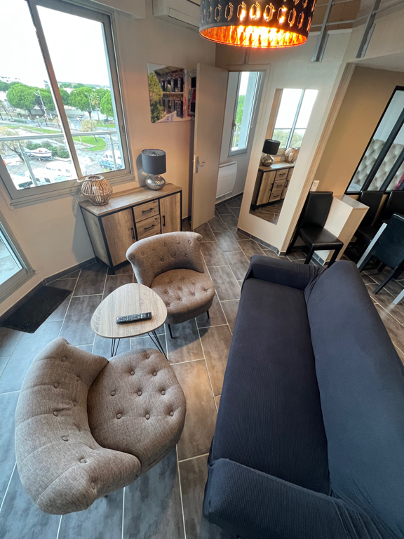 ##Le logement Situé dans un emplacement de qualité en plein coeur du Village du Grau du Roi, cet appartement sera un vrai coup de coeur pour les amoureux du bord de mer. Il se trouve dans une résidence implantée sur la plage de la rive droite, secteur très prisé, à la fois proche de toutes les commodités et au calme. Profitez de son balcon, qui vous permettra de passer des moments paisibles en amoureux. Cet appartement est un T2 qui se trouve au 4ème et dernier étage avec ascenseur et bénéficie d'une vue mer avec une belle vision sur la Baie d'Aigues-Mortes avec la Grande-Motte en face. Il est composé d'un coin cuisine complètement équipé ouvert sur un séjour qui dispose d'un canapé deux places non convertible avec espace TV. Il bénéfice ensuite d'une chambre séparée avec une literie fixe en 140cm pour deux personnes et d'un coin avec deux autres couchages en 90cm à l'étage au-dessus sur la mezzanine. Cet appartement est idéal pour 4 personnes comme une famille de deux adultes et deux enfants. Sont à votre disposition tous les équipements nécessaires pour votre plus grand confort, machine à café Senseo, grille pain, bouilloire, four, micro-onde, frigo... ainsi que tous les ustensiles nécessaires pour préparer de bons petits plats. La pièce de vie est moderne, avec un canapé non convertible 2 places, une TV, la climatisation réversible. Appréciez le calme en plein centre de la station et reposez vous dans cet espace clair et lumineux. Les soirées sont dotées de magnifiques couchers de soleil selon les saisons. L'appartement dispose d'une salle d'eau avec douche, w.c. ##L'emplacement Le Château Leenhardt: Résidence récente les pieds dans l'eau, accès privatif à la plage par le jardin, donne directement sur l'une des plus belles plages du Grau du Roi.?Chaque appartement dispose :?d'une cuisine, d'une salle d'eau avec douche et d'un espace couchage ou de chambre à part selon le type, et d'un équipement de qualité.?Les appartements bénéficient de balcon ou de terrasse donnant sur la Mer, la Baie d'Aigues-Mortes, sur la Grande Motte le tout pour apprécier des couchers de soleils magiques !? Idéalement situé pour tout faire à pieds :?Commerces, Marchés (centre-ville et Boucanet) , Restaurants et Bars à Tapas, ?Cinema. ?La Station Balnéaire du Grau du Roi vous permet de profiter de promenades le long des rivages de la Méditerranée,de balader en vélo jusqu'aux Salins d'Aigues Mortes (circuits verts ? Location de vélos à 300m), et aussi en pédalos (paillote), en bateau (embarcadères), en 4x4 pour partir à la découverte de Camargue Gardoise. Proche Parc d'Attractions : Luna Parc et Amigolang, Thalassothérapie de Port-Camargue : 3 km face à la Plage Sud Plage de l'Espiguette et Plage Sud : Spot de Kite-Surf. Accès routier : Nîmes Montpellier Arles Grande Motte ##Accès Profitez d'une arrivée et d'un départ avec un accueil personnalisé ! Vous disposerez du logement entier pour profiter de votre séjour en Camargue . Toutes les consignes vous seront données la veille de votre arrivée. ##Transport Cet appartement dispose d'une place de parking privative au sein de la résidence pour une voiture. La gare du Grau du Roi se trouve à 1 km. Des services de bus sont disponibles à proximité. La Gare à trafic fréquent la plus proche est la gare de Montpellier Sud de France et l'aéroport le plus proche est également celui de Montpellier. En supplément et avec une demande en amont de votre réservation, nous pouvons vous trouver une solution pour venir vous chercher à l'aéroport ou à la gare et vous amenez en toute tranquillité sur votre lieu de vacances. ##Note Dans le contexte actuel et pour lutter contre la Covid 19, sachez chers voyageurs que nous sommes très attentifs à votre sécurité et à votre santé, nous mettons en place tous les protocoles nécessaires pour que votre séjour se passe dans les meilleures conditions d'hygiène et de sécurité. ## INFORMATIONS IMPORTANTES Cette résidence se situe les pieds dans le sable, avec un accès privatif par une porte au bout de la parcelle de cette résidence qui sort directement sur la plage de la rive droite. La résidence Château Leenhardt a une forme de "L" et est constituée de deux bâtiments: le bâtiment A et le bâtiment B. Les deux bâtiments sont constitués d'un rez-de-chaussée + 4 étages avec ascenseurs. Il y a un ascenseur pour le bâtiment A et un ascenseur pour le bâtiment B. Par contre en terme d'accessibilité, les appartements ne sont pas aux normes handicap "PMR" . Si l'appartement que vous avez réservé se trouve dans le bâtiment A, au plus vous montez dans les étages, au plus vous avez une belle et large vue mer qui donne du côté de la Grande-Motte avec une exposition Nord Ouest (tous les couchers de soleil aux beaux jours) . De ce côté du bâtiment A, la résidence est construite en limite et juste à côté se trouve un parking communal payant de début mars à début novembre, sur lequel peuvent stationner des camping-cars et des voitures. En aucun cas ce par Copropriété de 196 lots ().