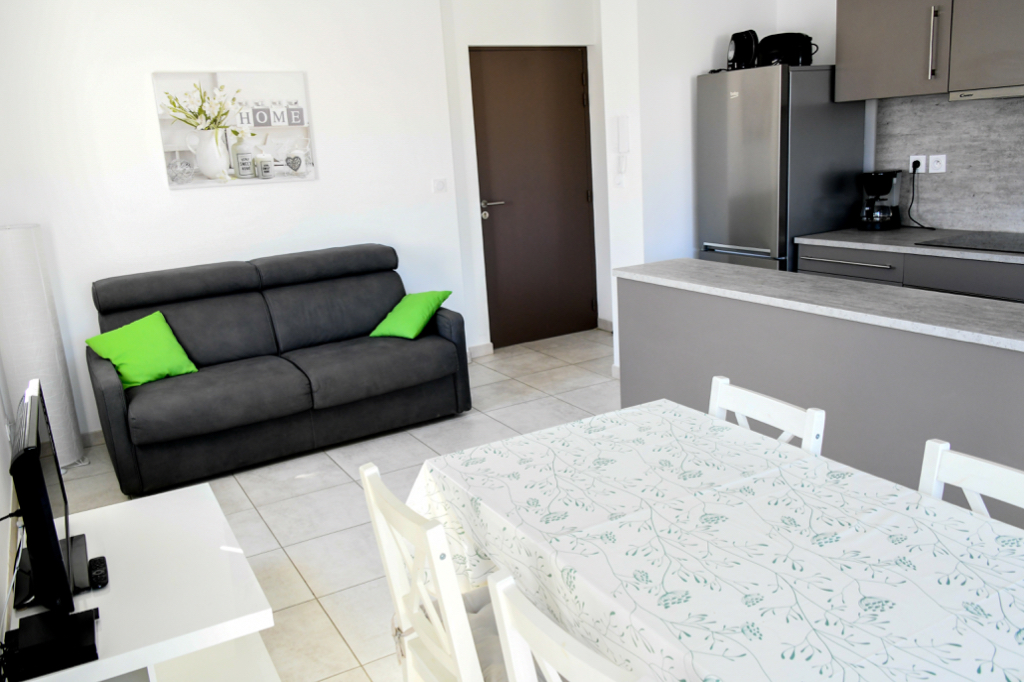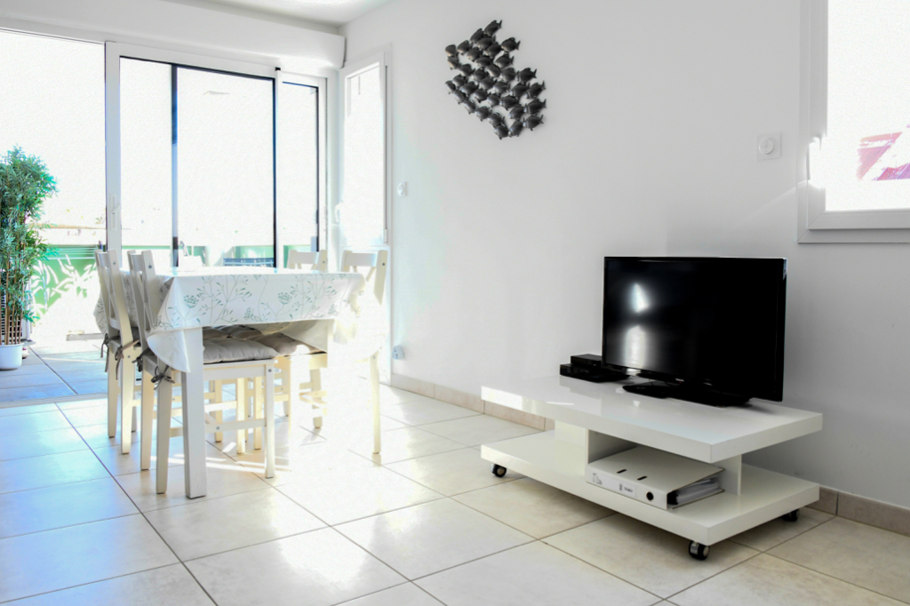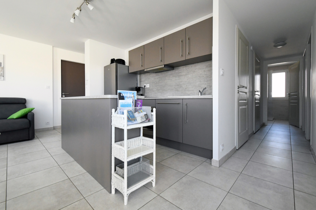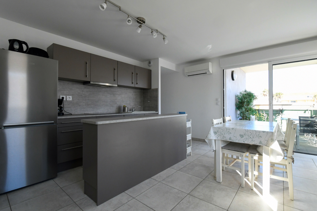 ##Le logement Situé dans un emplacement de qualité en plein coeur du Village du Grau du Roi, cet appartement sera un vrai coup de coeur pour les amoureux du "tout faire à pied"... Profitez de sa terrasse, qui vous permettra de passer des moments conviviaux entre amis ou en famille. La Roselière est composé d'une cuisine américaine avec un îlot central, ouverte sur la pièce de vie, ainsi qu'un un coin salle à manger. Sont à votre disposition tous les équipements nécessaires pour votre plus grand confort, machine à café, grille pain, bouilloire, four combiné micro-onde, frigo... ainsi que tous les ustensiles nécessaires pour préparer de bons petits plats. La pièce de vie est spacieuse et moderne, avec un canapé convertible, une TV, ainsi qu'internet haut débit. Appréciez le calme en plein centre ville et reposez vous dans une des deux chambres chaleureuses à la décoration soignée. L'appartement dispose d'une salle d'eau avec douche, w.c, ainsi qu'une machine à laver. ##L'emplacement Cet appartement se trouve sur la rive Gauche du Grau du Roi, lieu identitaire et emblématique marquant l'entrée dans le Port de Pêche. Un formidable lieu de vie à quelques minutes à pied de toutes les commodités et de la plage. La Roselière est situé en plein coeur du village, proche de toutes commodités, commerces, boutiques, restaurants, et de la plage. A seulement 400 m de la plage, c'est un lieu idéal pour vos vacances, vos séjours d'affaires ou vos courts-séjours. Idéal pour les amoureux du centre ville, déposez vos valises et profitez de notre jolie ville ! ##Accès Profitez d'une arrivée et d'un départ en toute autonomie ou avec un accueil personnalisé ! Vous disposerez du logement entier pour profiter de votre séjour en Camargue . ##Transport Vous disposez d'un garage privatif pour une voiture avec cet appartement. La gare du Grau du Roi se trouve à 5 km. Des services de bus sont disponibles à proximité. La Gare à trafic fréquent la plus proche est la gare de Montpellier Sud de France et l'aéroport le plus proche est également celui de Montpellier. En supplément et avec une demande en amont de votre réservation, nous pouvons vous trouver une solution pour venir vous chercher à l'aéroport ou la gare et vous amenez en toute tranquillité sur votre lieu de vacances. ##Note Dans le contexte actuel et pour lutter contre la Covid 19, sachez chers voyageurs que nous sommes très attentifs à votre sécurité et à votre santé, nous mettons en place tous les protocoles nécessaires pour que votre séjour se passe dans les meilleures conditions d'hygiène et de sécurité. L'équipe de l'Agence Grand Sud Immobilier a hâte de vous accueillir à la Roselière !