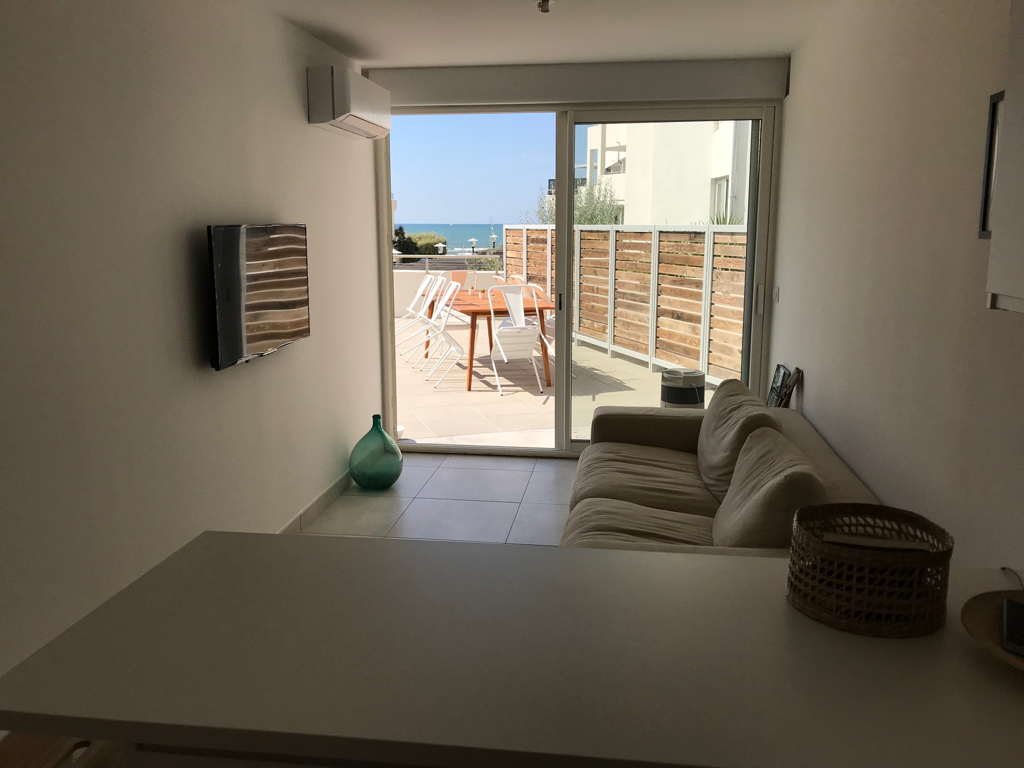 ##Le logement Situé dans un emplacement de qualité en plein coeur du Village du Grau du Roi, cet appartement sera un vrai coup de coeur pour les amoureux du bord de mer. Il se trouve dans une résidence implantée sur la plage de la rive droite, secteur très prisé, à la fois proche de toutes les commodités et au calme. Profitez de son balcon, qui vous permettra de passer des moments paisibles en amoureux. Cet appartement est un T2 qui se trouve au 1er étage avec ascenseur et bénéficie d'une vue mer avec surtout une magnifique terrasse de 70m2. Il est composé d'un coin cuisine complètement équipé ouvert sur un séjour qui dispose d'un canapé deux places avec espace TV. Il bénéfice ensuite d'une chambre séparée avec une literie fixe en 140cm pour deux personnes et d'un coin cabine avec des lits superposés. Cet appartement est idéal pour 4 personnes comme une famille de deux adultes et deux enfants. Sont à votre disposition tous les équipements nécessaires pour votre plus grand confort, machine à café Nespresso, grille pain, bouilloire, four, micro-onde, frigo... ainsi que tous les ustensiles nécessaires pour préparer de bons petits plats. La pièce de vie est moderne, avec un canapé convertible 2 places, une TV, la climatisation réversible. Appréciez le calme en plein centre de la station et reposez vous dans cet espace clair et lumineux. Les soirées sont dotées de magnifiques couchers de soleil selon les saisons. L'appartement dispose d'une salle d'eau avec douche, w.c. Draps et serviettes de bains vous seront fournis lors de votre séjour si vous le souhaitez et uniquement sur réservation avant le début de votre séjour avec un supplément de 30 euros pour deux personnes. ##L'emplacement Le Château Leenhardt: Résidence récente les pieds dans l'eau, accès privatif à la plage par le jardin, donne directement sur l'une des plus belles plages du Grau du Roi.?Chaque appartement dispose :?d'une cuisine, d'une salle d'eau avec douche et d'un espace couchage ou de chambre à part selon le type, et d'un équipement de qualité.?Les appartements bénéficient de balcon ou de terrasse donnant sur la Mer, la Baie d'Aigues-Mortes, sur la Grande Motte le tout pour apprécier des couchers de soleils magiques !? Idéalement situé pour tout faire à pieds :?Commerces, Marchés (centre-ville et Boucanet) , Restaurants et Bars à Tapas, ?Cinema. ?La Station Balnéaire du Grau du Roi vous permet de profiter de promenades le long des rivages de la Méditerranée,de balader en vélo jusqu'aux Salins d'Aigues Mortes (circuits verts ? Location de vélos à 300m), et aussi en pédalos (paillote), en bateau (embarcadères), en 4x4 pour partir à la découverte de Camargue Gardoise. Proche Parc d'Attractions : Luna Parc et Amigolang, Thalassothérapie de Port-Camargue : 3 km face à la Plage Sud Plage de l'Espiguette et Plage Sud : Spot de Kite-Surf. Accès routier : Nîmes Montpellier Arles Grande Motte ##Accès Profitez d'une arrivée et d'un départ avec un accueil personnalisé ! Vous disposerez du logement entier pour profiter de votre séjour en Camargue . Toutes les consignes vous seront données la veille de votre arrivée. ##Transport Cet appartement dispose d'une place de parking privative au sein de la résidence pour une voiture. La gare du Grau du Roi se trouve à 1 km. Des services de bus sont disponibles à proximité. La Gare à trafic fréquent la plus proche est la gare de Montpellier Sud de France et l'aéroport le plus proche est également celui de Montpellier. En supplément et avec une demande en amont de votre réservation, nous pouvons vous trouver une solution pour venir vous chercher à l'aéroport ou à la gare et vous amenez en toute tranquillité sur votre lieu de vacances. ##Note Dans le contexte actuel et pour lutter contre la Covid 19, sachez chers voyageurs que nous sommes très attentifs à votre sécurité et à votre santé, nous mettons en place tous les protocoles nécessaires pour que votre séjour se passe dans les meilleures conditions d'hygiène et de sécurité. ## INFORMATIONS IMPORTANTES Cette résidence se situe les pieds dans le sable, avec un accès privatif par une porte au bout de la parcelle de cette résidence qui sort directement sur la plage de la rive droite. La résidence Château Leenhardt a une forme de "L" et est constituée de deux bâtiments: le bâtiment A et le bâtiment B. Les deux bâtiments sont constitués d'un rez-de-chaussée + 4 étages avec ascenseurs. Il y a un ascenseur pour le bâtiment A et un ascenseur pour le bâtiment B. Par contre en terme d'accessibilité, les appartements ne sont pas aux normes handicap "PMR" . Si l'appartement que vous avez réservé se trouve dans le bâtiment A, au plus vous montez dans les étages, au plus vous avez une belle et large vue mer qui donne du côté de la Grande-Motte avec une exposition Nord Ouest (tous les couchers de soleil aux beaux jours) . De ce côté du bâtiment A, la résidence est construite en limite et juste à côté se trouve un parking communal payant de début mars à d