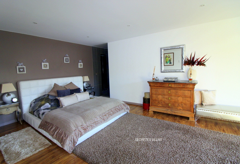 VENDU PAR NOS SOINS. SECTEUR FARGUES, AU CALME, EXPOSEE SUD OUEST, SUPERBE VILLA D'ARCHITECTE CONTEMPORAINE DE PLAIN PIED VOUS OFFRANT: ENTREE SUR SUPERBE SEJOUR DOUBLE AVEC POELE A GRANULE ET JOLIE CUISINE EQUIPEE US, BUANDERIE, CHAMBRE AVEC SDE, 2 CHAMBRES AVEC BELLE SALLE DE BAIN INDEPENDANTE, DRESSING INDEPENDANT, 2 WC, GRANDE SUITE PARENTALE AVEC JOLIE SDE POUR MADAME ET 2EME JOLIE SDE POUR MONSIEUR, WC SEPARE ET DRESSING AMENAGE. BUREAU. GARAGE DOUBLE. MAGNIFIQUES TERRASSES DE 280M2. LE TOUT SUR UN BEAU TERRAIN CLOS ET ARBORE DE 2080M2 AVEC TRES BELLE PISCINE CHAUFFEE 7X14 ET COIN BALNEO. CONSTRUCTION ET PRESTATIONS DE QUALITE: HUISSERIES ALU DOUBLEVITRAGE, VOLETS ELECTRIQUES CENTRALISES, POMPE A CHALEUR AVEC CLIM REVERSIBLE GAINEE, ASPIRATION CENTRALISEE, ARROSAGE AUTOMATIQUE, PUIT AVEC POMPE ET FILTRATION, PORTE DE GARAGE ET PORTAIL ELECTRIQUE, VISEOPHONE...ENSEMBLE ENTRETENU ET SOIGNE. AUCUN TRAVAUX. PARFAIT ETAT. ECOLE MATERNELLE ET PRIMAIRE. BUS POUR COLLEGE ET LYCEE. 5MN TOUS COMMERCES. 18MN BORDEAUX CENTRE ET GARE ST JEAN. (4.00 % honoraires TTC à la charge de l'acquéreur.)