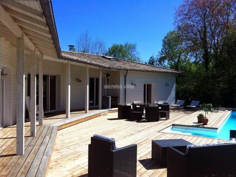 SECTEUR LATRESNE , AU CALME DANS CADRE CHAMPETRE, JOLIE MAISON CONTEMPORAINE BAIGNEE DE LUMIERE VOUS OFFRANT: ENTREE, WC AVEC LAVE MAIN, SUPERBE SEJOUR DOUBLE AVEC BELLE CHEMINEE INSERT OUVRANT SUR TERRASSE EXPOSEE SUD DE 260M2 ET PISICNE 5X10, CUISINE EQUIPEE, CELLIER, BUANDERIE, SUITE PARENTALE AVEC SDE, WC ET DRESSING, 3 CHAMBRES AVEC MEZZANINE, SDB AVEC DOUCHE ET WC. GARAGE.CAVE A VIN. CHALET AVEC POOL HOUSE. LE TOUT SUR UN BEAU TERRAIN CLOS ARBORE SANS VIS A VIS DE 3000M2. PARFAIT ETAT. PARQUET. VOLETS ET PORTAILS ELECTRIQUES.ALARME. COS RESIDUEL. ECOLE ET RAMASSAGE SCOLAIRE. BUS POUR COLLEGE ET LYCEE BORDEAUX.BIEN DE QUALITE! (3.33 % honoraires TTC à la charge de l'acquéreur.)
