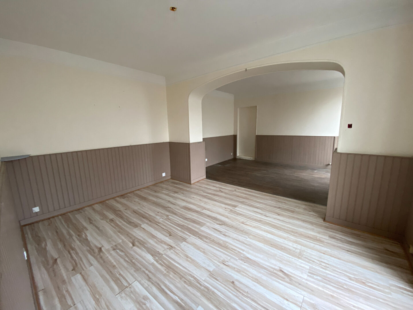 LA FERTE BERNARD, maison de ville trois chambres Maison de ville 116m² à restaurer comprenant : entrée, séjour / salon , cuisine, dégagement desservant ancienne chaufferie , wc . A l'étage : palier desservant trois chambres et un bureau avec terrasse, salle de bain. Absence de chauffage. (9.83 % honoraires TTC à la charge de l'acquéreur.)