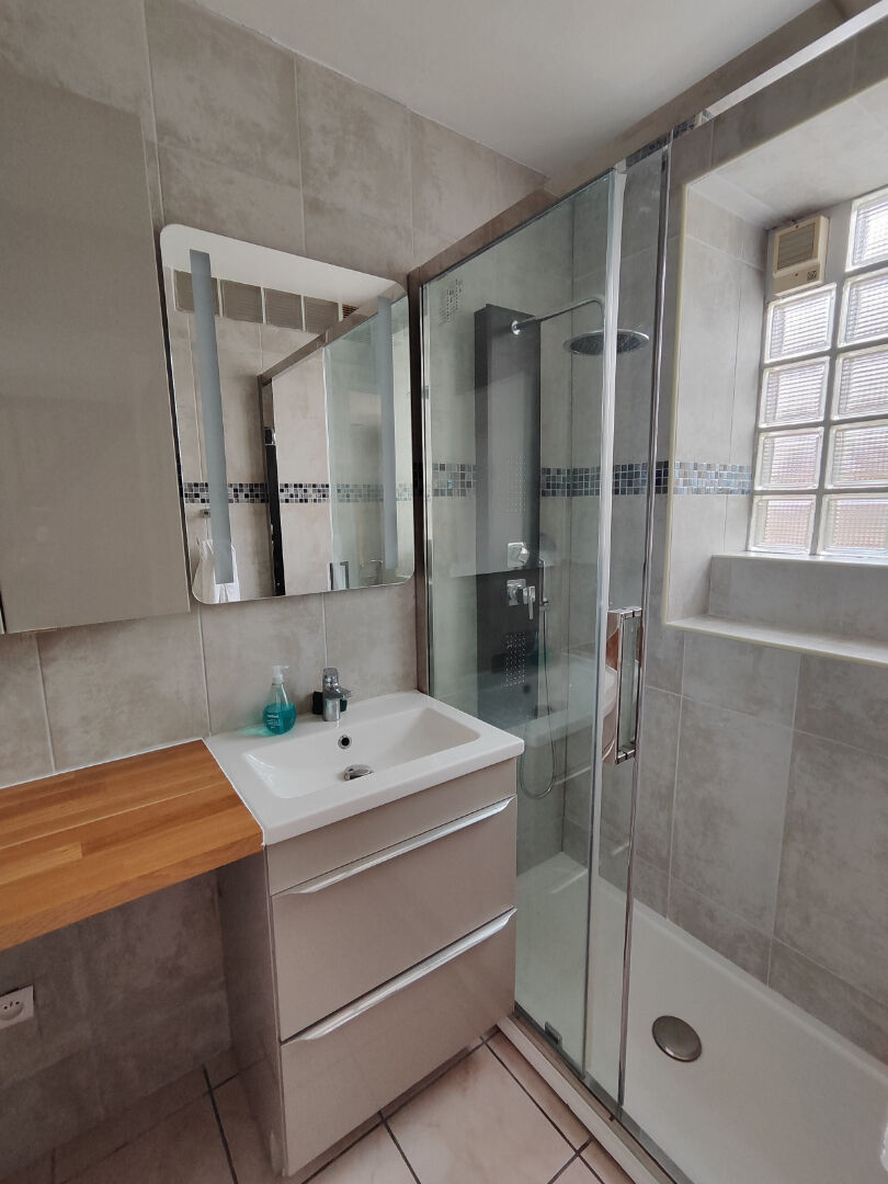 EXCLUSIVITE - Au coeur du village, au calme, adorable maison de village de 85,57m² au sol et 55m² loi carrez, avec grande terrasse de 55m² et garage pour deux voitures. Au rez-de-chaussée : Salle à manger avec cuisine américaine entièrement équipée, salon (possibilité de réunir les deux pièces), une chambre avec grands placards, wc, salle de douche à l'italienne récente. A l'étage mansardé, palier, 2 chambres. Possibilité d'extension. Garage double avec chaufferie. A 5mn de la gare Ligne L pour Paris St Lazare ou la Défense, et à 8mn du tram 13 pour Saint Germain en Laye RER A. (3.00 % honoraires TTC à la charge de l'acquéreur.)