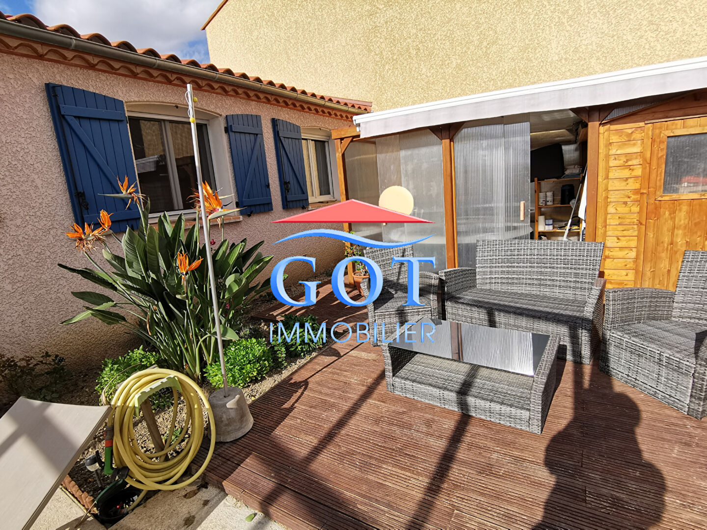 VENDU par GOT Immobilier Saint Laurent de la Salanque ! Villa 3 Faces de plain pied pour 105 m² habitables, 4 chambres + garage (15,50 m²) avec carport et abris de jardin. Le hall d'entrée de 2,80m² dessert une pièce de vie de 41,30 m² comprenant salon et cuisine équipée et aménagée ouverte . Un couloir permet d'accéder à 4 chambres. Une salle d'eau et une salle de bains avec deux toilettes, terrasse, garage, abris de jardin abritant un jacuzzi viennent compléter ce bien. Cette villa à vendre est implantée sur une parcelle de 459 m² . Prestations: Menuiseries double vitrage, volets bois. Douche italienne. Terrasse couverte. Excellent quartier, très recherché. Votre Conseiller : Thierry 06 14 13 37 92