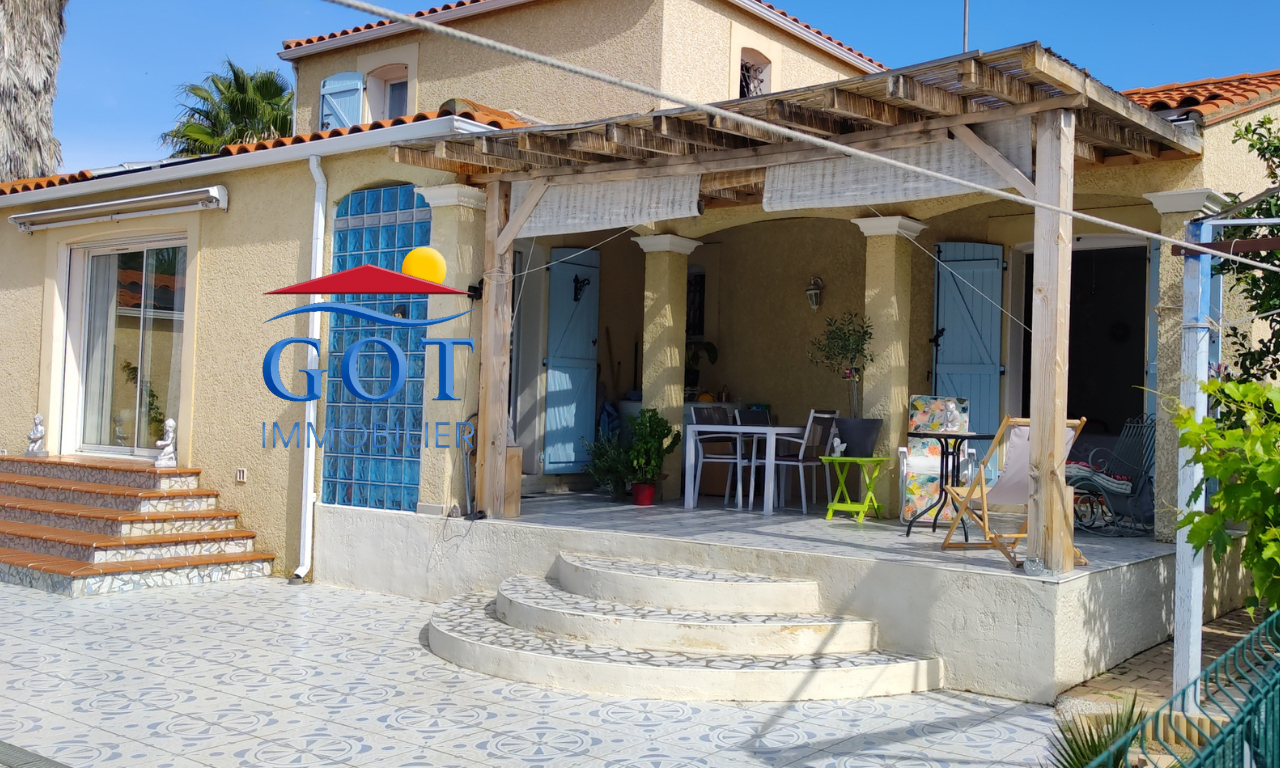 SOUS COMPROMIS DE VENTE De beaux volumes pour cette Villa 4 Faces pour 125 m² habitables plus dépendances, 3 chambres dont une en RDC + garage et abri de jardin. Le hall d'entrée dessert une pièce de vie très lumineuse exposée plein sud, donnant sur la piscine, composée d'une cuisine équipée et aménagée ouverte sur la pièce à vivre. Une chambre, un toilette indépendant et une grande salle d'eau complètent le rez de chaussée. Au premier étage un toilette indépendant, une salle d'eau et deux chambres viennent compléter ce bien. Cette maison 4 Faces est implantée sur une parcelle de 600 m² . Un beau jardin arboré et de nombreuses terrasses proposent un cadre de vie agréable. Prestations: Menuiseries double vitrage, volets bois. Douche italienne. Terrasse couverte exposée sud-est. Portail roulant motorisé. Toiture et gouttières révisée en 2023. Excellent quartier très calme, très recherché en Salanque. Votre Conseiller , Thierry 06 14 13 37 92