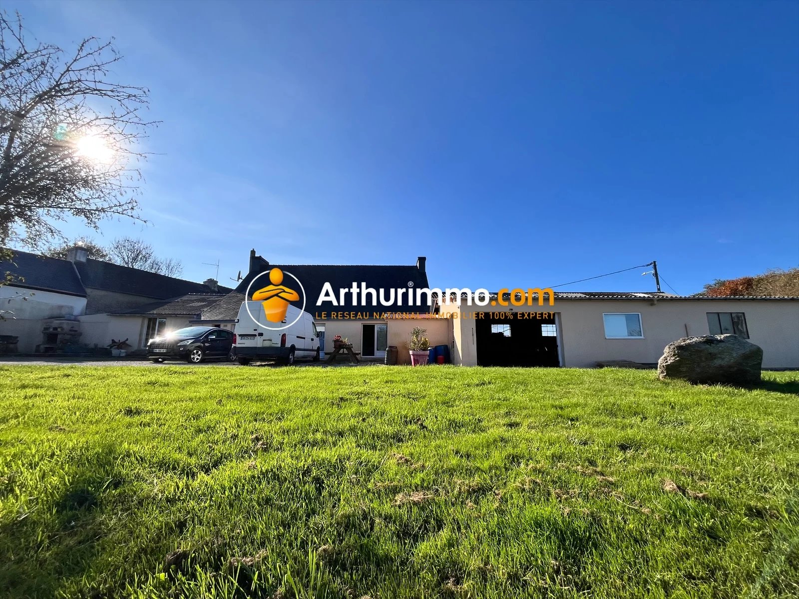Arthurimmo vous invite à découvrir cette charmante maison de campagne située à Edern, développant environ 165 m² habitables, édifiée sur un magnifique terrain arboré de plus de 4 500 m². Construite dans les années 1950, cette maison séduit par ses beaux volumes et son important potentiel d’aménagement. Au rez-de-chaussée vous trouverez un spacieux séjour d’environ 35 m², une cuisine aménagée et équipée avec espace repas d'environ 38 m², une chambre, une salle de ba