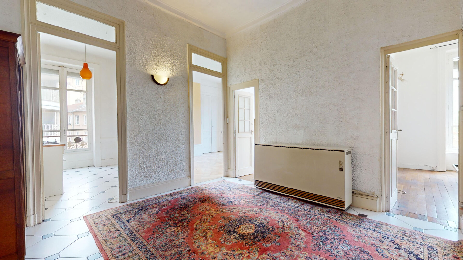 COEUR JEAN MACE - En retrait de la place, au pied des transports (métro, bus, gare et tramway) et des commerces, au deuxième étage sans ascenseur d'un magnifique immeuble type haussmannien récemment ravalé et sécurisé, nous vous proposons un T4 avec de beaux volumes et tout le charme de l'ancien. Un hall d'entrée en étoile dessert un séjour d'angle avec double exposition (E/N), une cuisine indépendante, trois chambres dont une avec salle d'eau et un toilette séparé. Travaux de réagencement et de rénovation à prévoir. En annexes, cave et grenier. Diagnostics en cours de réalisation. Votre contact : Guillaume Germain 06 19 46 99 08