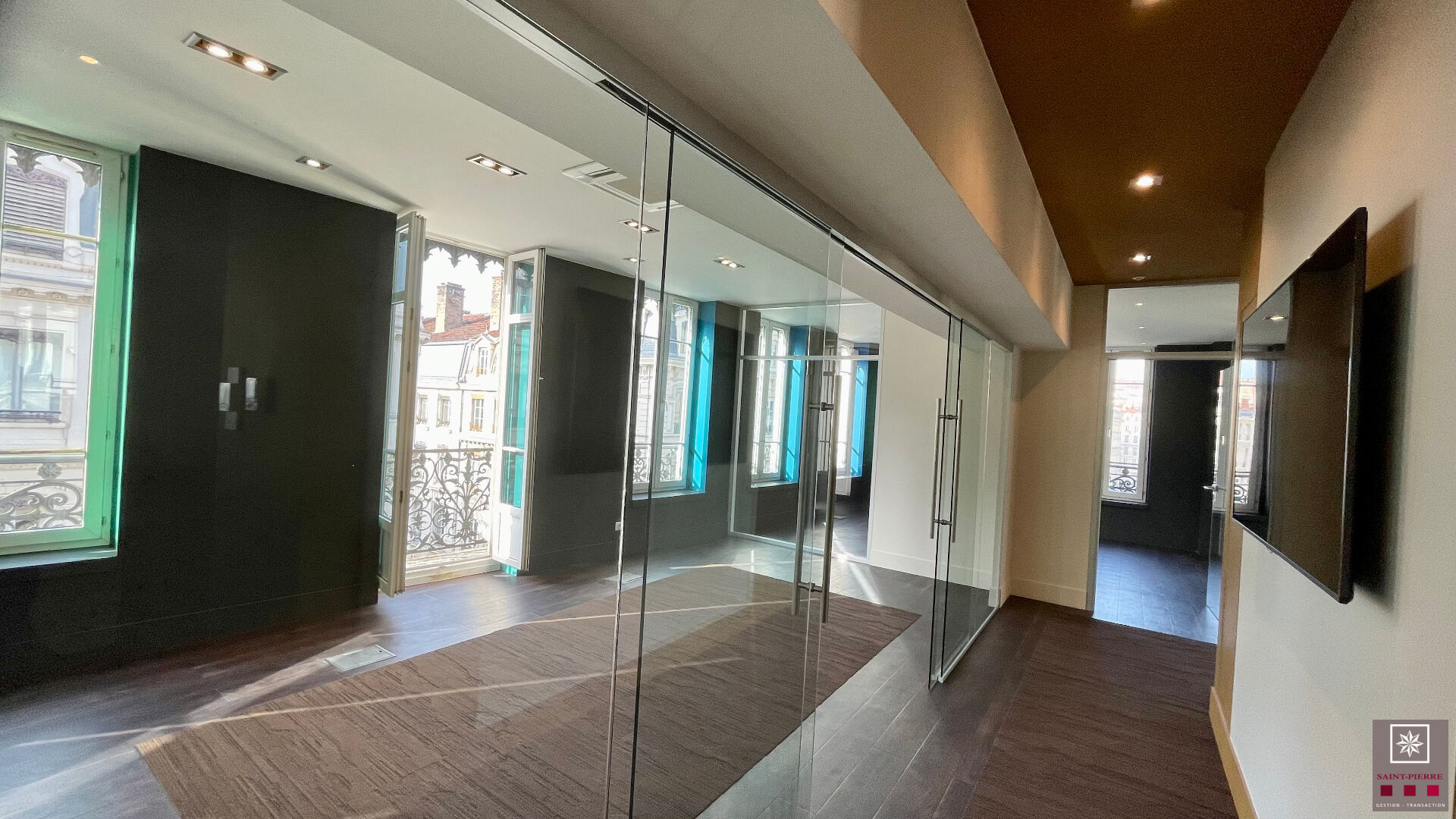 Lyon2 au coeur de la presqu'ile, à 3 minutes du métro Cordeliers : Bureaux d'exception, climatisation réversible, très lumineux au dernier étage d'un immeuble Haussmannien avec deux entrées palières sur un grand et unique plateau, bénéficiant de 3 expositions. Une vaste salle de réunion avec balcon Ouest, 4 grandes pièces de bureaux, espace café et toilettes privatives. Un très bel aménagement réalisé au sein d'un immeuble de grand qualité. Bail 3/6/9 ou professionnel. Honoraires à la charge du preneur : 20 % hors taxes du loyer annuel hors taxes. Contacter Christian Maillet Régie Saint-Pierre