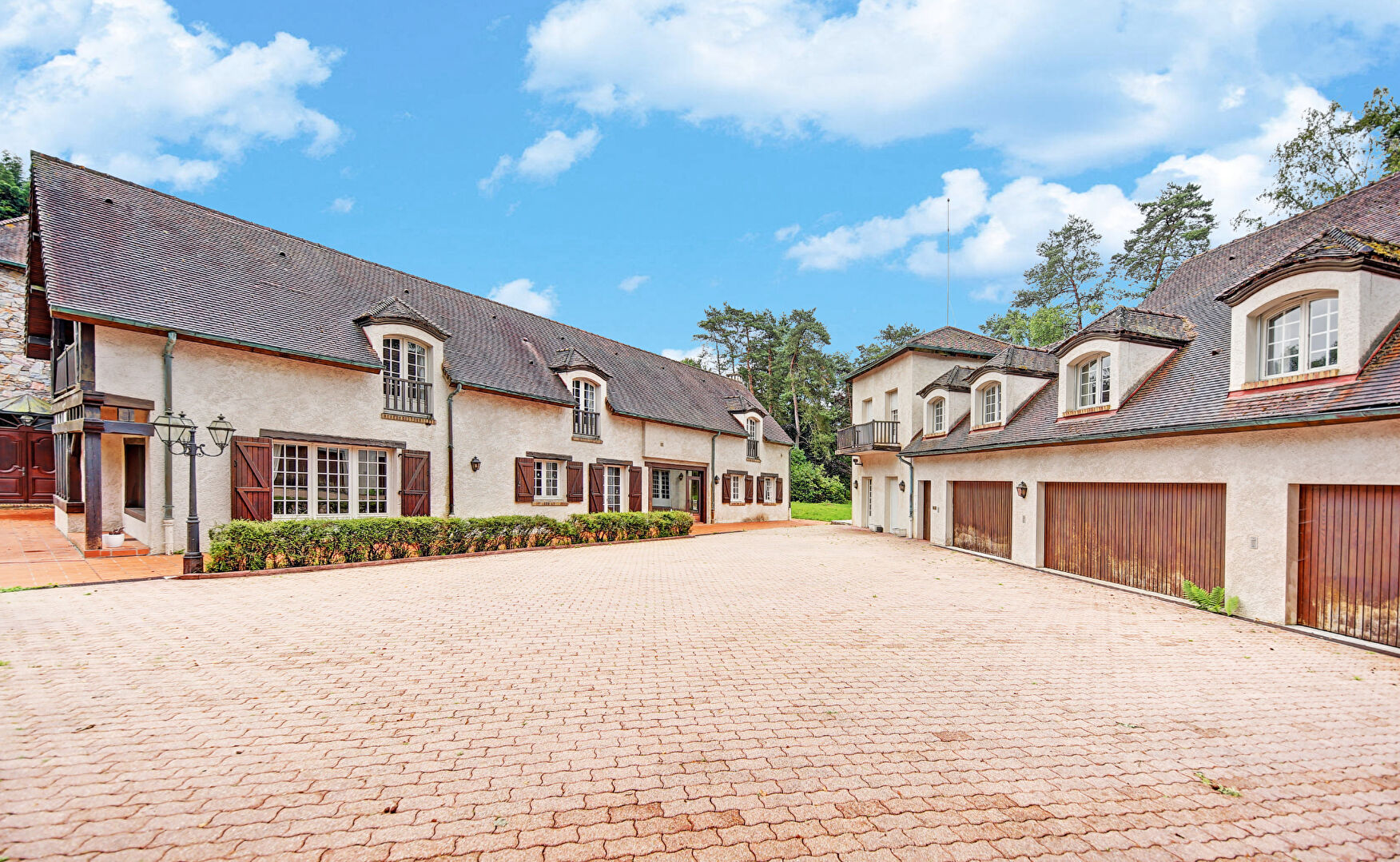 Dans un cadre naturel remarquable au coeur de la forêt domaniale de Rambouillet, on accède à cette belle propriété par une route qui traverse le massif forestier. Au sein d'une vaste cour pavée, charmante et avec beaucoup de caractère, nous retrouvons la propriété principale d'environ 433 m² habitables ainsi qu'une maison d'invités indépendante d'environ 195m² habitables avec ses dépendances. Au rez-de-chaussée : une entrée traversante desservant un vaste salon cathédrale avec un bar, ses boiseries et sa cheminée à double foyer, un e réception avec une cuisine ouverte équipée d'un grand bloc de cuisson professionnel (une entrée de service proche facilitant l'accès direct à la cuisine), un bureau, deux belles chambres avec terrasses donnant sur le Parc, un dressing, une salle d'eau et deux WC. Dans la tour, un bel escalier en chêne massif donnant sur la mezzanine offre une vaste suite de 94 m² avec balcons, dressing et salle de bains, deux autres chambres avec salle de bains et WC indépendant. La maison d'invités offre une entrée avec vestiaire, un salon séjour avec une cuisine et trois chambres avec dressings et salles de douches. Plus de 220m² sont consacrés aux dépendances réparties entre : un atelier, une chaufferie, une cave à vin, une grande pièce de rangement et deux grands garages pouvant abriter 5/6 voitures. Une très grande terrasse ensoleillée avec barbecue intégré et une piscine couverte chauffée complètent l'ensemble. Très lumineuse grâce aux multiples ouvertures sur le parc avec vues panoramiques. La propriété s'étend sur 9850m² de terrain. Composée d'un joli parc clos, elle offre de nombreuses possibilités tels qu'une résidence principale ou semi secondaire, une exploitation évènementielle ou même un relais de chasse compte tenu de son emplacement. La gare la plus proche est à Gazeran (6km) mais les trains les plus fréquents sont à Rambouillet (8km), accès direct vers Paris en 40mn et une heure en voiture. Une propriété de grande qualité dans un environnement unique. Prix incluant 5.26 % d'honoraires charge acquéreur ( 2 745 500 Euros honoraires exclus ) (5.26 % honoraires TTC à la charge de l'acquéreur.)