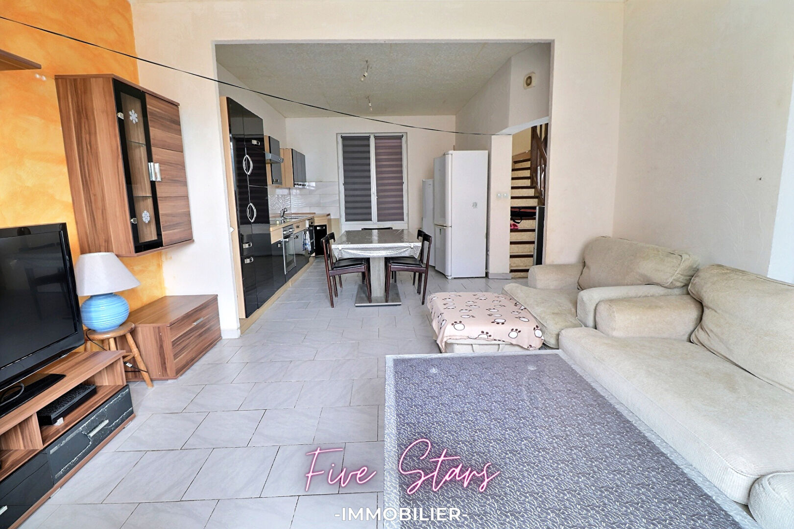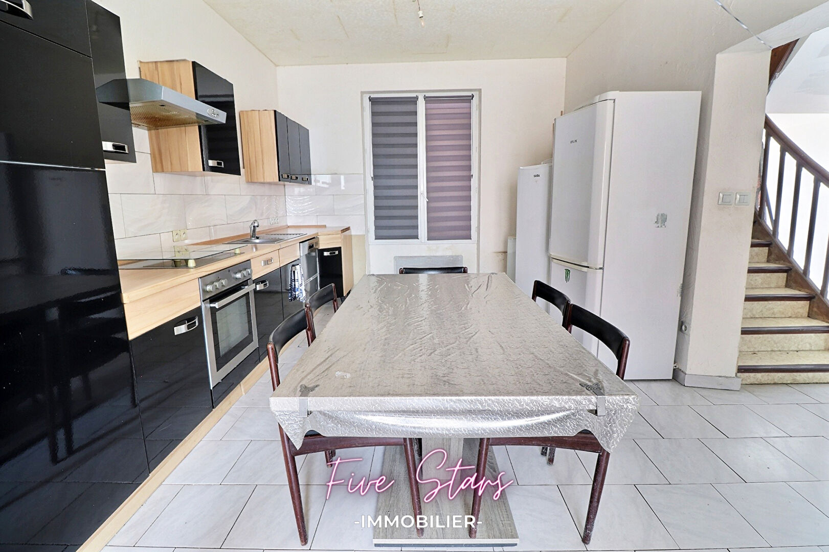 EXCLUSIVITE - TROP TARD SOUS OFFRE Five Stars Immobilier a le plaisir de vous faire découvrir cette maison mitoyenne des 2 côtés, d'une superficie d'environ 145 m², construite sur un terrain de 490 m² ! Au rez-de-chaussée : - Vous serez accueilli par une entrée généreuse menant à un vaste espace de vie comprenant un salon et une cuisine dinatoire, ainsi qu'une salle de bain spacieuse et une chambre. A l'étage : - Vous trouverez 4 belles chambres, et des travaux en cours pour aménager une salle d'eau avec WC. A l'extérieur : un jardin à redynamiser et clôturer pour profiter pleinement des journées ensoleillées ! Caractéristiques techniques : fenêtres en double vitrage PVC, chauffage électrique, et isolation intérieure. Un potentiel certain, avec des travaux prévoir. Pas de garage mais la possibilité d'en construire un sur l'arrière. TRAVAUX A PREVOIR ! Ne laissez pas passer cette occasion ! ? Contactez-nous pour davantage d'informations ! Les informations sur les risques auxquels ce bien est exposé sont disponibles sur le site Géorisques : www.georisques.gouv.fr. La présente annonce immobilière a été rédigée sous la responsabilité éditoriale de Mme LEBLOND Emilie, agent immobilier pour le compte de la société Five Stars Immobilier SARL.