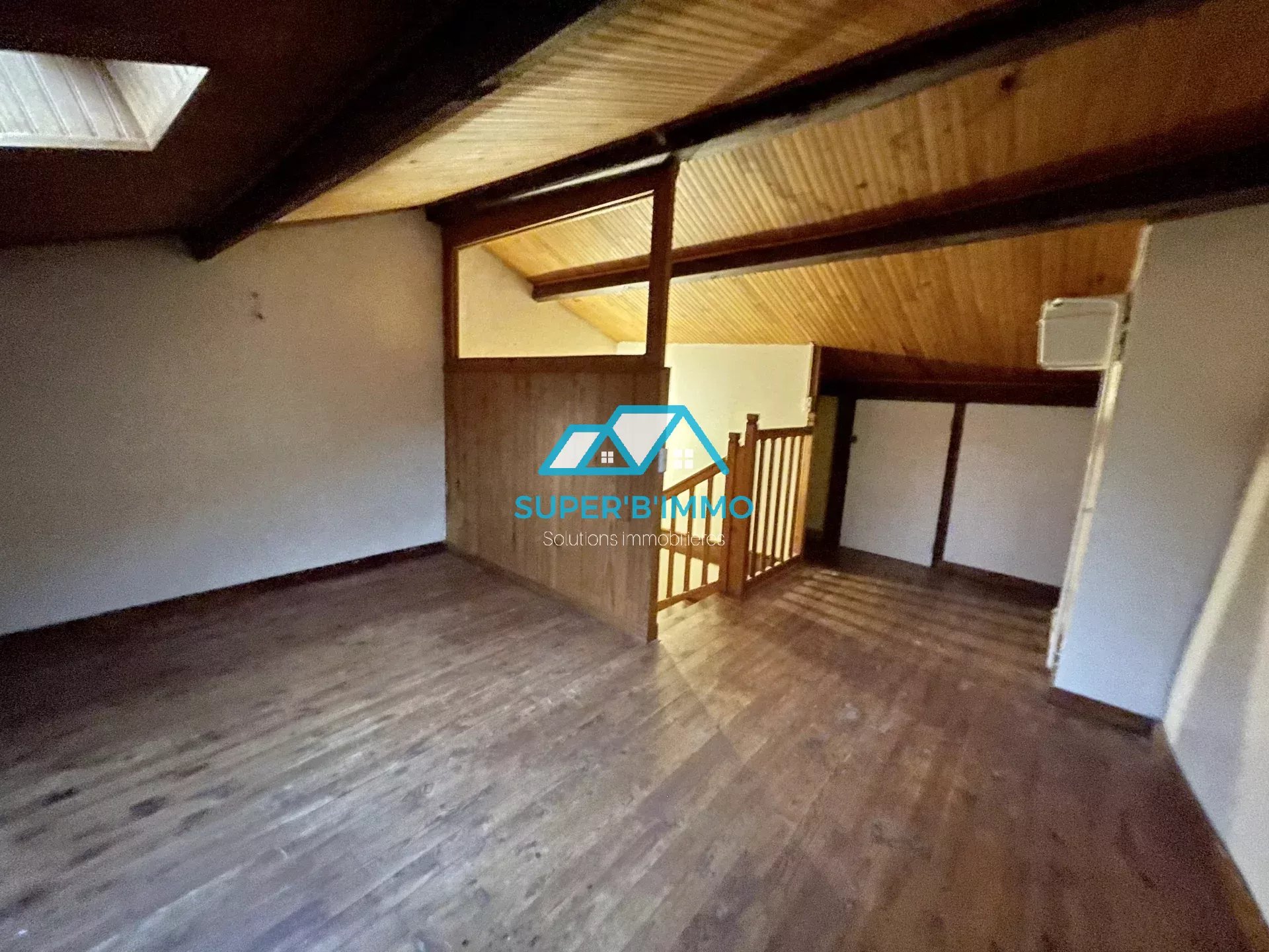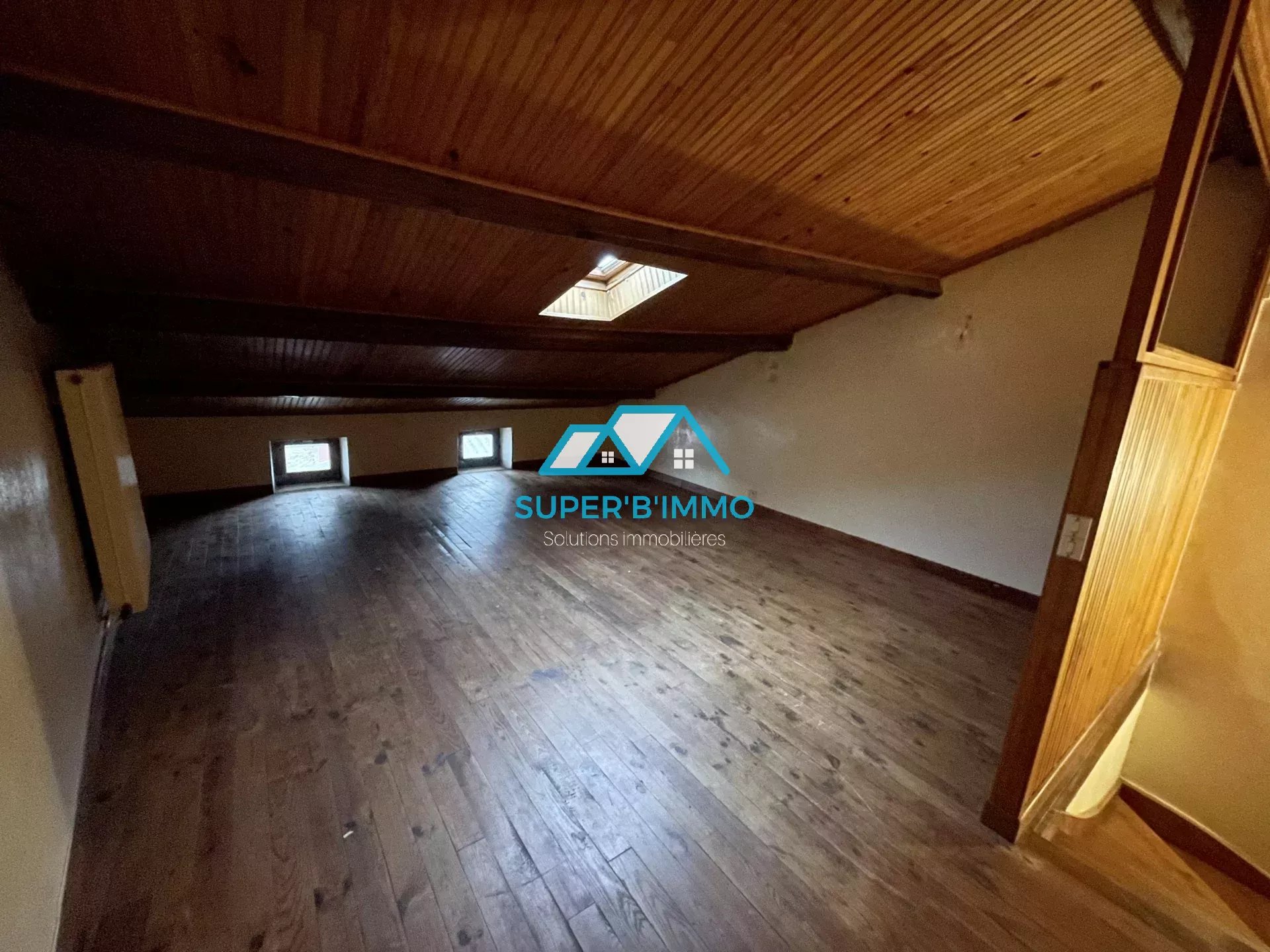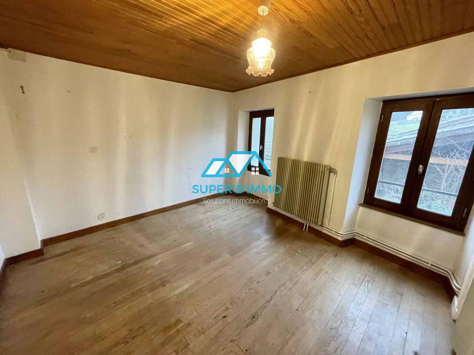 Sur la commune de CHANIAT, au centre du jolie bourg, maison d'une surface habitable de 85 m2 avec cour et garage. La maison est composée : - au sous-sol : une cave - au rez-de-chaussée : cour, entrée donnant sur un séjour ouvert sur la cuisine, salle de bains et WC - au premier étage : un dégagement avec placard, deux chambres avec placards dont une de 16 m2 - au deuxième étage : une grande chambre avec WC et lavabo La maison possède une cour avec une véranda à l'avant, et un grand garage avec un espace de stockage. Travaux de modernisation et de mises aux normes à prévoir.