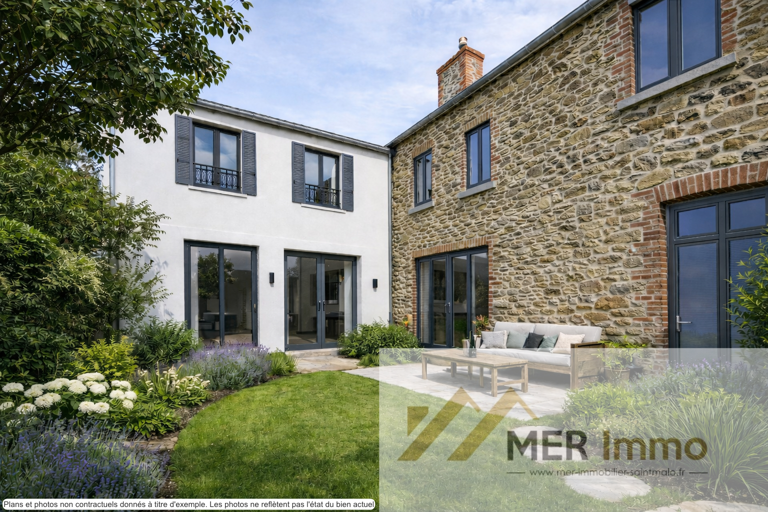 SAINT-MALO - ROCABEY- EXCLUSIVITÉ MER Immobilier - Propriété de caractère à fort potentiel de rénovation Idéalement située dans une rue calme du quartier de Rocabey, cette propriété bénéficie d'un emplacement privilégié à proximité immédiate de toutes les commodités : commerces, marché, transports, gare, écoles et lycée. La grande plage du Sillon est accessible en seulement 10 minutes à pied. L'ensemble se compose de deux maisons développant une surface totale d'environ 1