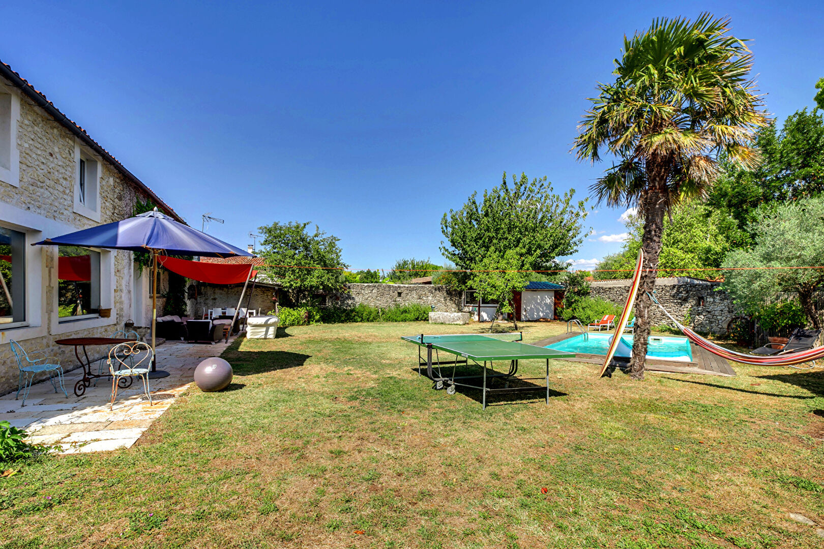 BIEN IMMO vous propose cette CHARMANTE VILLA CHARENTAISE située au coeur du village à proximité immédiate des commerces sur 948m² clos. Elle offre 267m² de superficie habitable et sa conception actuelle vous offre la possibilité de scinder la villa en 2 habitations si vous le souhaitez : la maison principale et une habitation annexe. Actuellement la villa édifiée sur 2 niveaux se compose d'une vaste entrée, 2 séjours 48m² et 55m², cuisine 21m², 4 wc, sdbains, 3 sdeau, 6 chambres ( entre 10 et 34m² ), 2 dressings, nombreux placards, lingerie. Côté détente, vous saurez apprécier l'espace piscine sans vis-à-vis et bien ensoleillé avec pool-house, sauna, auvent, garage et abris bois. Chauffage central gaz et poêle. 649500 euros HAI avec Hors Honoraires 630000 euros et Hon Acquéreur 3,09% TTC ref 1545 Délégation CAPIFRANCE VGUERIN / TARIFS : assets.digitregroup.io/capifrance/capifrance_baremes_2022-B.pdf Les informations sur les risques auxquels ce bien est exposé sont disponibles sur le site Géorisques : https://www.georisques.gouv.fr (3.10 % honoraires TTC à la charge de l'acquéreur.)