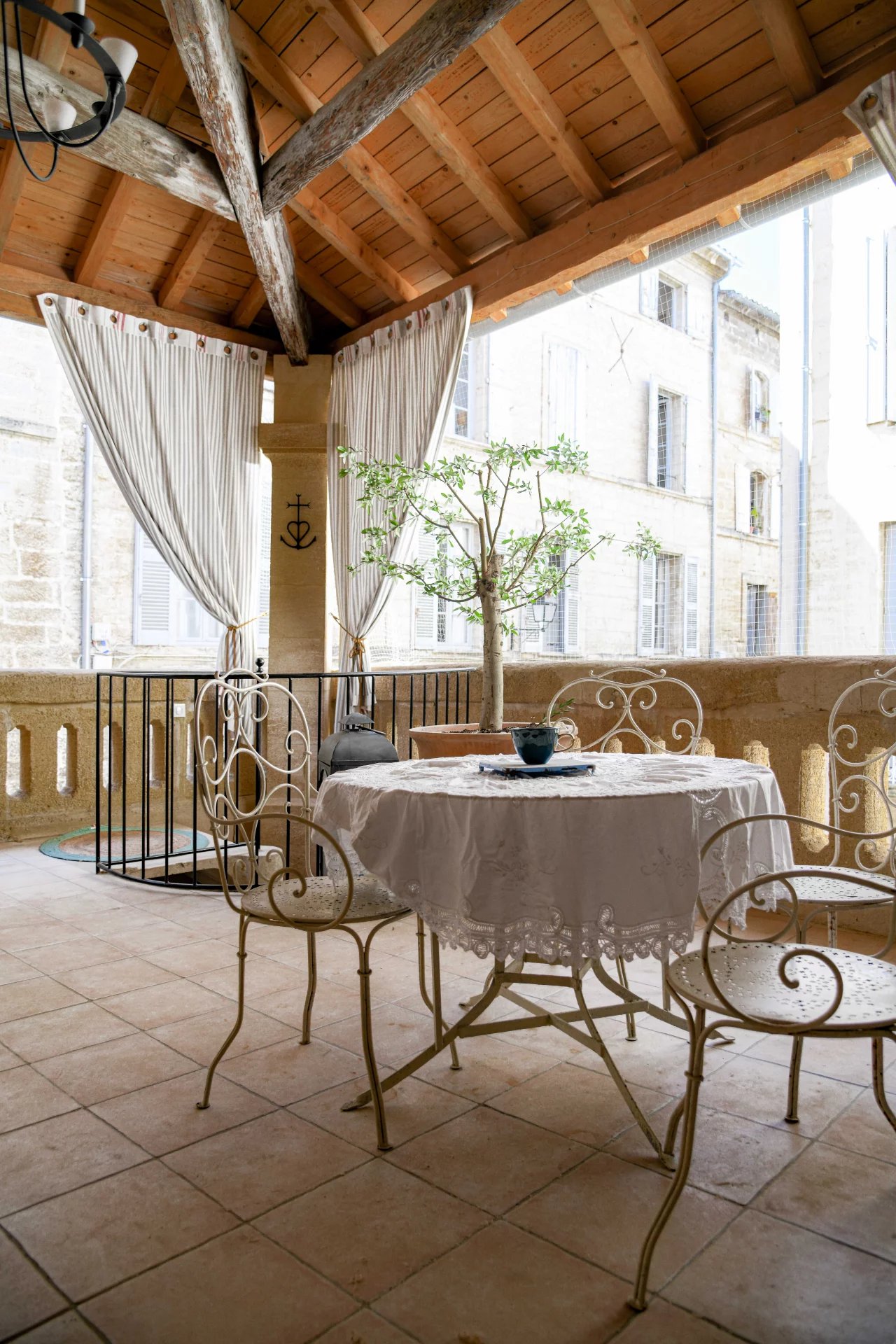 Salon avec cheminée ouvert sur une terrasse de 31 m² Cuisine équipée ouverte sur patio couvert et chauffée 2 chambres, 2 salles de bains, buanderie. Belle luminosité Situation géographique exceptionnelle, centre historique au calme