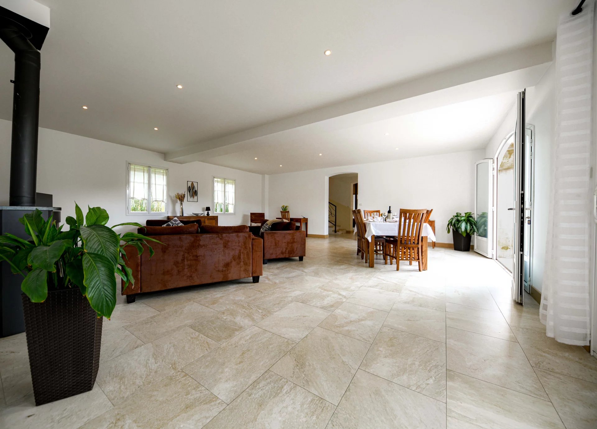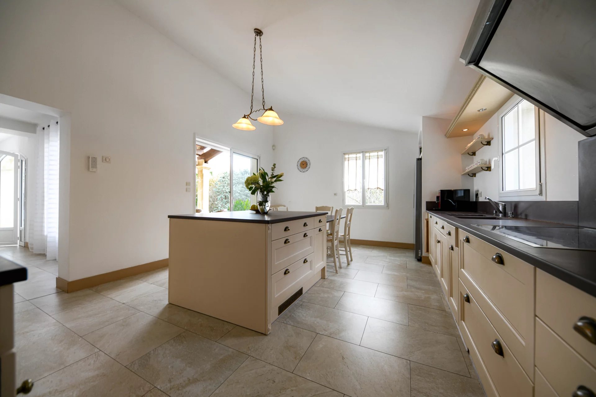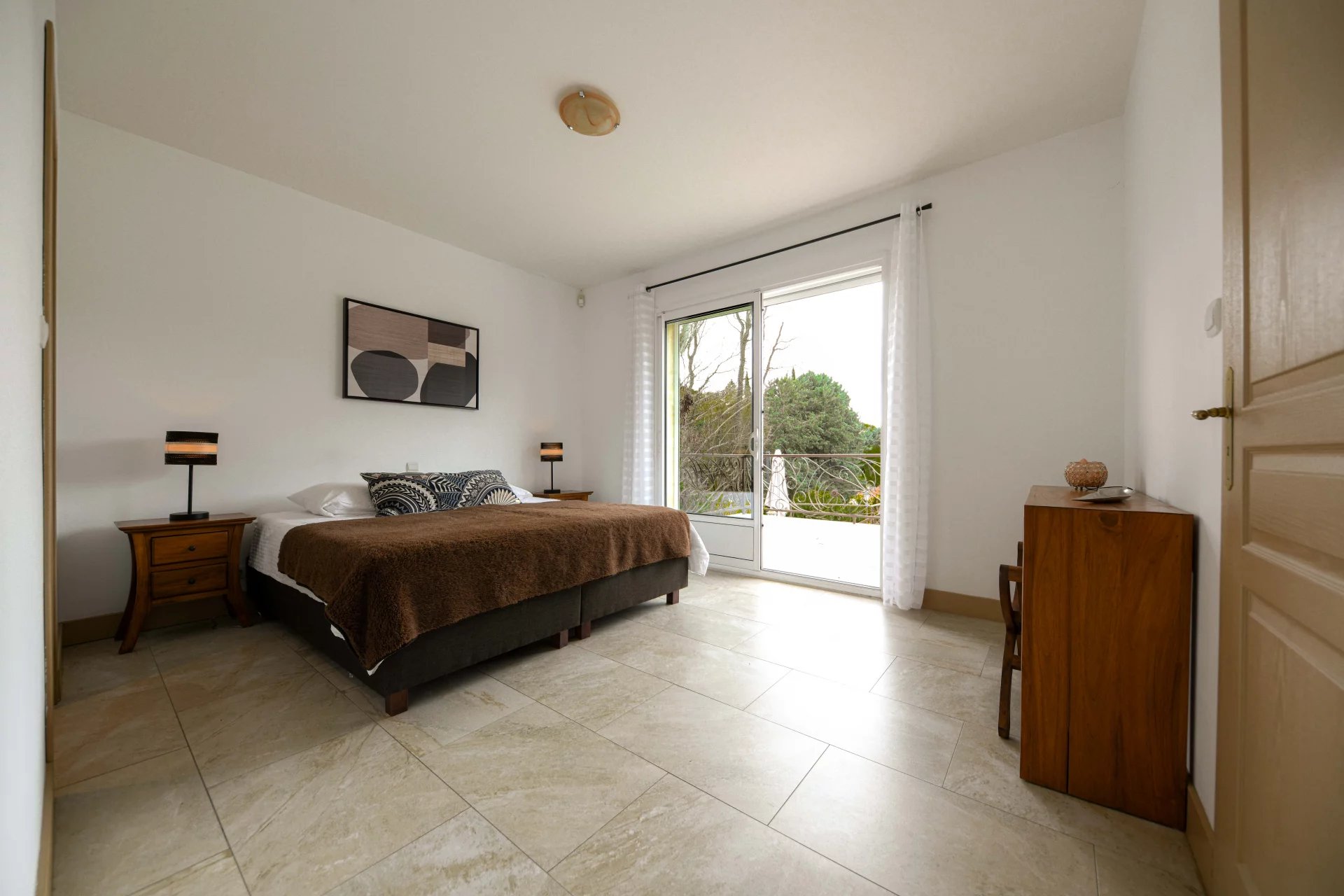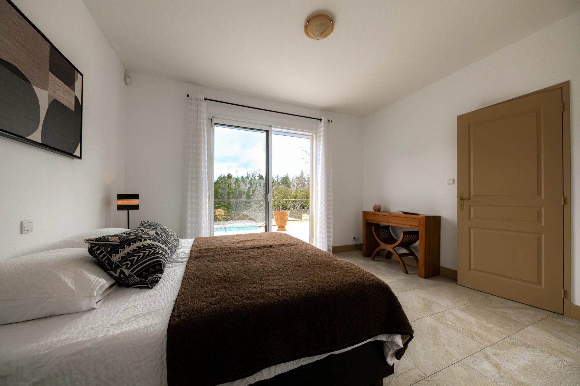 Bel ensemble de réception de 85 m² ouvert sur la terrasse et piscine 4 chambres, 3 salles de bains (dont suite parentale au rdc) Environnement de qualité au calme à 1.1 km du centre historique d’Uzès Jardin paysagé d’environ 2000 m² avec piscine et vue