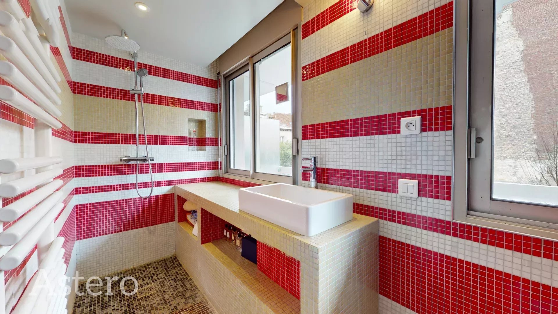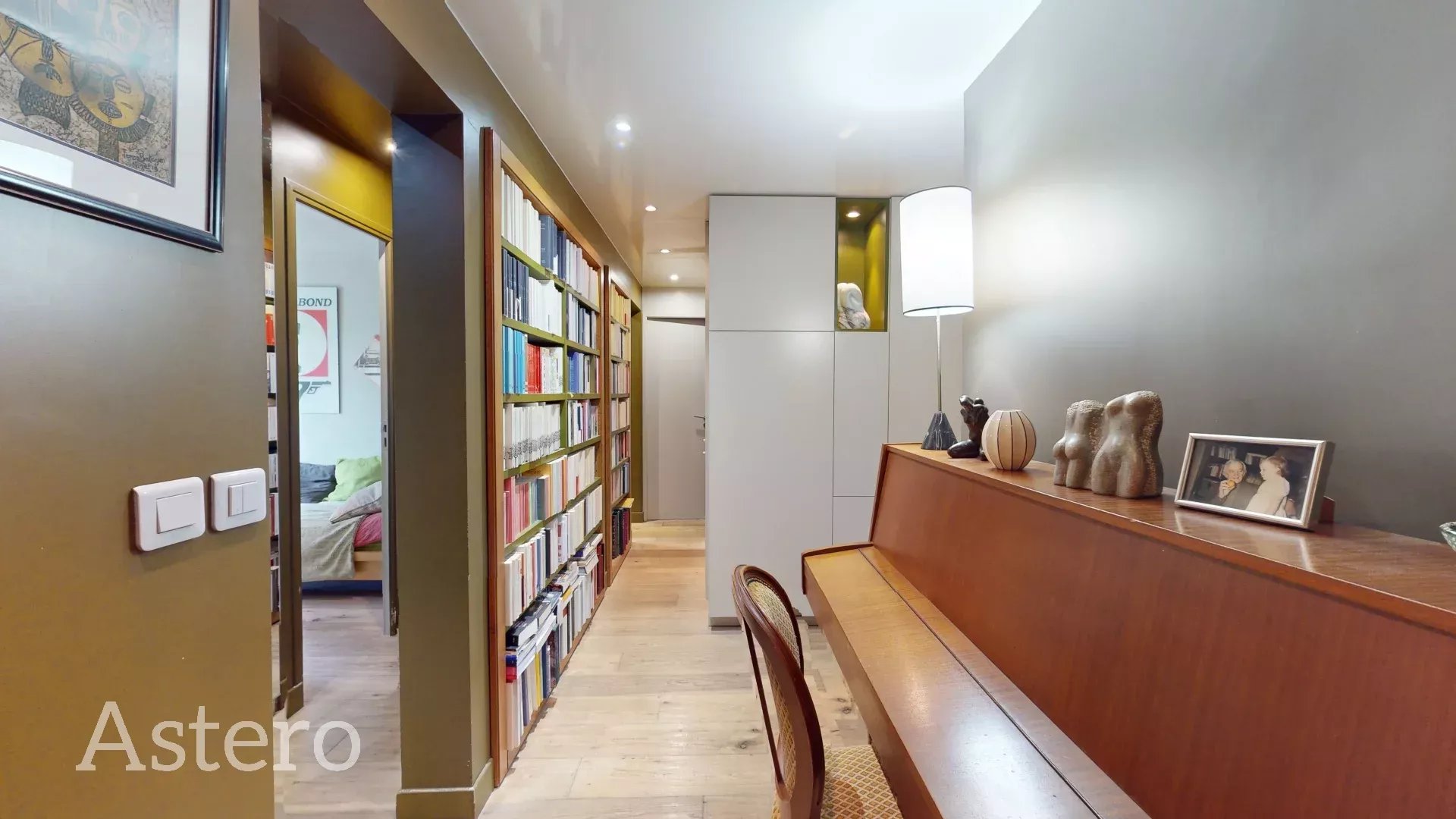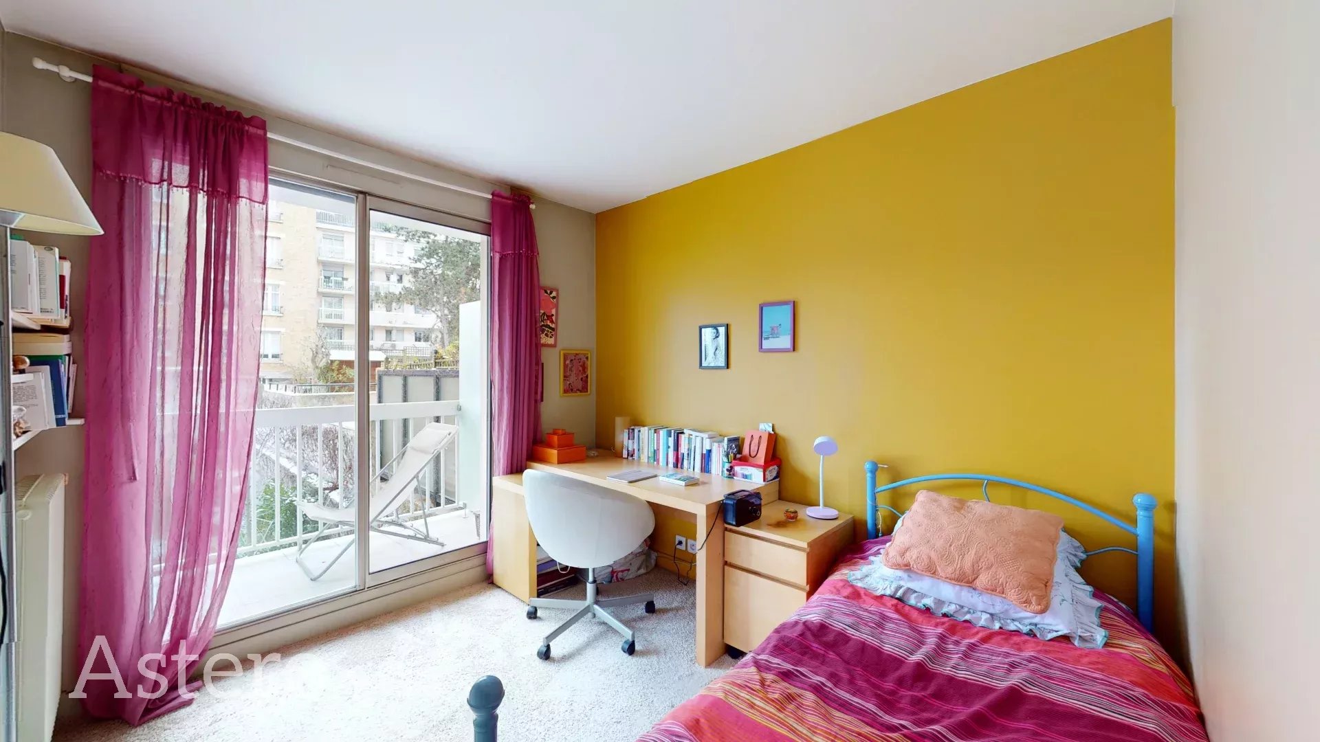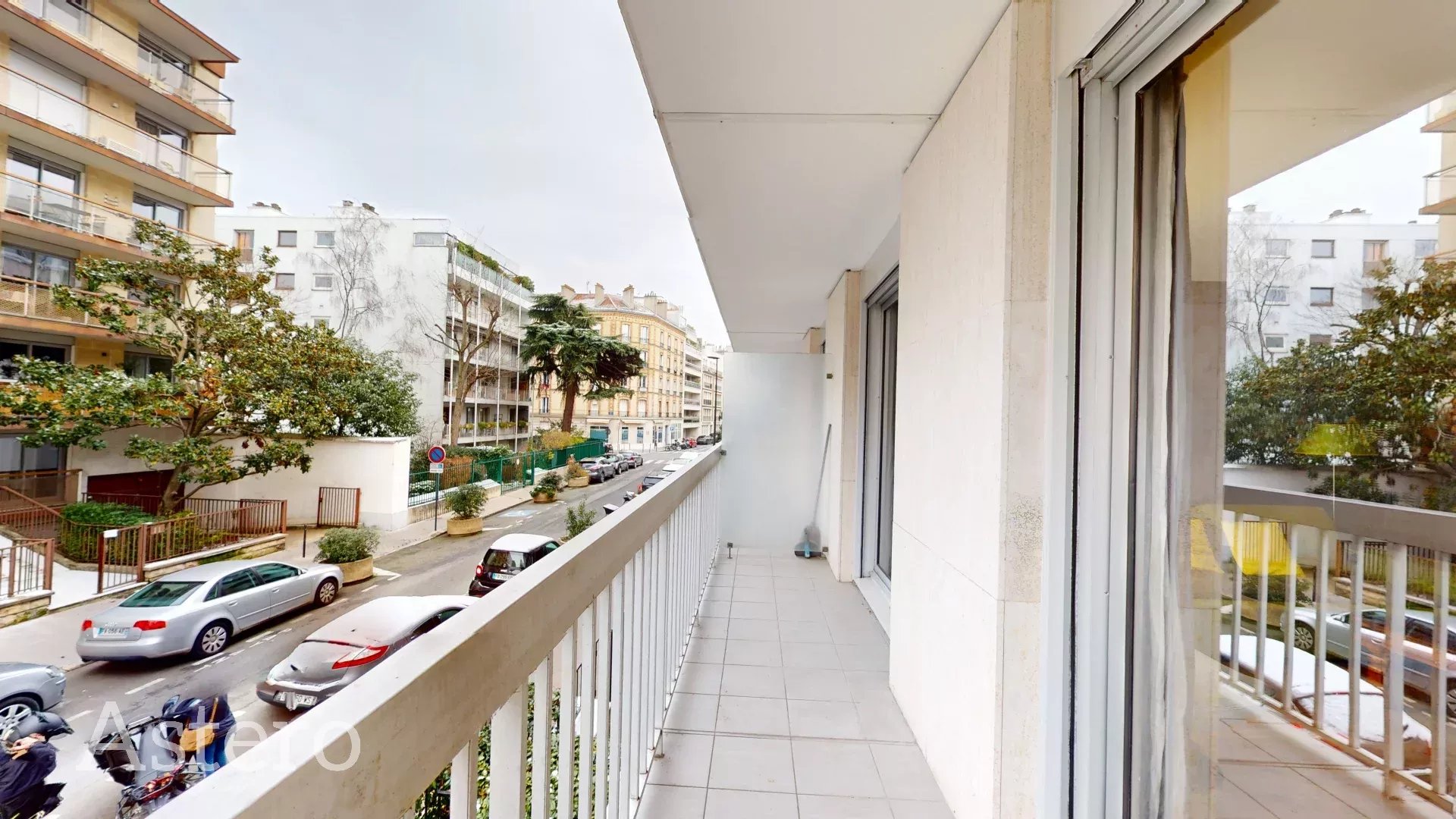 Cet appartement de 82 m2 traversant et lumineux, refait à l’intérieur par un architecte, est au 1er étage par ascenseur, et se compose d’un salon/salle à manger de 26 m2 qui donne sur un premier balcon de 5 m2, d’une cuisine séparée équipée fonctionnelle avec rangements, de 3 chambres (dont une avec une salle d’eau) au calme côté jardin avec accès sur un deuxième balcon de 10 m2, une salle de bains équipée d’une double vasque et baignoire, wc séparé. De nombreux rangements encastrés sont à disposition.