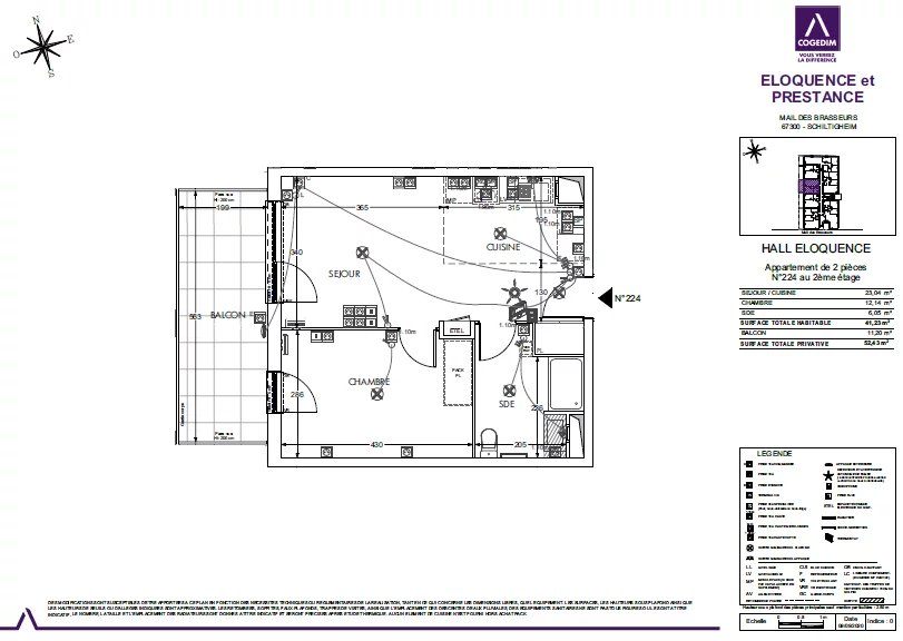 Au sein de l'Eurométropole de Strasbourg, à quelques minutes du centre-ville et de la gare, découvrez ce secteur où cohabitent de magnifiques maisons ainsi qu’un maximum de verdure. LIBRE IMMÉDIATEMENT - PROCHE DU TRAM - PINEL Pour votre résidence principale ou pour investissement, nous proposons à la vente dans le NEUF, un appartement situé dans une résidence neuve livrée en Juin 2023 et construite dans le respect des dernières réglementations en vigueur BBC RT2012 (charges réduites, isolation thermique et phonique renforcé, vidéophone, ascenseur). La situation exceptionnelle vous permettra de profiter de toutes les commodités offertes par la vie au quartier Fischer avec un accès au transport aisé. Vous apprécierez également les belles prestations de cette résidence : carrelage au sol, stratifié dans les chambres, salle de bain entièrement équipée, etc. Appartement Neuf type 2 pièces de 41m², situé 2ème étage Il se compose d'un séjour et une cuisine ouverte sur séjour de 23m², d’une grande chambre de 12.14m², d'une salle de bains avec WC et d’un grand balcon de 11.21m². une place de parking couvert en sous-sol est également disponible pour 16 960 €. Prix de l’appartement : 223 660 € FAI à la charge du vendeur Contactez-nous dès maintenant au 03.88.02.40.50 pour organiser une visite et découvrir tous les avantages de ce bien exceptionnel !