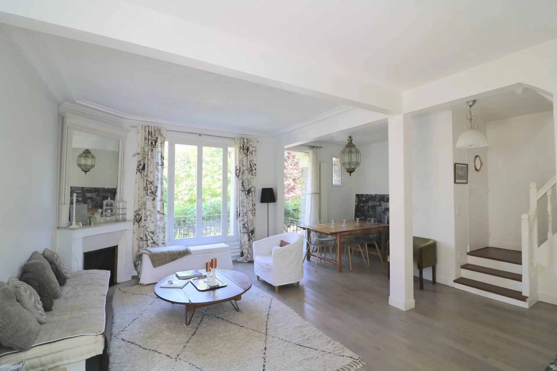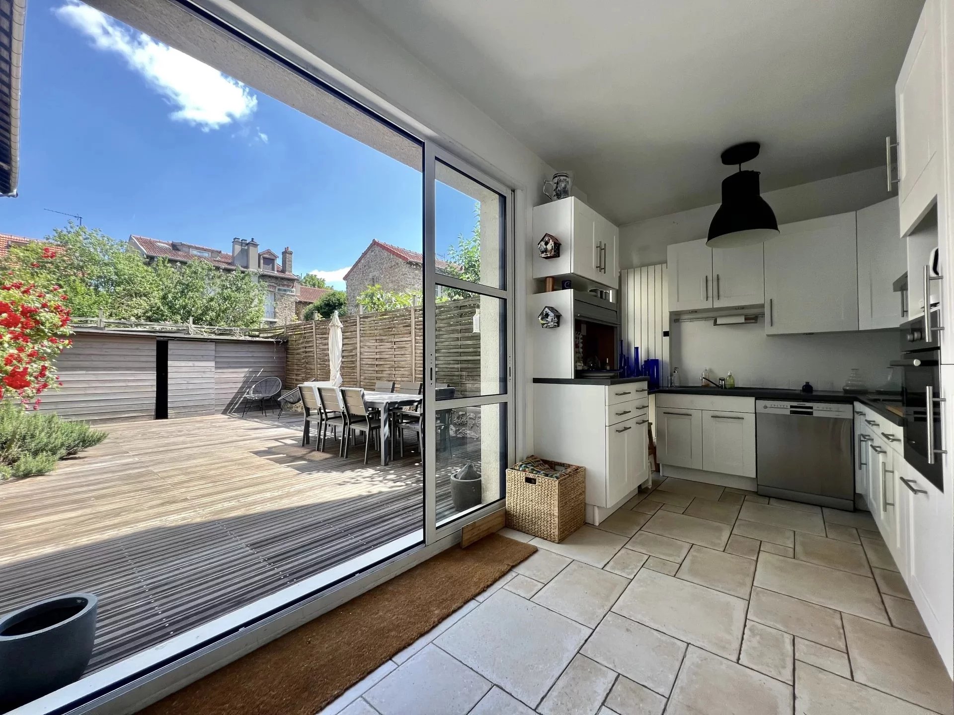 A 7mn à pied de la gare de Clamart, belle maison ensoleillée au calme et dans la verdure, alliant le charme d'une meulière avec une extension contemporaine. Elle bénéficie d'un plan traversant parfaitement optimisé avec une surface au sol de 176 m2 (140 habitables) + 110 m2 d'extérieurs sur une parcelle de 223 m2. Le rez-de chaussé est composé d'1 entrée, 1 séjour avec cheminée / salle à manger, 1 cuisine dinatoire avec une baie vitrée en galandage de plain-pied sur une terrasse de 58 m2 exposée Sud ouest, 1 wc invités. Le 1er étage dispose de 2 chambres dont 1 suite parentale avec sa salle douche, dressings, bureau + 1 salle de bains, 1 wc séparé et le 2e étage d'une 3e et 4e chambres sous combles. Le sous-sol est équipé d'1 buanderie avec fenêtre,d'une chaudière neuve dans 1 grande cave aménageable avec fenêtre . Un abri de jardin et 1 emplacement de parking extérieur complètent ce bien. A proximité de toutes les commodités commerces, écoles et transports : Gare Ligne N (7mn de la Gare Montparnasse) + futures lignes T10 du tramway et 15 du métro du Grand Paris Express.