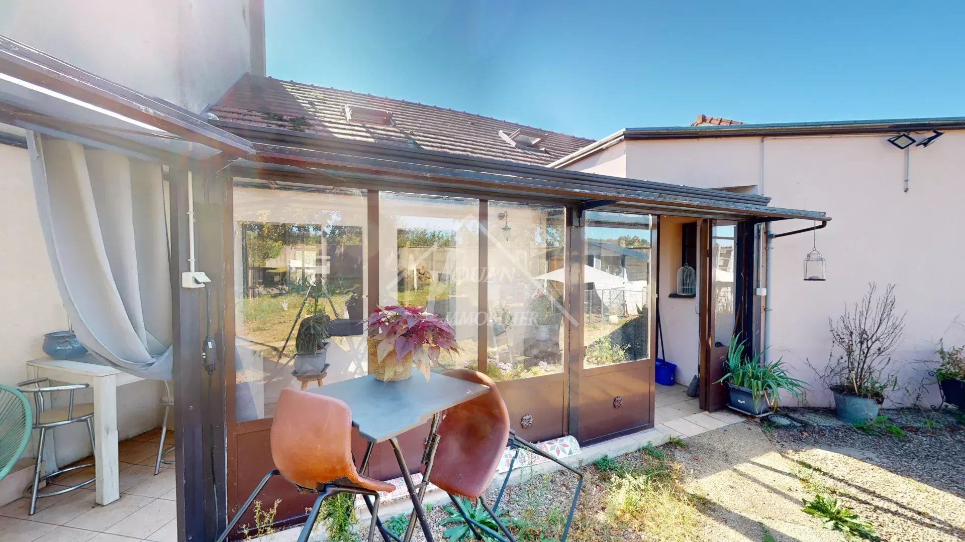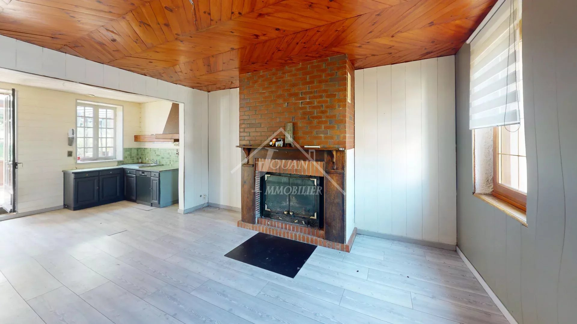 EN EXCLUSIVITE - Jolie maison de village à rafraichir offrant de beaux espaces de vie… sur un emplacement à la fois calme et entouré de voisins. Très pratique, vous êtes à deux pas des commodités. Quand vous entrez… vous apprécierez d'un côté le salon, et de l'autre, l'ambiance chaleureuse de cette cuisine ouverte sur un bel espace séjour avec sa cheminée en brique (des travaux sont nécessaires pour l'utiliser en chauffage principal). Vous trouverez également deux chambres de plain pied, deux petites marches avec un palier qui dessert WC et salle d'eau, ainsi qu'une grande véranda, menant aussi à la cuisine. A l'étage : un palier, deux chambres, une salle de bain avec WC, grenier. Cour et jardin clos de 1009 m2 avec chalet. Un petit garage et cellier attenants à la maison. Deux puits. Prix hors honoraires : 100 000 € net vendeur, honoraires charge acquéreur : 7% TTC du prix du bien, soit 107 000 € frais d'agence compris. DPE classe F logement à consommation excessive. Audit énergétique réalisé. Tout à l'égout non conforme (travaux à prévoir, devis en cours) Les informations sur les risques auxquels ce bien est exposé sont disponibles sur le site Géorisques : www.georisques.gouv.fr