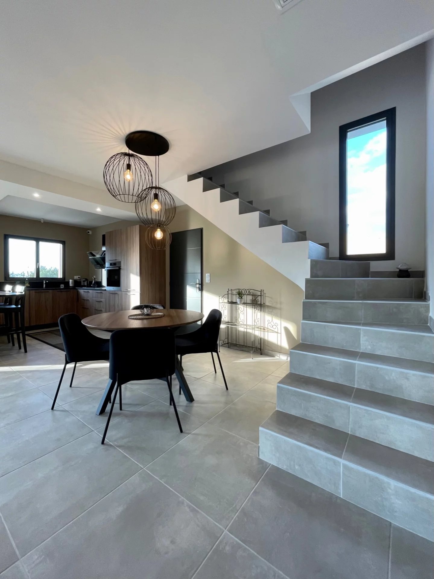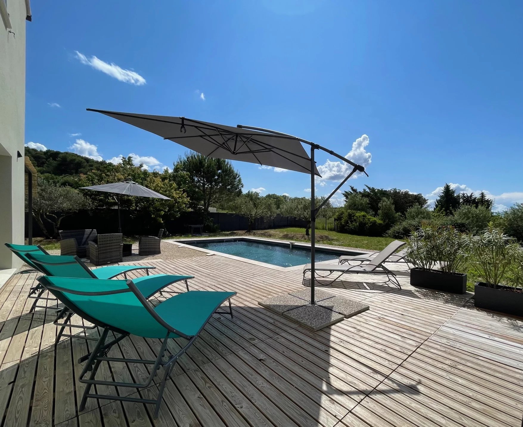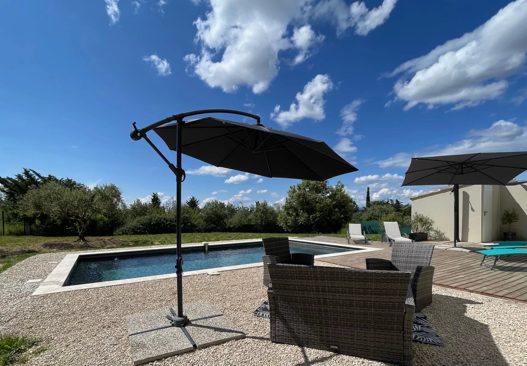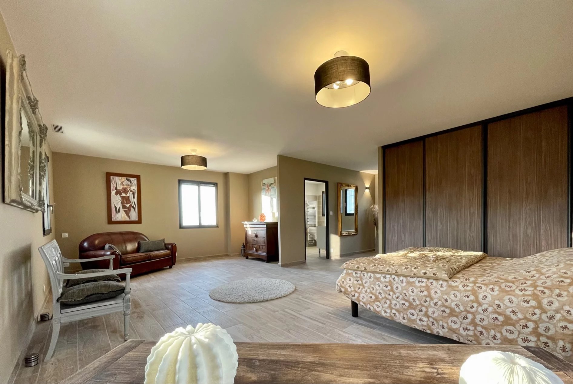Au calme, en position dominante et non isolé, 35 mn d'Avignon TGV, 5 mn à pieds du village de Saint Didier tous commerces à l'année, Villa de construction de 2023 tout confort d'environ 139 m² sur deux niveaux, Hall d'entrée, salon séjour cuisine équipée d'environ 58 m² ouvert au Sud et à l'Ouest par de grandes baies vitrées en vue dominante sur la colline et la vallée et les oliviers, chambre salle d'eau, wc indépendant avec lave mains, garage doublé, isolé et carrelé, buanderie. A l'étage, palier, dégagement, wc indépendant, salle de bain et douche à l'italienne, suite parentale d'environ 37 m² avec placard dressing (fenêtres et électricité prévu pour une chambre supplémentaire). Climatisation réversible gainée en plafonds, assainissement collectif, eau de ville, edf, alarme caméras, téléphonie fibre optique, carrelage grés, menuiseries aluminium double vitrage, volets roulants automatisés, volets bois pour les chambres, tonnelle au Sud, alarme caméras, piscine 4 x 8 m. sur 1,5 m. de hauteur avec plage immergée, plages piscine bois, local technique, l'ensemble sur un terrain clos et arboré d'environ 1100 m² en position dominante. Golf de Saumane à 15 mn, Fontaine de Vaucluse 15 mn, Gordes 20 mn, L'Isle-Sur-La-Sorgue 20 mn, Dentelles de Montmirail 30 mn, Aéroport Marignane-Marseille 90 mn.