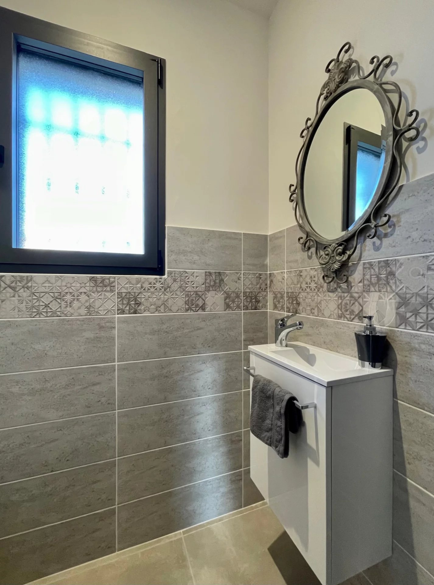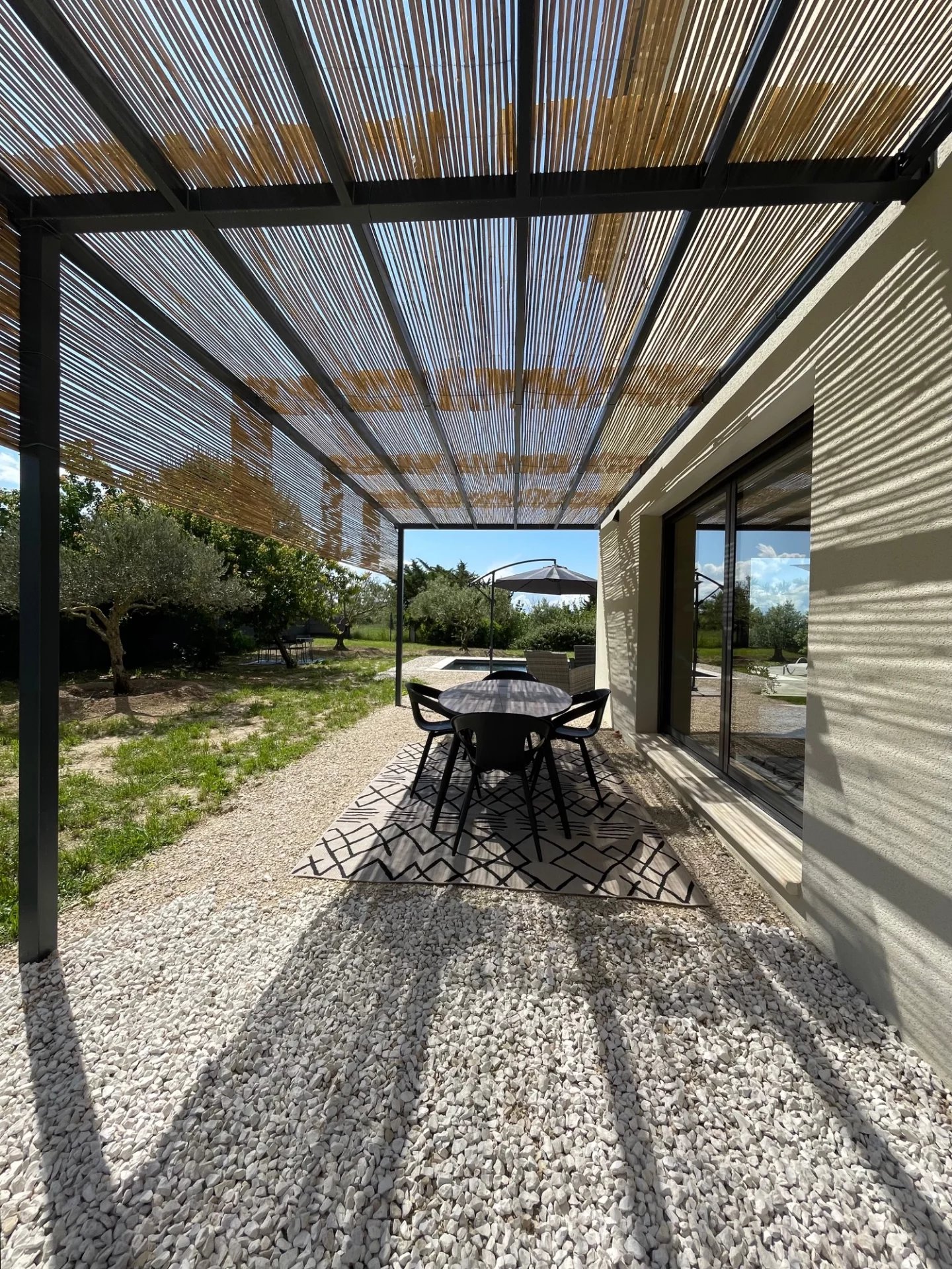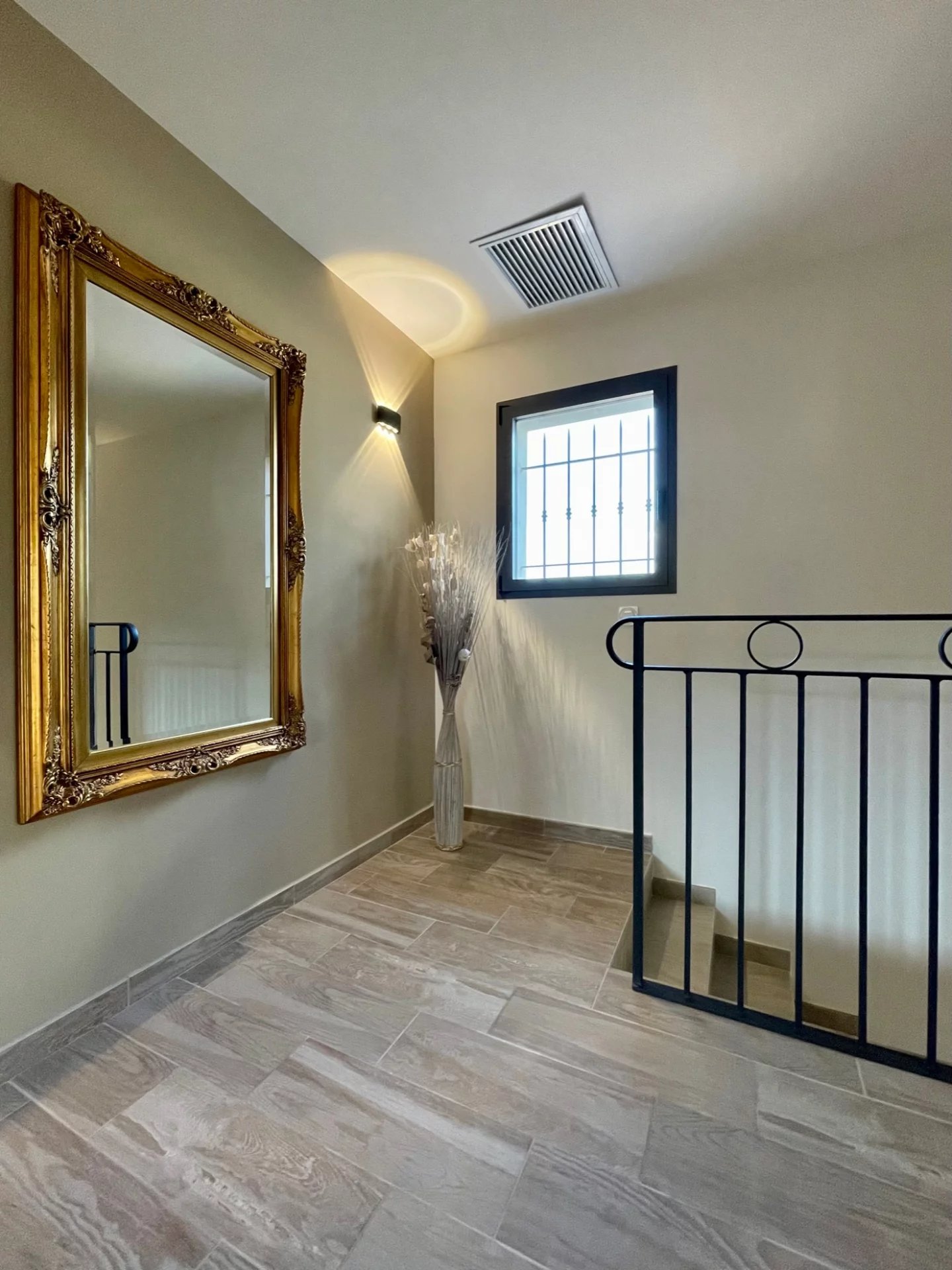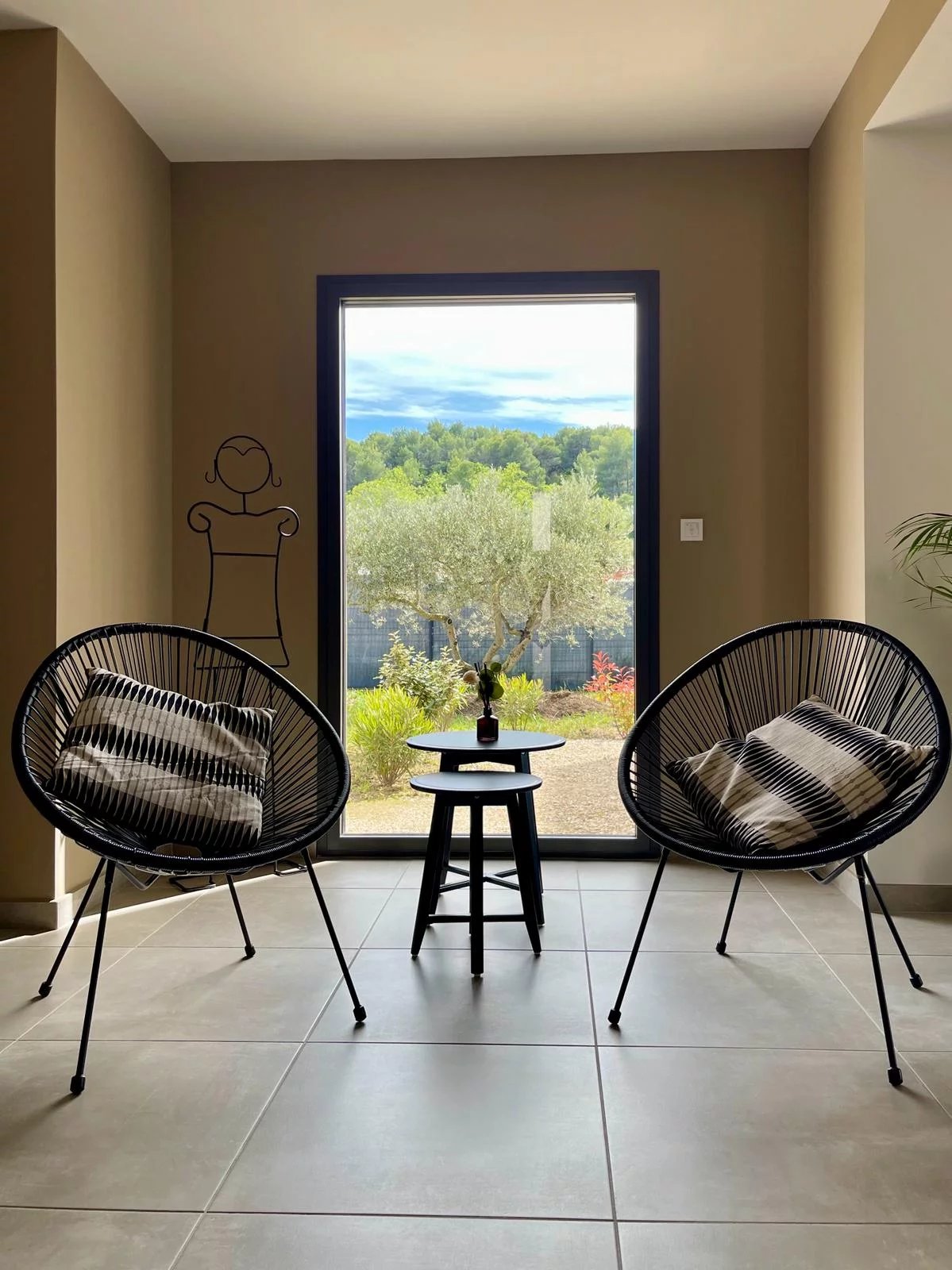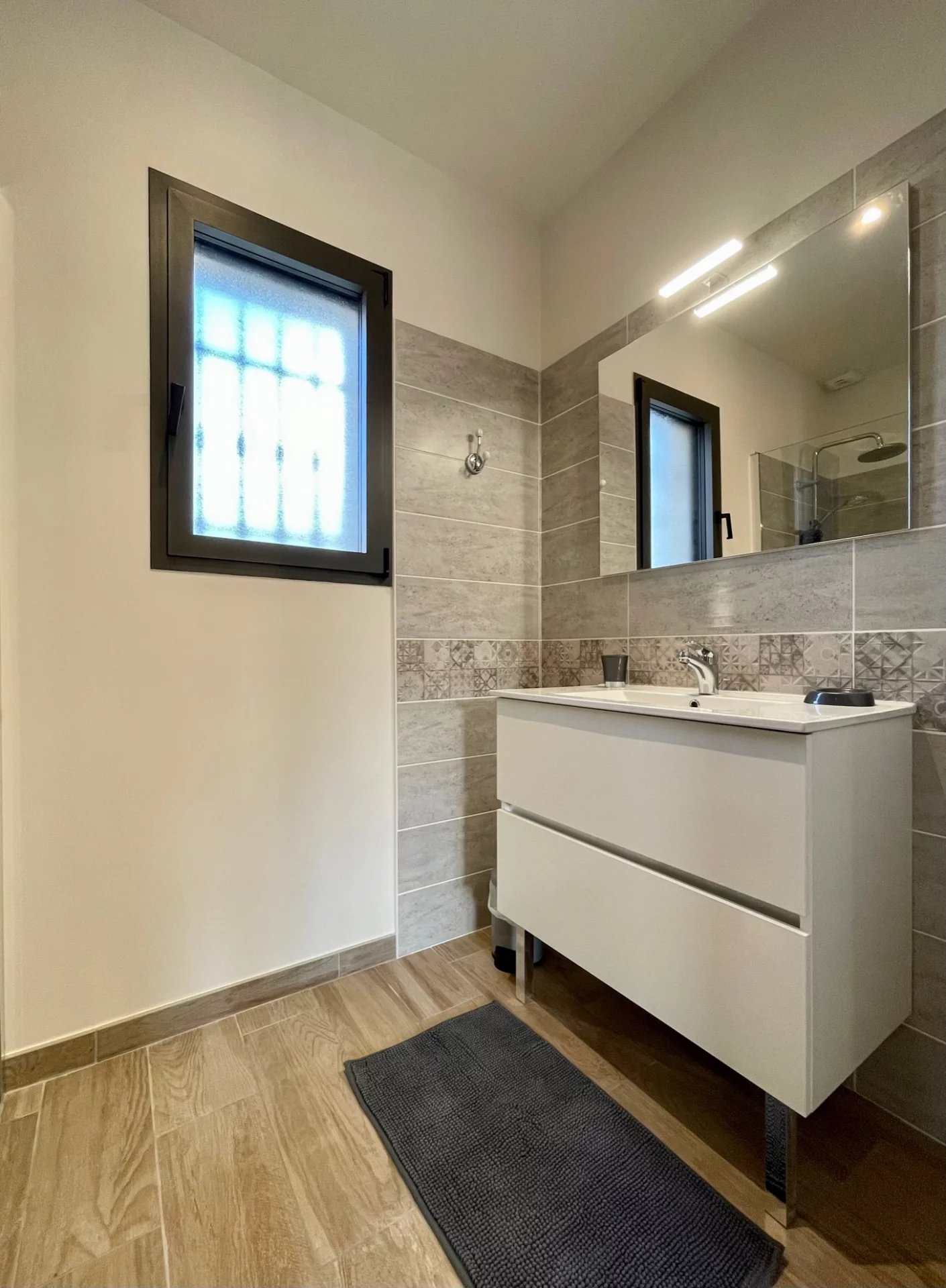 Au calme, en position dominante et non isolé, 35 mn d'Avignon TGV, 5 mn à pieds du village de Saint Didier tous commerces à l'année, Villa de construction de 2023 tout confort d'environ 139 m² sur deux niveaux, Hall d'entrée, salon séjour cuisine équipée d'environ 58 m² ouvert au Sud et à l'Ouest par de grandes baies vitrées en vue dominante sur la colline et la vallée et les oliviers, chambre salle d'eau, wc indépendant avec lave mains, garage doublé, isolé et carrelé, buanderie. A l'étage, palier, dégagement, wc indépendant, salle de bain et douche à l'italienne, suite parentale d'environ 37 m² avec placard dressing (fenêtres et électricité prévu pour une chambre supplémentaire). Climatisation réversible gainée en plafonds, assainissement collectif, eau de ville, edf, alarme caméras, téléphonie fibre optique, carrelage grés, menuiseries aluminium double vitrage, volets roulants automatisés, volets bois pour les chambres, tonnelle au Sud, alarme caméras, piscine 4 x 8 m. sur 1,5 m. de hauteur avec plage immergée, plages piscine bois, local technique, l'ensemble sur un terrain clos et arboré d'environ 1100 m² en position dominante. Golf de Saumane à 15 mn, Fontaine de Vaucluse 15 mn, Gordes 20 mn, L'Isle-Sur-La-Sorgue 20 mn, Dentelles de Montmirail 30 mn, Aéroport Marignane-Marseille 90 mn.