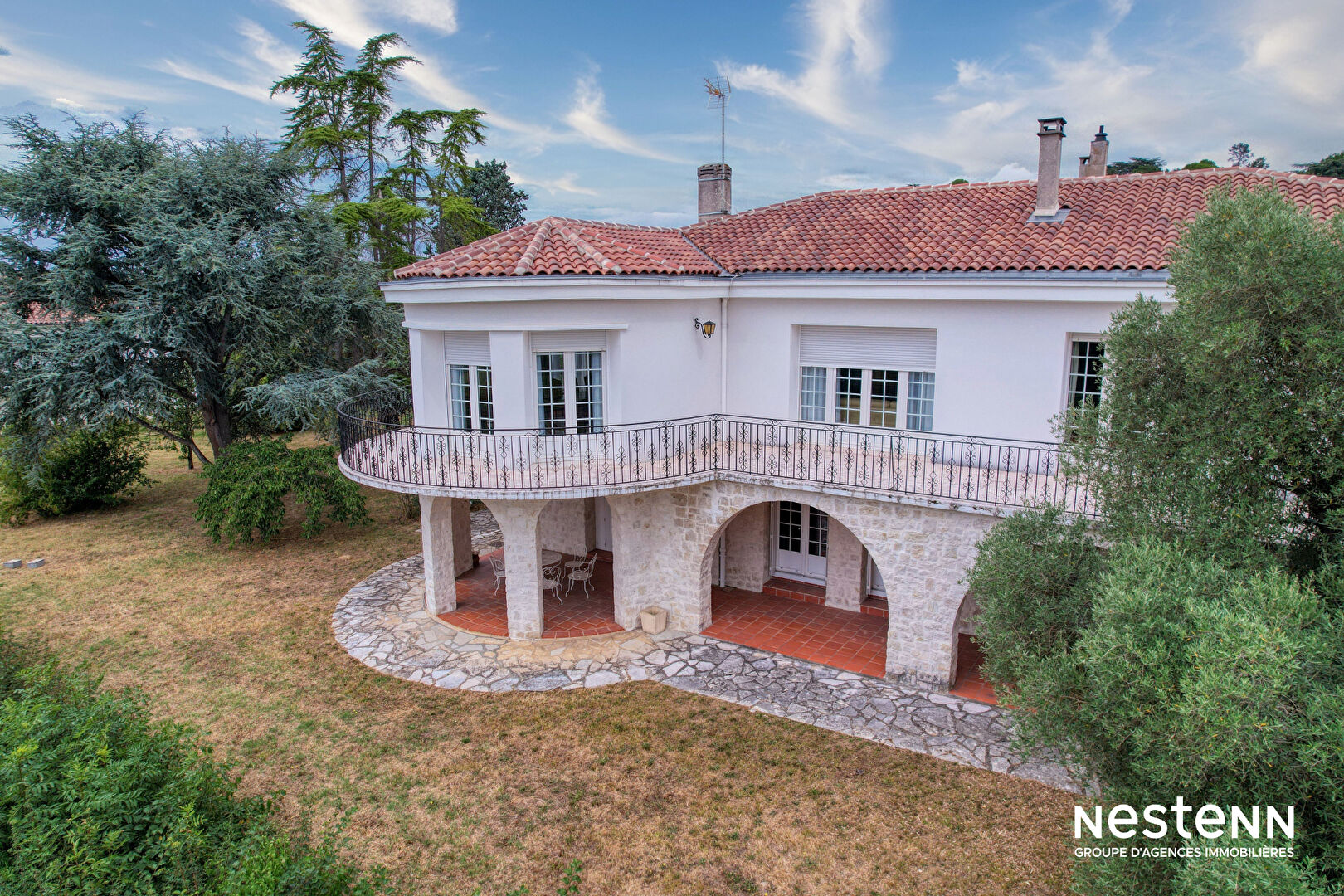 A Vendre Maison en pierre de 317 m² avec garage, rez-de-jardin, et parc arboré à Condom. A la Vente Maison de neuf pièces, cinq chambres dans quartier résidentiel proche des commodités. Depuis le vaste hall d'entrée, un escalier en marbre vous mène au palier du premier étage. Ce dernier mène à une pièce de vie lumineuse de 69 m² qui offre un coin salon avec insert et un coin salle à manger côté rotonde. Cette pièce ouvre sur le balcon avec vue dominante sur la ville. La cuisine