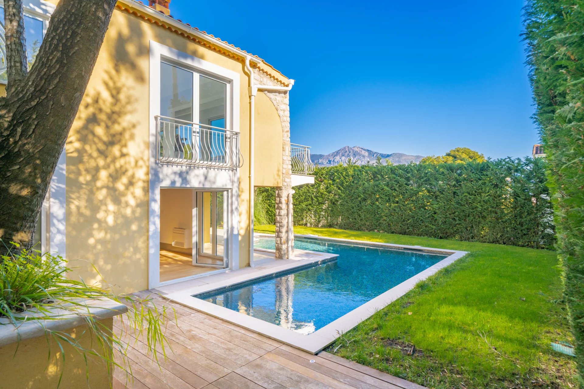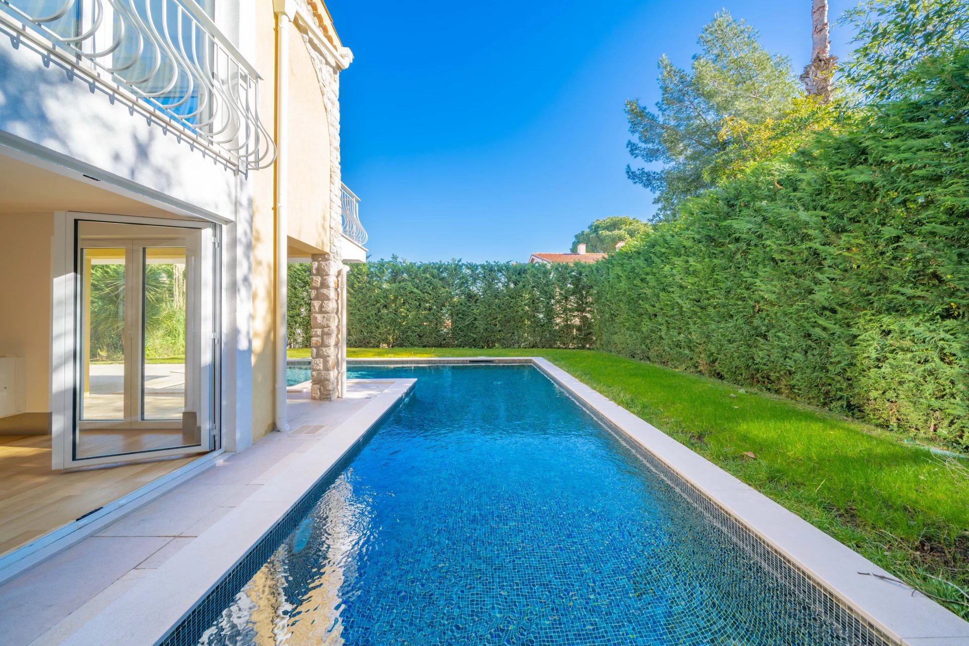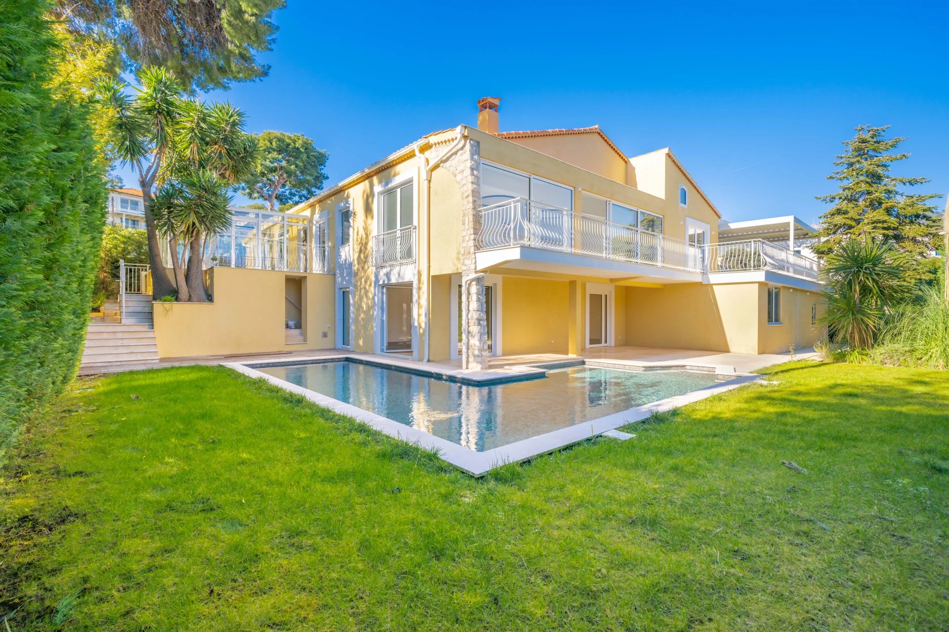 Située dans l’un des quartiers les plus recherchés et paisibles de Roquebrune-Cap-Martin, à seulement une minute du prestigieux Cap Martin et à 10 minutes de Monaco, cette somptueuse villa moderne propose un cadre de vie exceptionnel avec des prestations haut de gamme. Conçue pour allier confort et élégance, elle comprend 4 chambres, un bureau et une buanderie. Chaque chambre dispose de sa propre salle de bains privative, offrant ainsi des espaces intimes et raffinés. La villa se compose comme suit : • Rez-de-chaussée : Un hall d’entrée lumineux mène à un vaste salon baigné de lumière avec une magnifique vue sur la mer. La cuisine entièrement équipée s’ouvre sur une salle à manger élégante, située dans une véranda vitrée, avec une vue imprenable sur le jardin, la piscine et la mer. Ce niveau comprend également des toilettes invités et deux chambres spacieuses, chacune avec sa salle de bains privative. • Niveau jardin : Deux chambres supplémentaires avec salle de bains privative, chacune ayant un accès indépendant depuis le jardin, ainsi qu’un bureau et une buanderie. Entourée d’un splendide jardin paysager avec piscine, cette villa est le lieu idéal pour profiter pleinement du climat méditerranéen. Un garage double, ainsi que plusieurs places de stationnement, viennent compléter cette propriété d’exception.