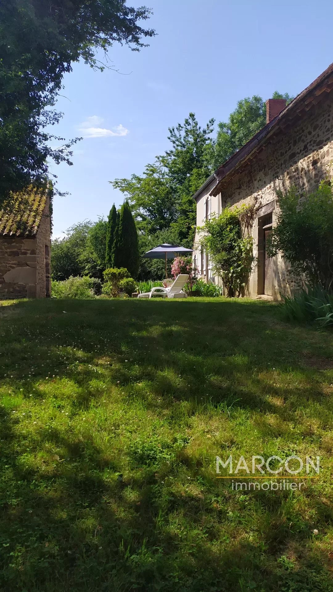 MARCON IMMOBILIER - CREUSE EN LIMOUSIN - REF 88782 - 5 MINUTES DE DUN LE PALESTEL - MARCON immobilier vous propose cette charmante propriété en pierres sur environ 1,4ha de terrain attenant, offrant une superbe vue sur la campagne environnante. Cette propriété se compose d'une maison et d'une grange attenante de 110m². La maison comprend un couloir, une pièce de vie, une cuisine, débarras et toilettes. Au 1er étage se trouvent deux chambres et une salle de bains. Au 2ème étage une grande chambre. Venez découvrir ce petit coin de paradis ! Prix : 145 000 € (honoraires charge vendeur) MARCON Immobilier - LA SOUTERRAINE -05-55-63-09-92 Réseau de 3 agences : Aubusson -Guéret- La Souterraine Les informations sur les risques auxquels ce bien est exposé sont disponibles sur le site Géorisques : georisques.gouv.fr