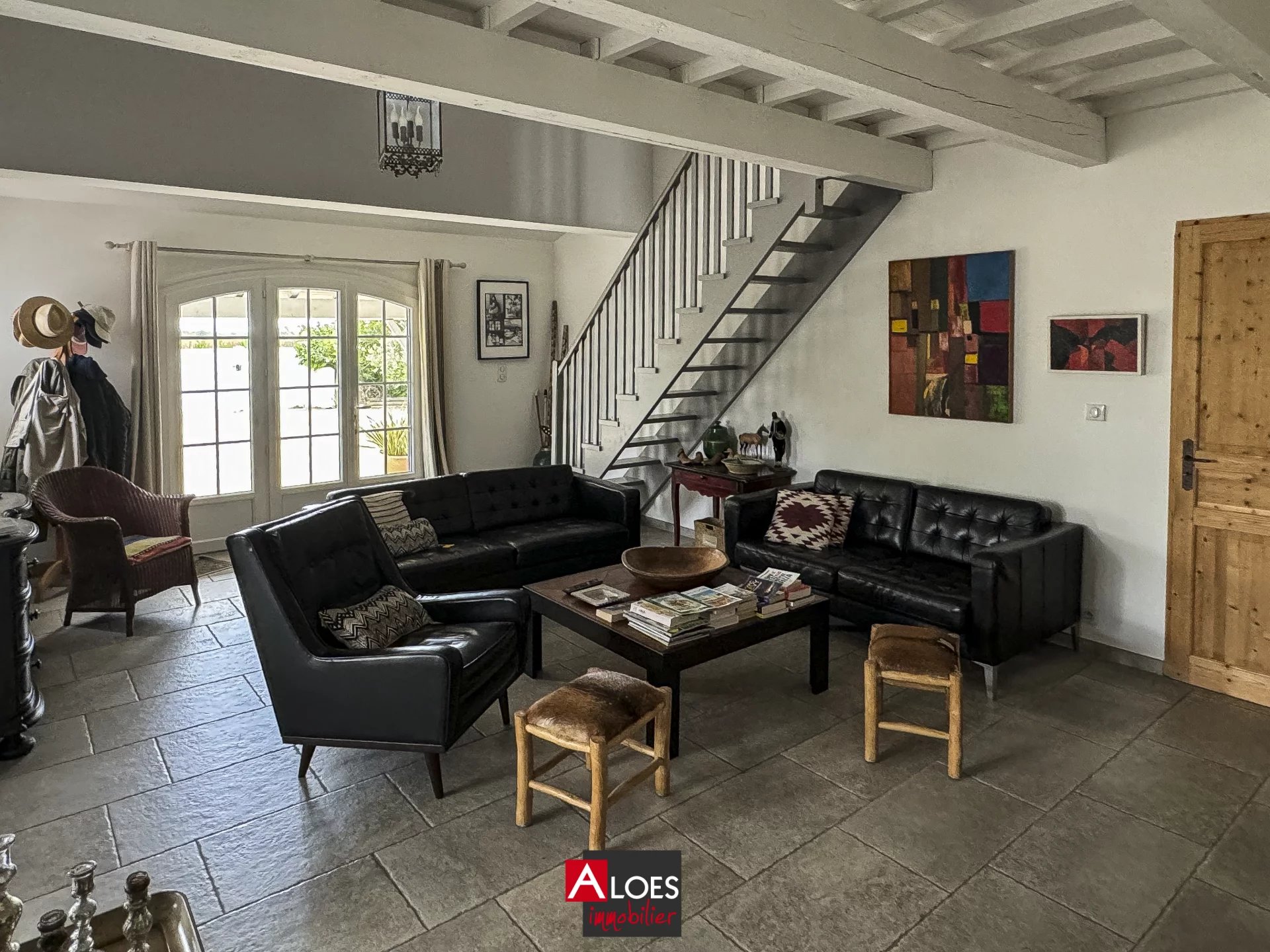 Découvrez cette magnifique maison de 170 m² environ habitables sur un terrain de 795 m² environ, située entre Aigues-Mortes et Saintes-Maries-de-la-Mer. Idéale pour les amoureux de la nature et de la tranquillité, cette propriété offre des espaces extérieurs magnifiquement aménagés et un intérieur confortable, fonctionnel et lumineux. La maison dispose en rez-de-chaussée d'un vaste salon chaleureux avec son poêle, d'une salle à manger, d'une cuisine aménagée et équipée et d'une grande chambre avec terrasse, d'une salle d'eau avec WC, d'une buanderie, d'un cellier et d'un WC séparé. L'étage est idéalement composé d'une suite parentale avec salle d'eau, dressing et WC et d'une deuxième chambre également avec une salle d'eau et WC. Cette dernière chambre dispose en outre d'une terrasse avec un accès direct au patio du rez-de-chaussée. Profitez d'un vaste extérieur avec cour, jardin paysagé, patio et cuisine d'été, parfaits pour les repas en plein air. Les terrasses vous permettront de bénéficier du soleil toute la journée. Un abri voiture est disponible, et le jardin est piscinable selon vos envies. Idéalement située cette maison vous offre en outre un accès facile aux plages de la Méditerranée et à diverses activités telles que les promenades à cheval, les visites de manades. Ne manquez pas cette opportunité unique de vivre dans une maison de charme et parfaitement rénovée.