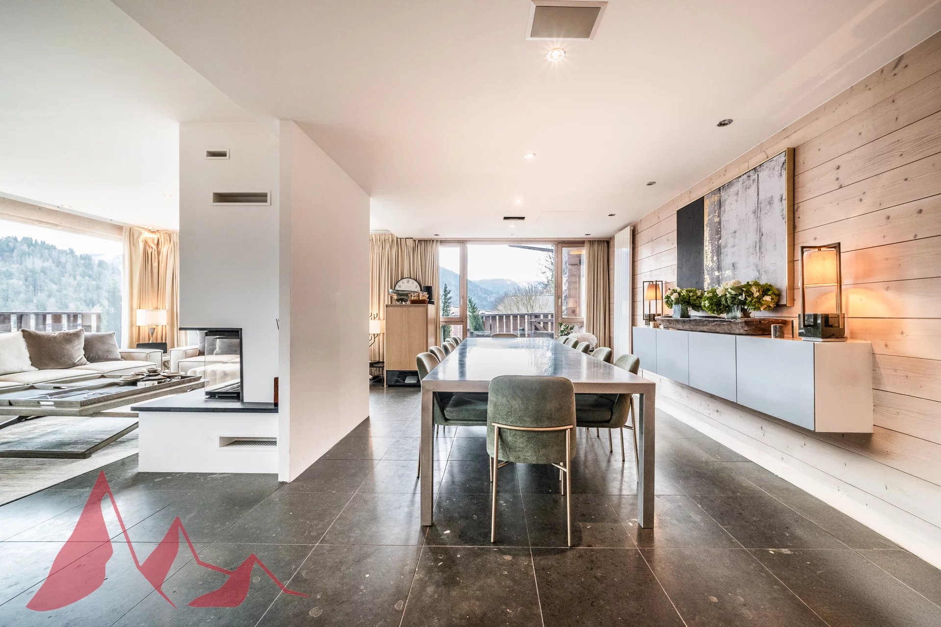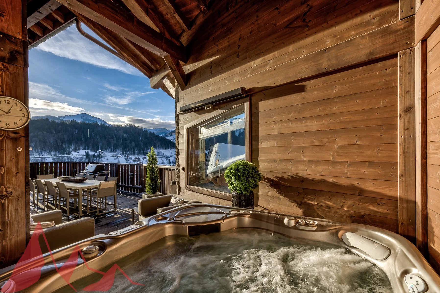 Magnifique chalet d'architecte de 7 chambres avec des vues panoramiques à Morzine Découvrez ce magnifique chalet d'architecte à Morzine, niché sur un domaine de plus de 2 463 m2, dans un environnement exceptionnel, calme et privatif. Le chalet "Les Copains" est l'un des plus beaux chalets de Morzine, irréprochablement conçu et idéalement situé dans le quartier très recherché de L’Élé, entre Montriond et Morzine. Construit à l'origine en 2004, ce chalet a été récemment rénové avec des matériaux nobles et raffinés afin d'offrir toutes les caractéristiques que l'on peut attendre d'un chalet de luxe. Sa position élevée lui confère de superbes vues sur le village et les pistes du Pléney. Son orientation sud-ouest lui garantit une excellent ensoleillement et de magnifiques couchers de soleil visibles depuis sa terrasse et sa superbe pièce de vie. Ce chalet d'environ 528 m2 de surface totale est établi sur 4 niveaux et comprends : Il y a sept chambres au total, six chambres doubles et une actuellement aménagée en chambre pour enfants avec lits superposés. La grande chambre principale avec salle de bains est idéalement située au même niveau que la salle de séjour et dispose d’un accès direct à un coin salon extérieur. Trois des chambres avec salle de bains au deuxième étage ont un accès direct à un balcon commun avec vue sur les montagnes. Le premier étage du chalet propose un vaste espace ouvert (salon, salle à manger et cuisine) doté d’une superbe cheminée centrale et d’un accès à une grande terrasse orientée au sud. Ce chalet dispose d’un spa et d’un espace de bien être au rez-de-chaussée, notamment une piscine intérieure chauffée avec terrasse de relaxation, un hammam, une salle de massage et un sauna. Un espace de fitness bien équipé se trouve au niveau de la mezzanine du spa. Un jacuzzi extérieur est également discrètement caché sur la terrasse du premier étage du chalet. Le chalet dispose d’un grand nombre de rangements, dont un local à skis et à chaussures et un double garage intégré. Il y a un parking extérieur supplémentaire et un abri pour deux véhicules. Ce chalet vous offre un cadre privilégié et calme à proximité de Morzine, avec une vue imprenable sur les sommets alentours. Profitez d’un chalet unique avec de nombreuses terrasses pour apprécier pleinement les journées ensoleillées. Pour plus d'informations, contacter nous à Morzine Immo. Les informations sur les risques auxquels ce bien est exposé sont disponibles sur le site Géorisques http://www.georisques.gouv.fr
