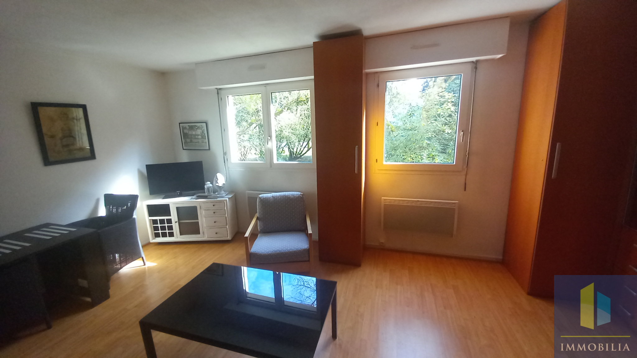 Une entrée avec placard, un grand séjour meublé avevc un ensemble lit placard escamotable et tout le mobilier de confort. une cuisine séparée et équipée - une salle de bains. L'appartement est habitable ou louable immédiatement sans travaux .