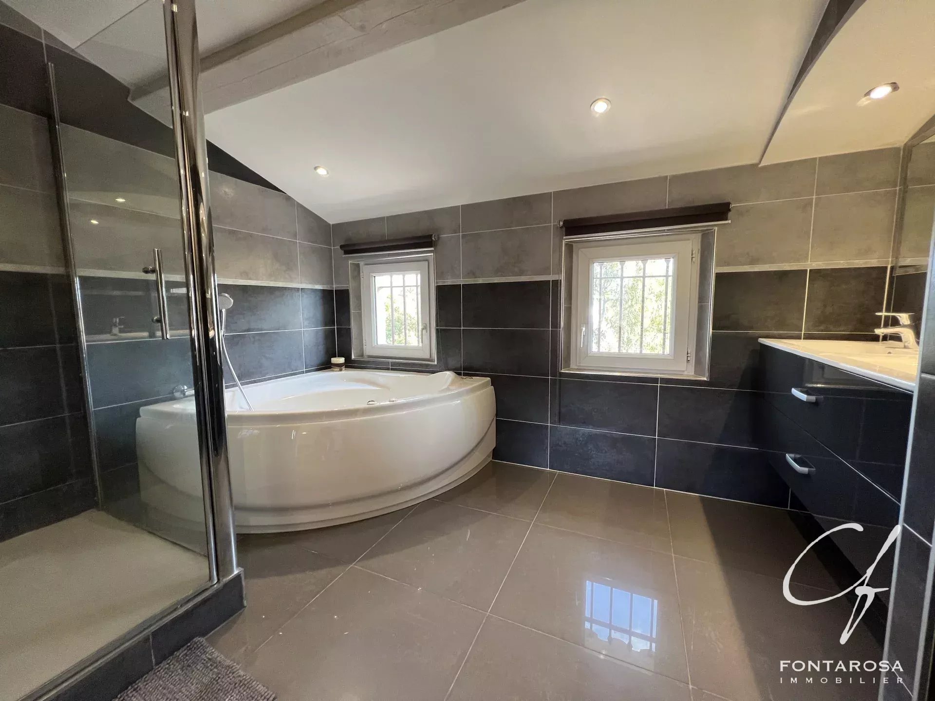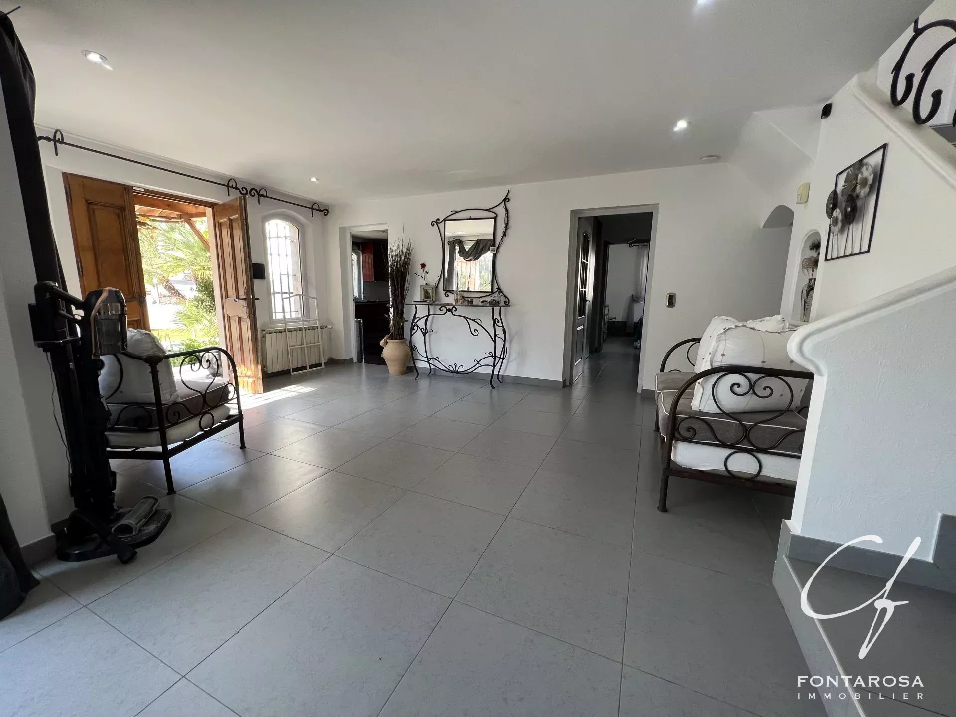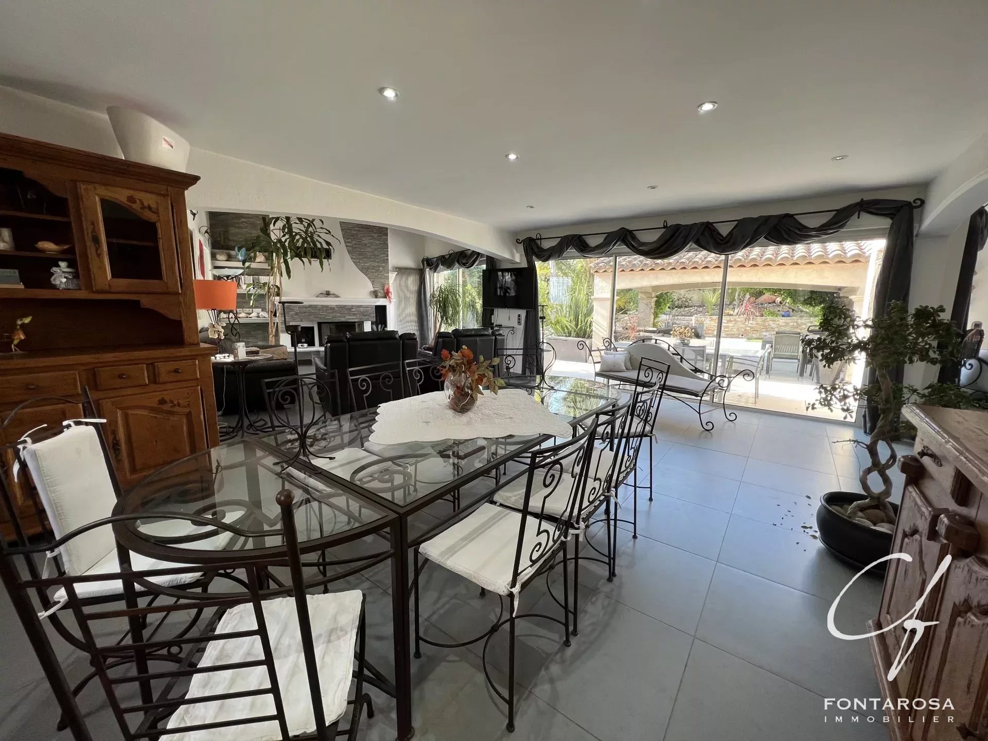 SAINT AYGULF, Venez découvrir cette magnifique villa avec piscine dans ce quartier résidentiel de Fréjus. Elle se trouve à proximité du centre, de la plage et des écoles. Elle se compose de plain-pied: d'un hall d'entrée, d'un salon /salle à manger avec cheminée, d'une cuisine séparée équipée, de deux chambres, d'une salle d'eau et WC. A l'étage nous retrouvons une suite parentale avec salle de bain attenante, une chambre et un solarium. Au sous-sol se trouve une dépendance, un grand garage avec possibilité de stationner plusieurs voitures. Les informations sur les risques auxquels ce bien est exposé sont disponibles sur le site Géorisques : georisques.gouv.fr