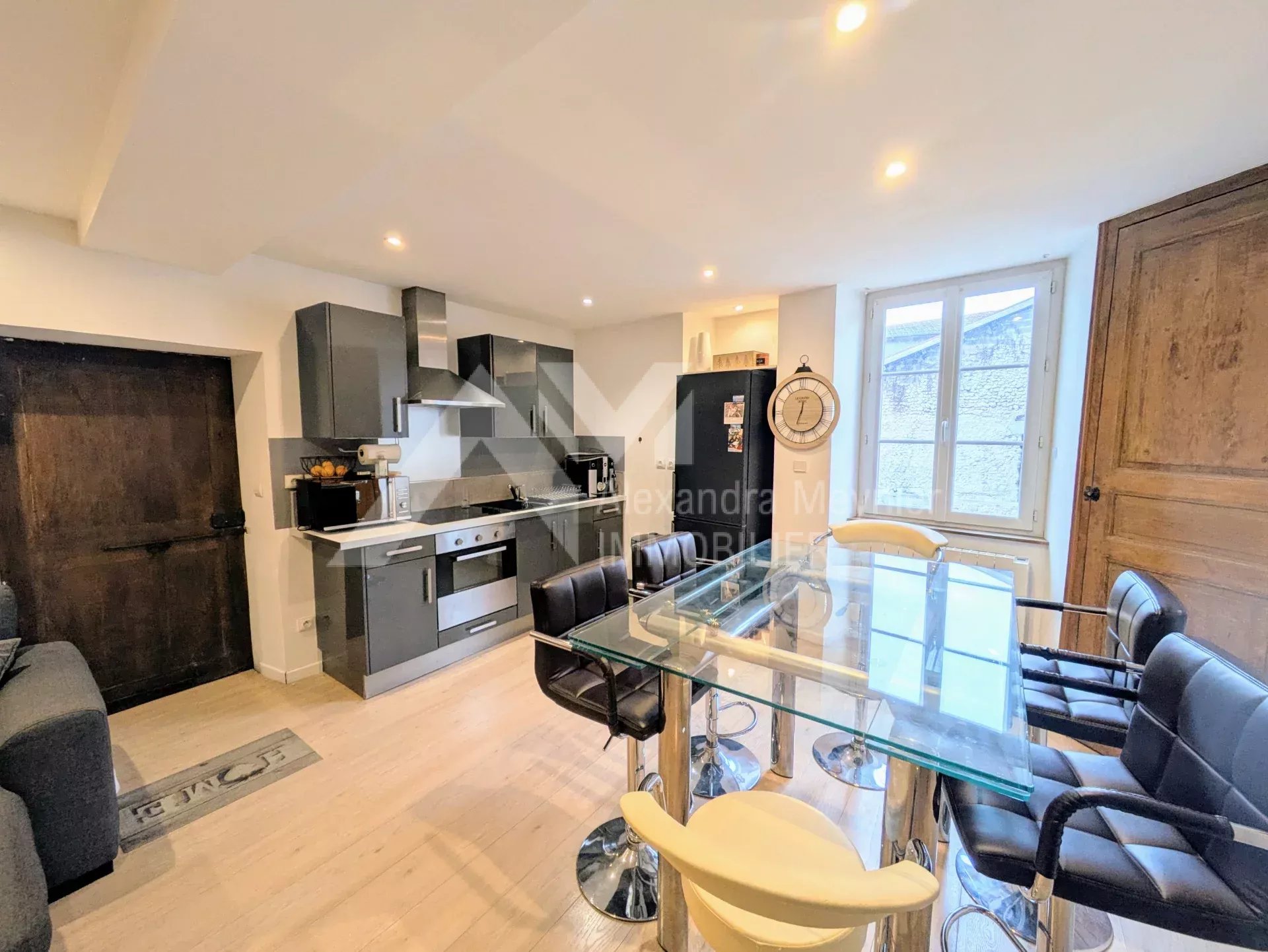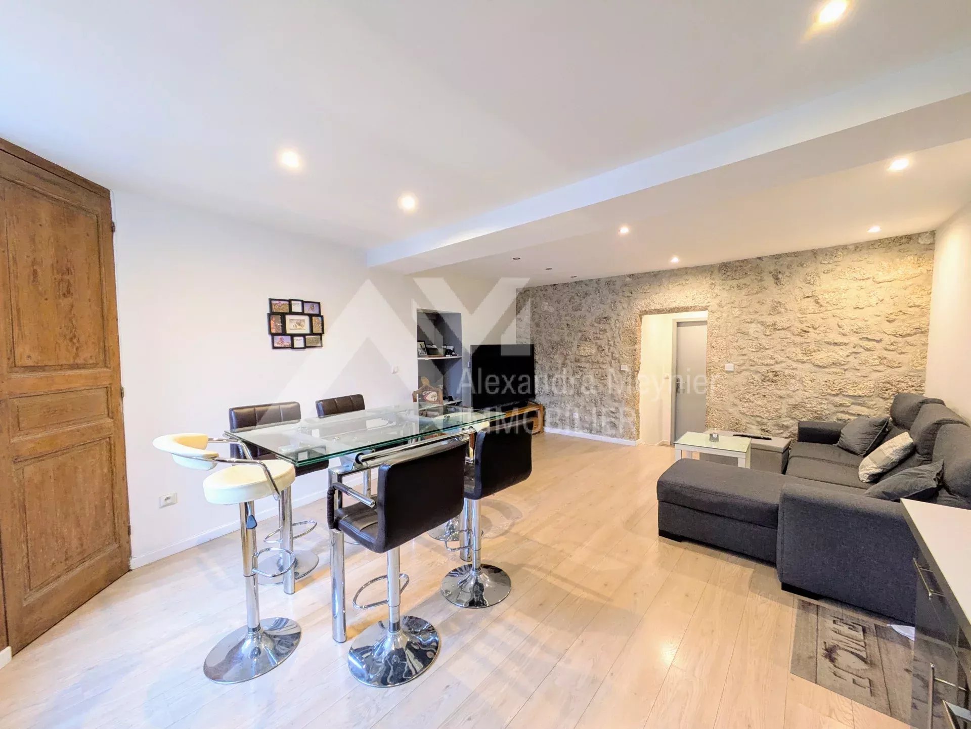 Exclusivité A.M IMMOBILIER Au cœur du village et au calme, appartement T2 entièrement refait, alliant modernité et charme de l'ancien, d'une superficie habitable d'environ 50m². Situé au premier étage d'une petite copropriété, il se compose de la façon suivante: Une cuisine équipée ouverte sur séjour lumineux de 25m², un dégagement desservant une chambre avec placard, une salle d'eau et toilettes séparés. Une cave d'environ 5m². Nombreuses places de parking à proximité. Nombre de lots dans la copropriété: 6 lots. Aucune procédure en cours. Aucune charge de copropriété.
