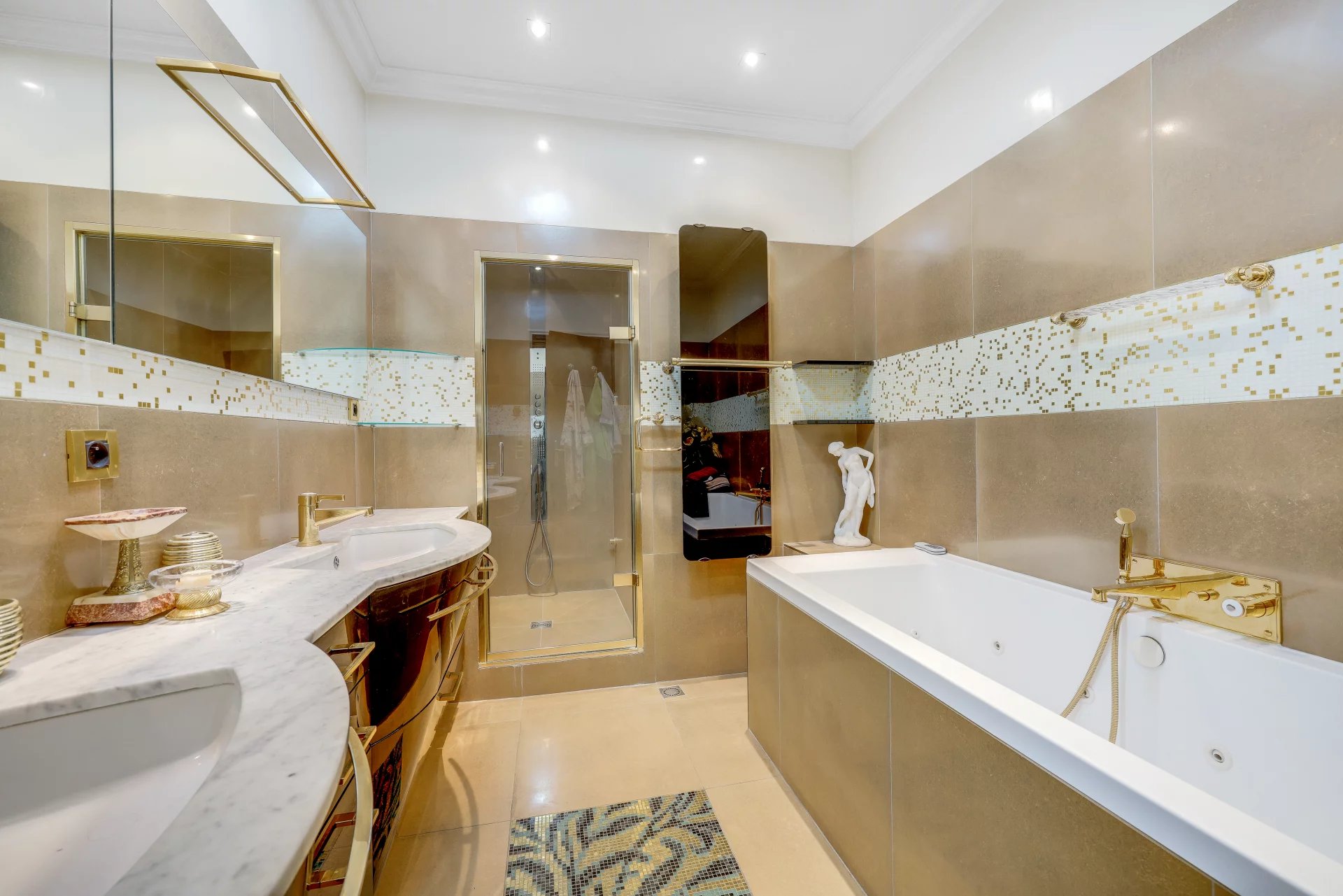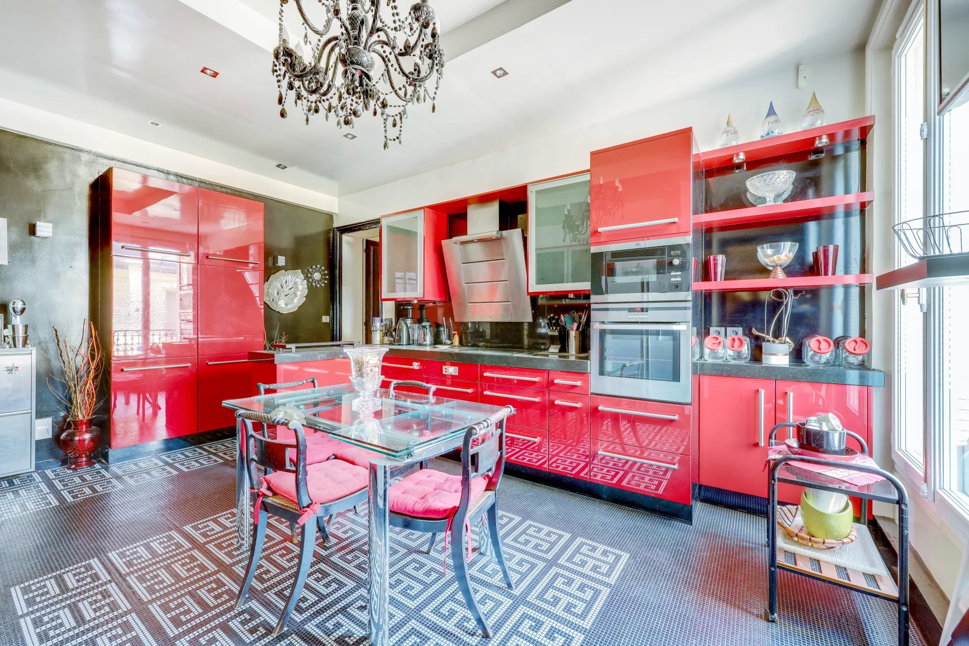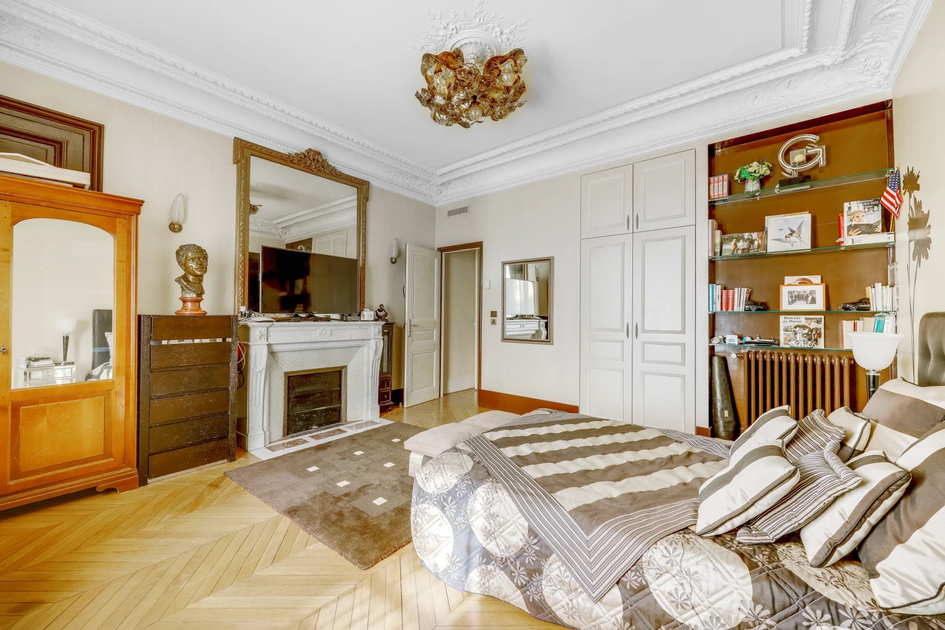 Situé dans un prestigieux immeuble haussmannien à proximité de l'avenue des Champs-Élysées, cet élégant appartement de 5 pièces offre une superficie de 232 m² (loi Carrez). Il se compose d’une galerie d'entrée, d’un double séjour lumineux avec cheminée, d'une grande cuisine dînatoire entièrement équipée, d’une suite parentale avec cheminée et vue sur un jardin arboré, ainsi que de trois chambres supplémentaires. (possibilités 4 chambres). L'appartement bénéficie de nombreux équipements de luxe, tels que des sols en carrelage Bizzaza, un parquet en point de Hongrie, et des vitraux restaurés. Deux salles de bains (dont une avec baignoire balnéo et douche hammam), des toilettes séparées et de nombreux rangements ajoutent au confort de ce bien. Le bien est situé dans une copropriété de 9 lots principaux, avec une atmosphère luxueuse renforcée par les parties communes en cuir de Cordoue. Des meubles peuvent être inclus, tels qu’une table Lalique et des luminaires en cristal italien. Une chambre de service ainsi que deux places de parking sont également également proposée en supplément du prix. Pour tous renseignements, appeler L'AGENCE DES ARTS ET MÉTIERS au 01 44 61 04 04.