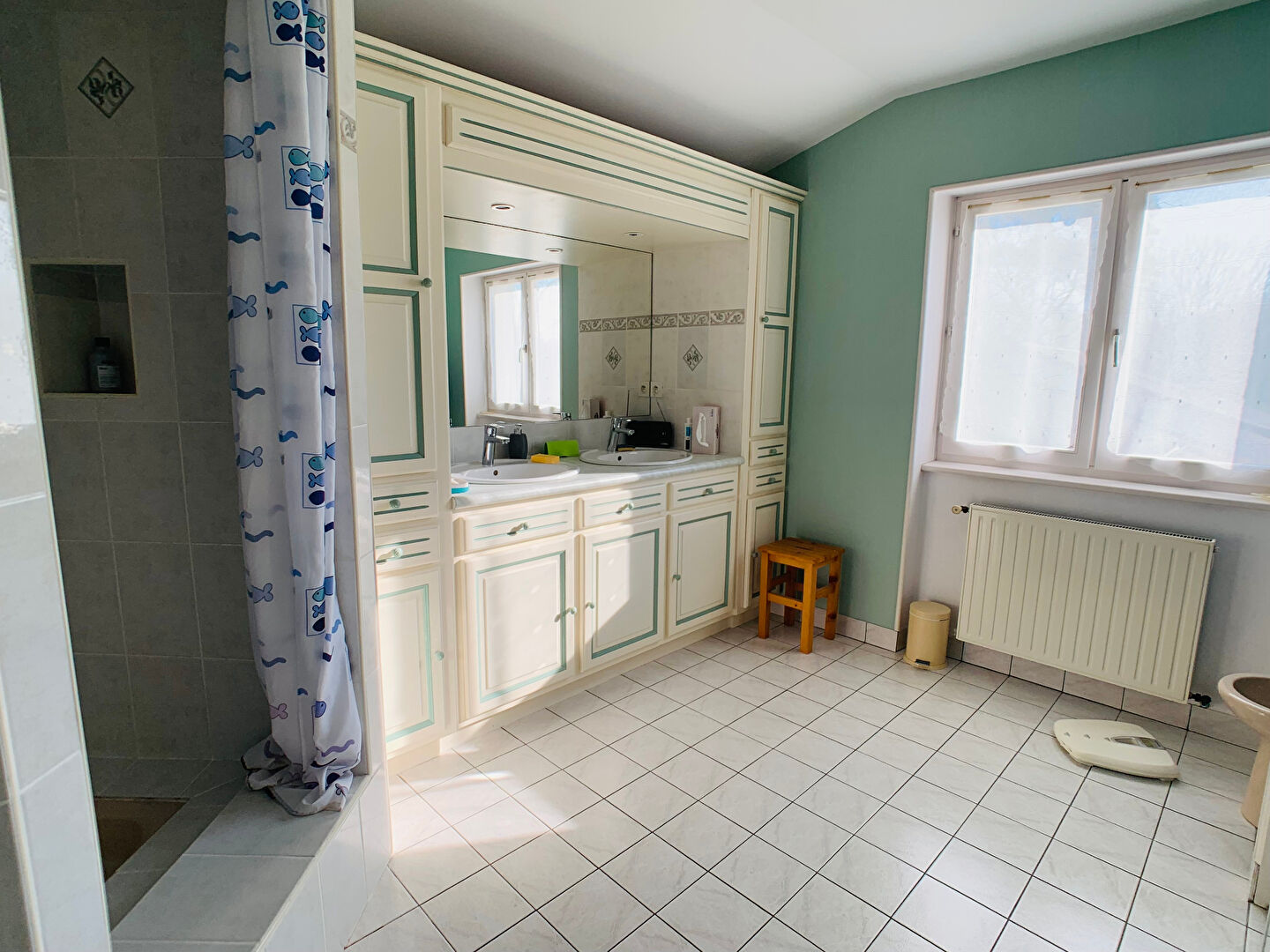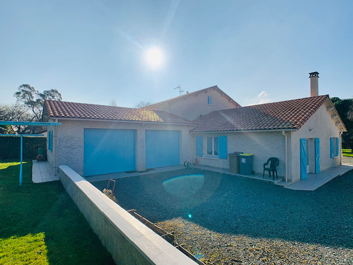 Maison spacieuse , lumineuse et sans vis-à-vis sur un terrain clos et arboré de 1500 m² environ. Elle offre : Entrée sur salon/séjour cathédrale lumineux avec cheminée, vaste cuisine aménagée et équipée, 3 chambres avec placards, bureau, buanderie, salle d'eau et WC. A l'étage : Chambre, dressing, salle de bains complète et WC. Grand garage double carrelé et isolé de 50 m². Terrain piscinable. (4.14 % honoraires TTC à la charge de l'acquéreur.)