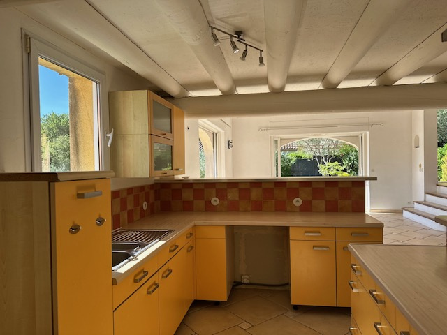 La disposition de la maison sur le terrain vous permet de profiter d'un beau jardin avec son oliveraie, de la piscine en contrebas avec une grande plage et d'un espace parking avec garage.