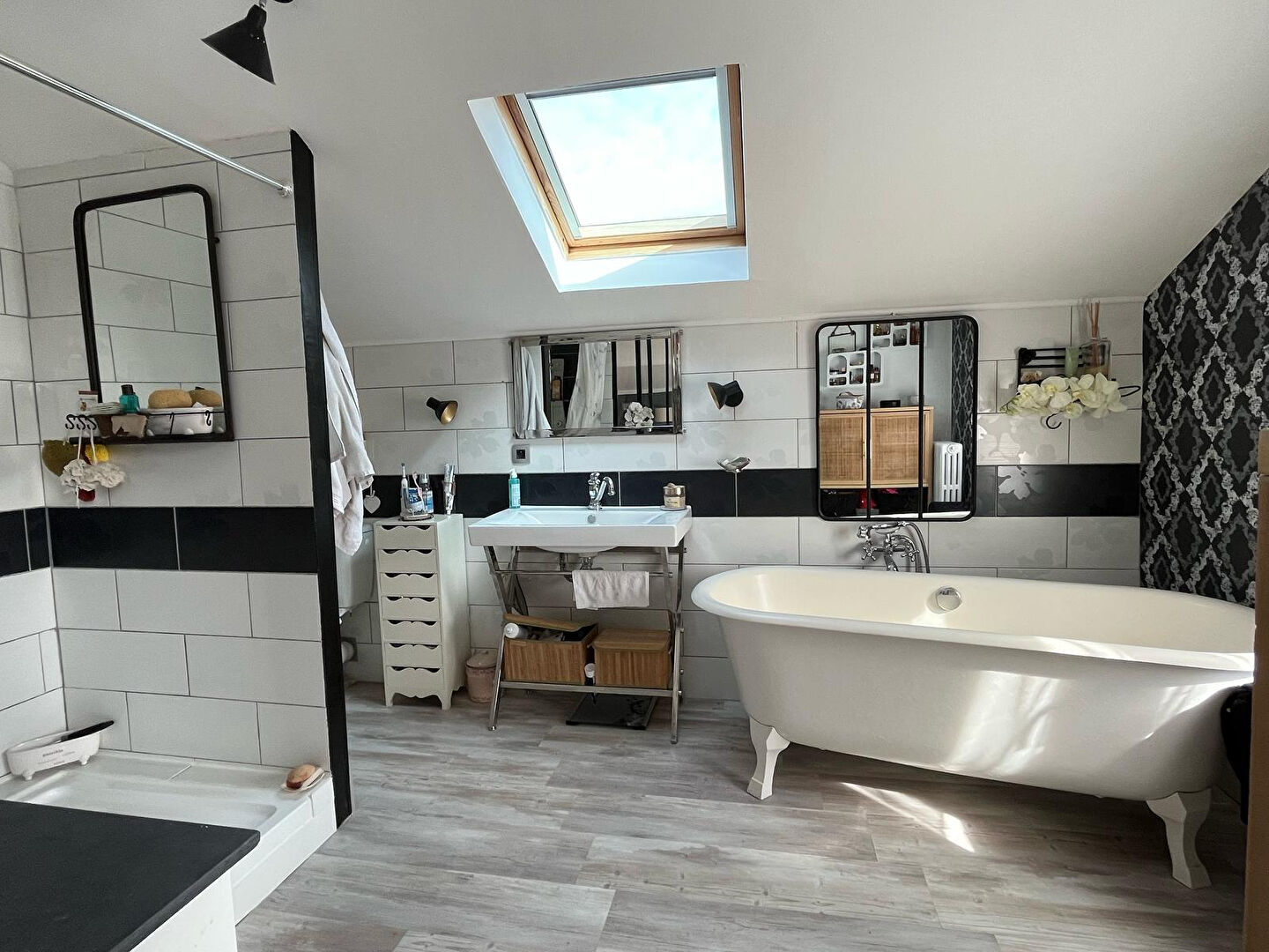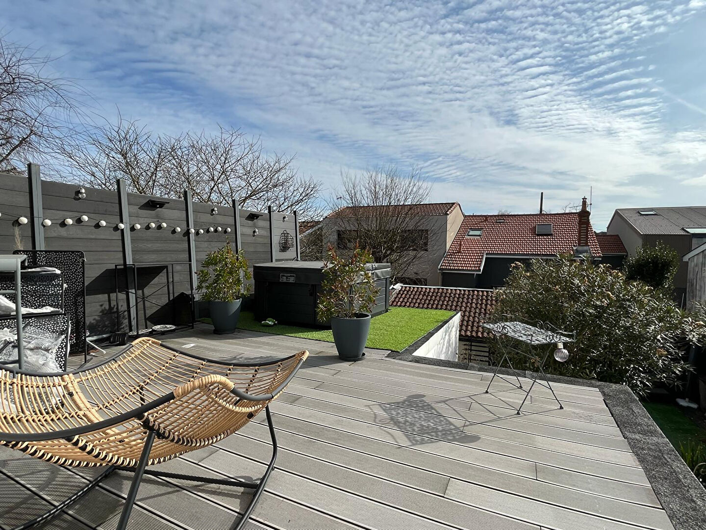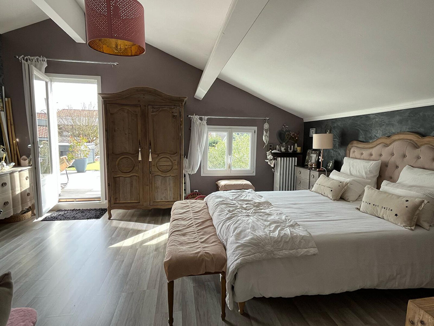 Maison avec jardin dans une rue très prisée du Bouscat, appréciée pour son calme, et son environnement, à proximité du centre du Bouscat et du Parc Bordelais (900m à pied), de l'école Jeanne d'Arc et du Tram D (600m) arrêts "Mairie du Bouscat" ou "Calypso". Ce bien se compose en rez de chaussée d'une entrée, wc, salon- séjour, cuisine semi ouverte équipée, une chambre, une salle d'eau, un cellier buanderie et un garage à cycles, à l'étage, un bureau, une chambre de 18m² et une suite parentale de 30 m² avec salle de bains privative profitant d'une sortie sur une terrasse tropézienne exposée sud avec spa. Un jardin d'accueil sur l'avant, un garage pour deux roues, un jardin sur l'arrière de 90m² aménagé en terrasse de réception et espace vert exposé sud, ainsi qu'une dépendance de 10m² en fond de parcelle complètent ce bien rare sur le marché. (2.95 % honoraires TTC à la charge de l'acquéreur.)