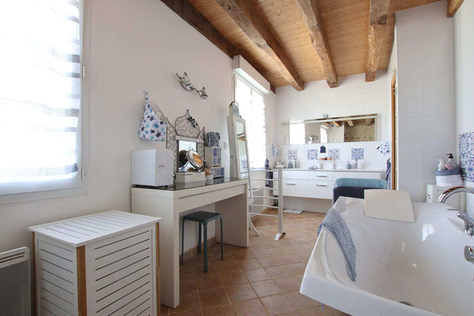 Réf. 2498B : A 10 minutes à peine de St Maixent-l'Ecole et de La Crèche, venez découvrir cette superbe maison entièrement rénovée de 350 m² habitables. Une propriété qui vous séduira par la qualité de ses prestations et ses beaux volumes. La Maison comprend une grande entrée pouvant faire un beau bureau, un salon-séjour de 72 m² avec plafond cathédrale au niveau du salon, une cuisine aménagée et équipée récente, une chambre, un WC indépendant avec lave-mains, une salle d'eau avec WC et une immense suite parentale avec salle de bains et dressing en rez-de-chaussée, puis une grande mezzanine (pour un beau bureau, une bibliothèque, un salon...) qui conduit aux 3 autres chambres et à la salle de bains avec WC à l'étage. Le jardin est clos de murs, avec une grande terrasse en béton désactivé, un portail électrique et un visiophone. La parcelle fait un peu plus de 1000 m². A l'extérieur, vous trouverez des dépendances en excellent état : un local carrelé d'environ 12 m² attenant à la maison, puis une dépendance de 3 pièces, un grand préau avec 2 pièces fermées attenantes et un local poubelles. Les toitures ont toutes été refaites, ouvertures en double vitrage bois et PVC, Cheminée Polyflam dans la pièce de vie , assainissement aux normes. L'arrêt du bus scolaire est à 200 mètres, l'école à 3 mn en voiture et la zone commerciale d'Azay-le-Brûlé à 5mn. Les gares TGV de Niort et St Maixent sont respectivement à 25mn et 12mn. N'hésitez pas à contacter l'agence pour tout renseignement complémentaire.