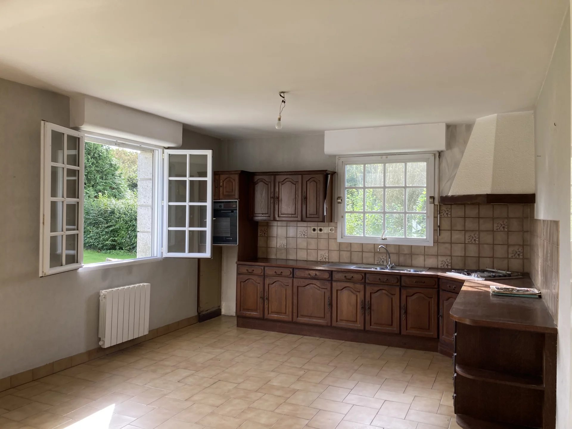 A saisir grande maison lumineuse de 134m² en campagne entre Landivisiau, Lampaul Guimiliau et St Sauveur. Le charme et la solidité de cette habitation néo bretonne représente un investissement sûr, avec potentiel. On y trouve une grande pièce de vie avec la cuisine aménagée, une cheminée en angle, 2 chambres, un bureau et un WC. A l'étage, il y a 3 chambres, une SDB à rafraîchir, un futur dressing. En bordure de jardin est un penty avec un lavoir à restaurer, puis un hangar en arrière de la maison, le tout sur un terrain de 3500m² environ. Au Sous-sol une superficie importante avec garage. A découvrir au plus vite! Merci de contacter Michaëla SEGUIN E.I. au 06.27.15.89.63