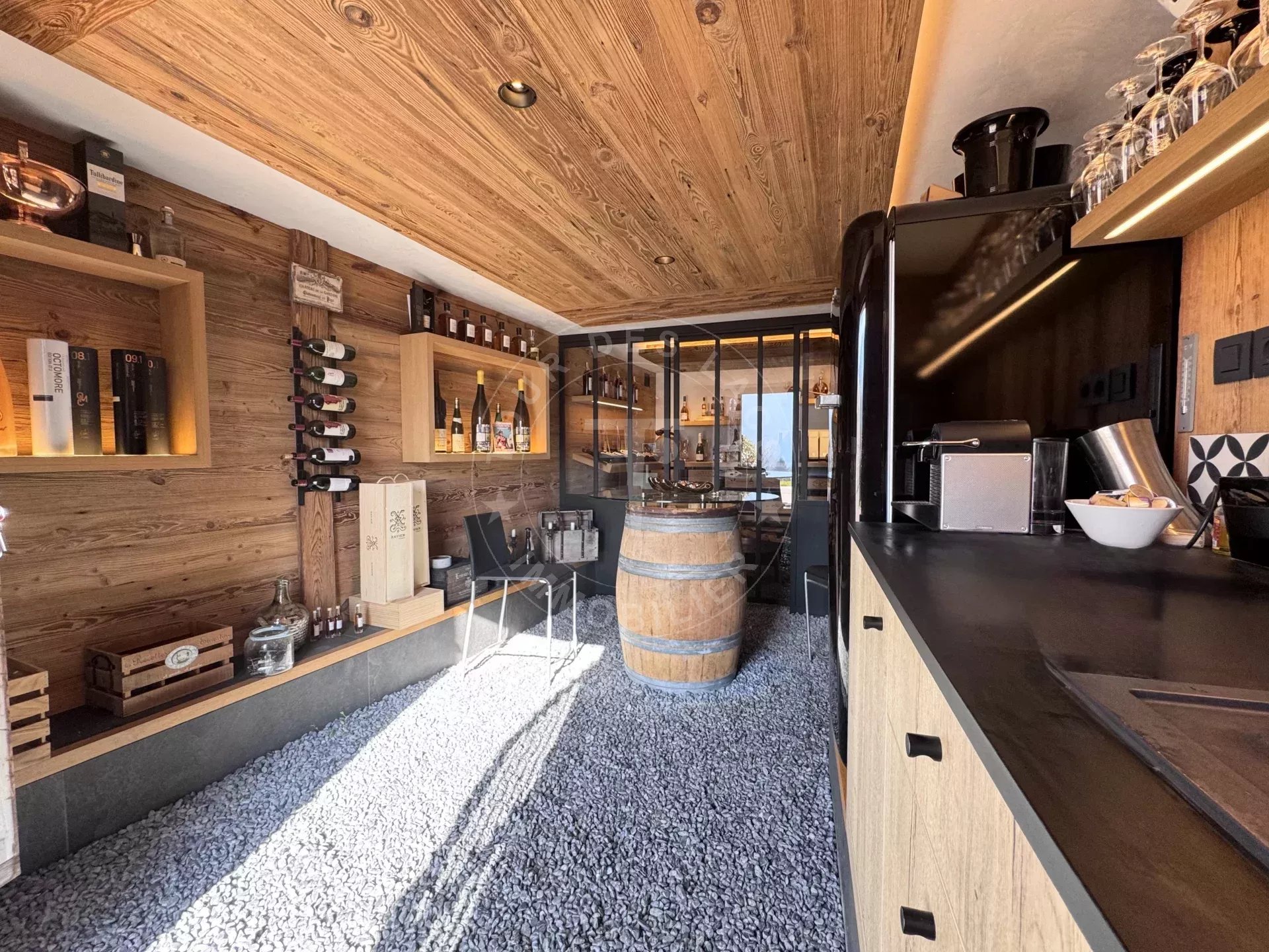Rez-de-jardin : Une entrée, une chambre-bureau, une pièce salle de douche / buanderie, une cave à vin (carnotzet) équipée d’une cuisine avec accès à une très belle terrasse, un local technique, un WC.