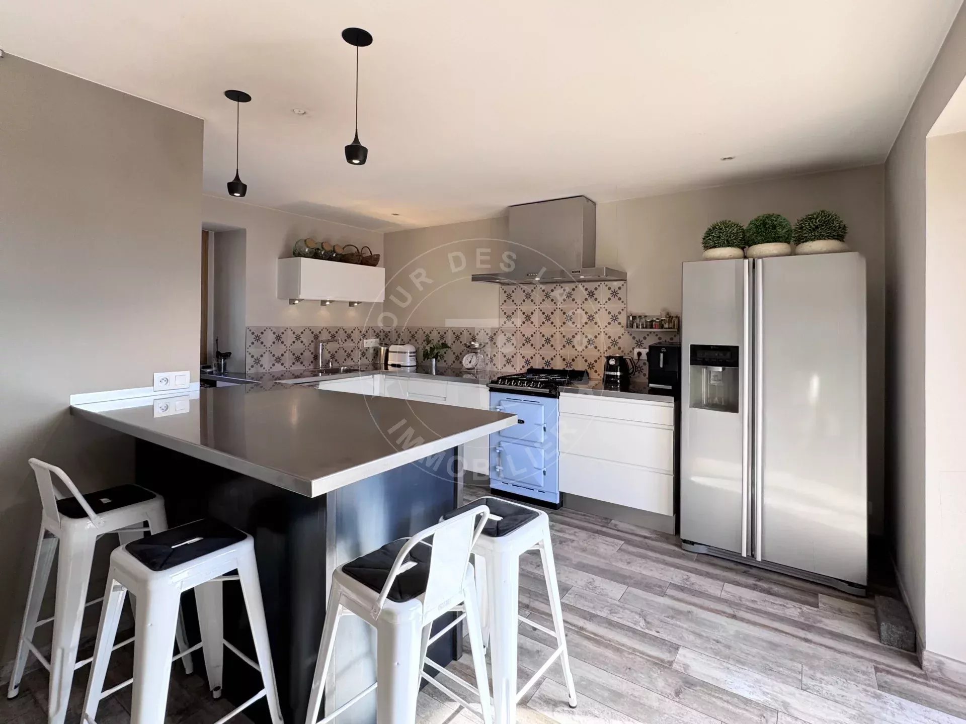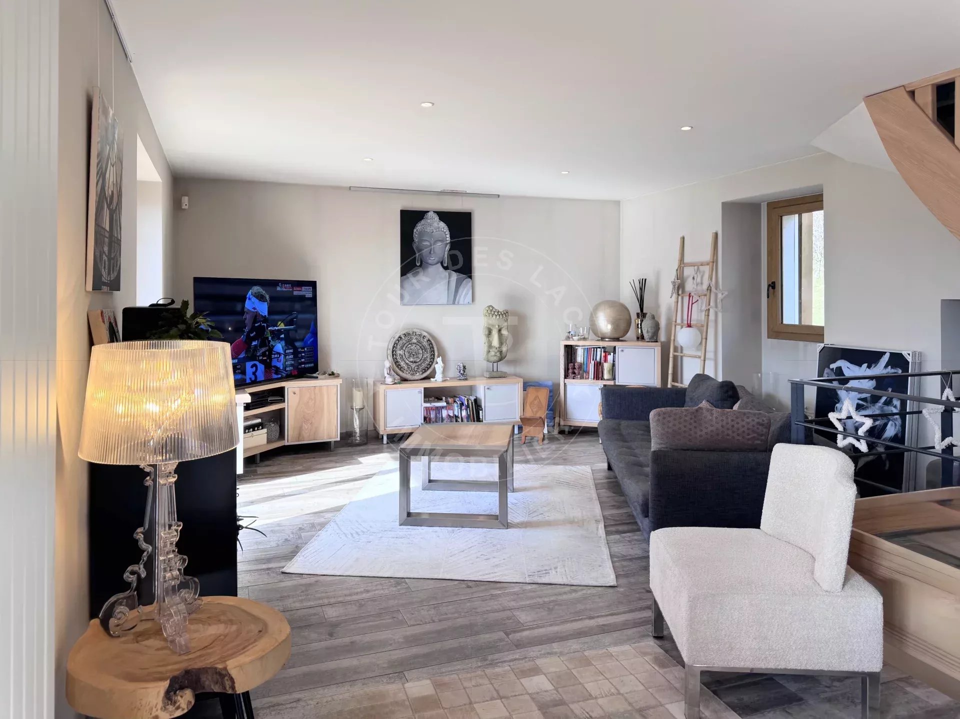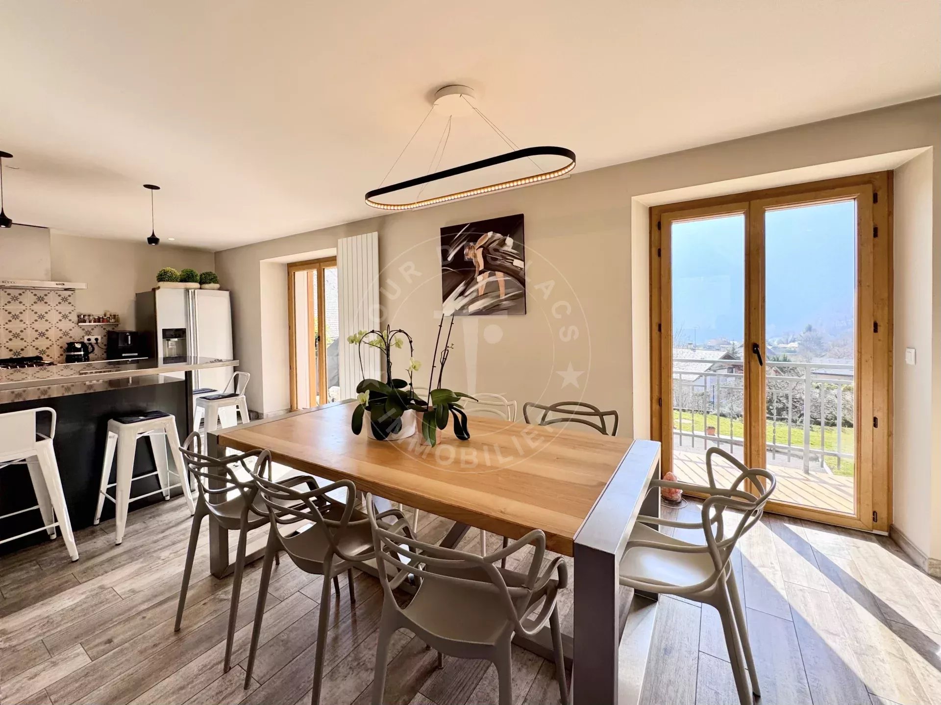 Cette magnifique maison de 180 m2 habitables entièrement rénovée en 2013 se situe à quelques pas du village. Son terrain de 696 m2 exposé plein sud offre une vue exceptionnelle sur la campagne et les montagnes.